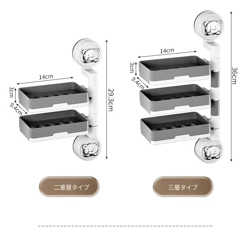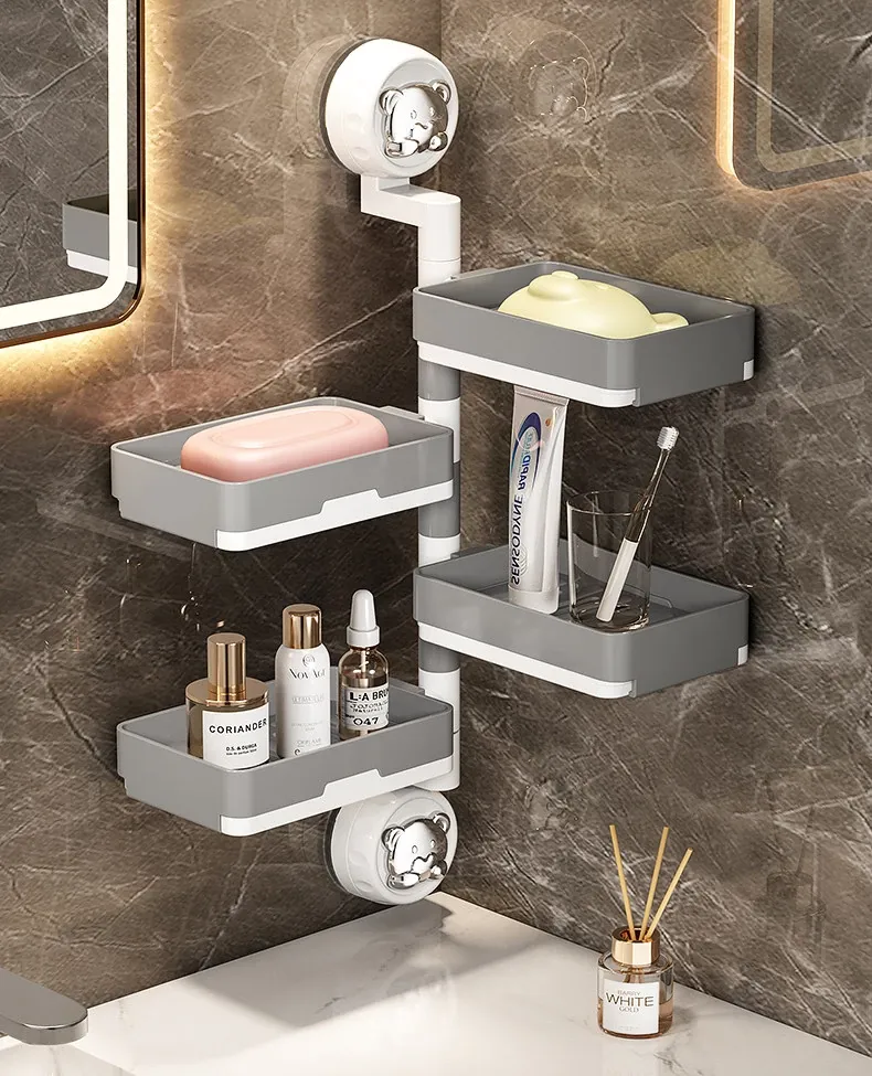 ガンメタル⭐吸盤三重石鹸箱【180°回転可能】