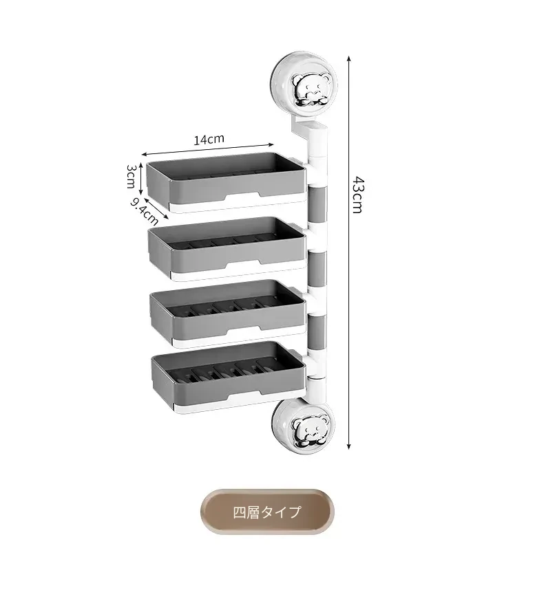 ガンメタル⭐吸盤四重石鹸箱【180°回転可能】