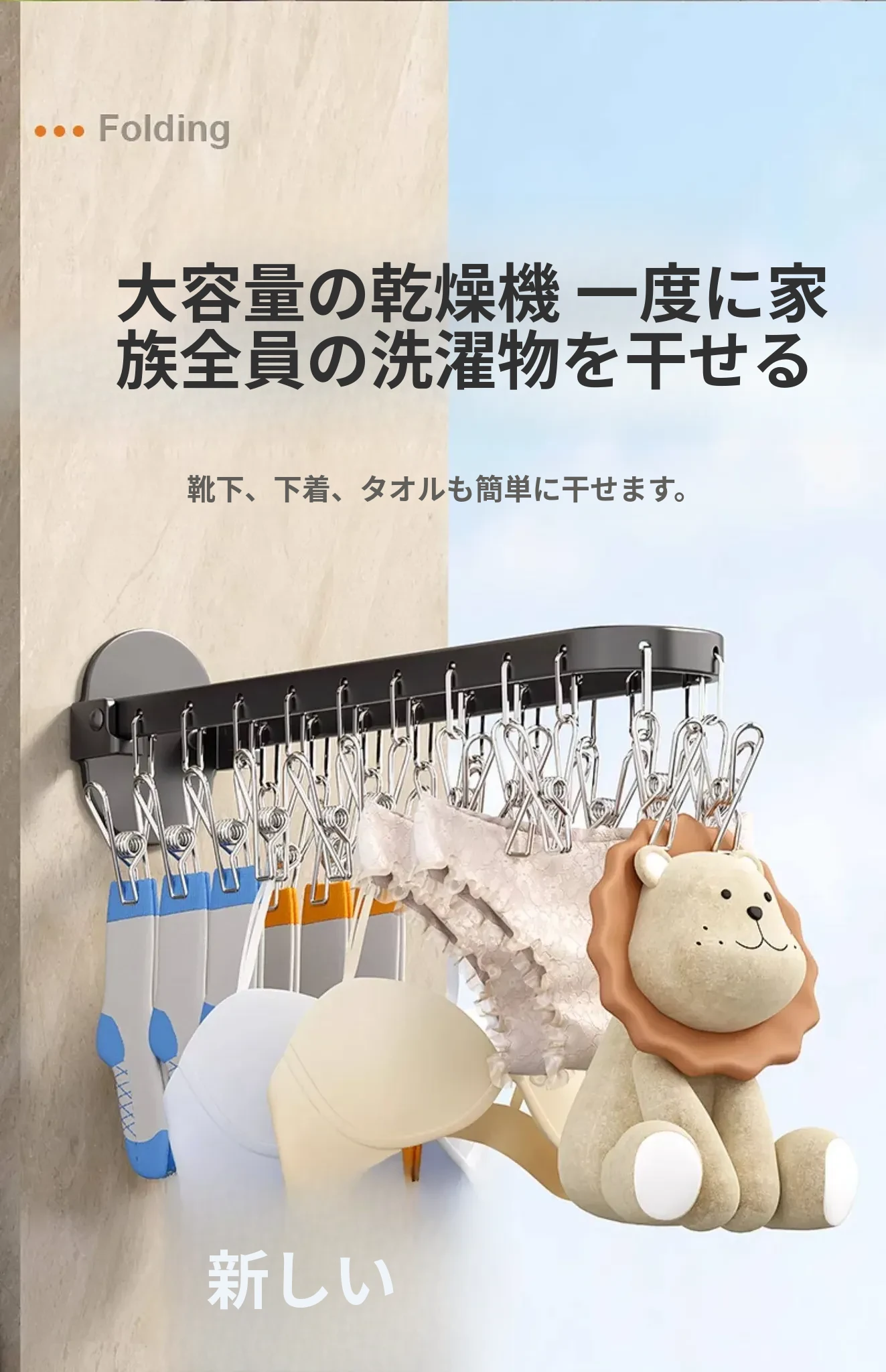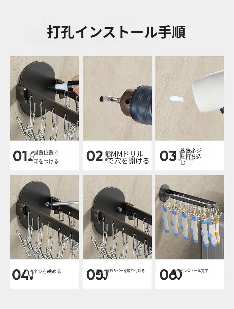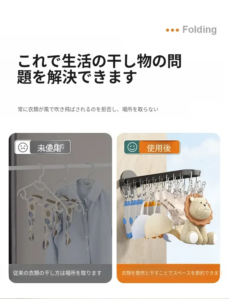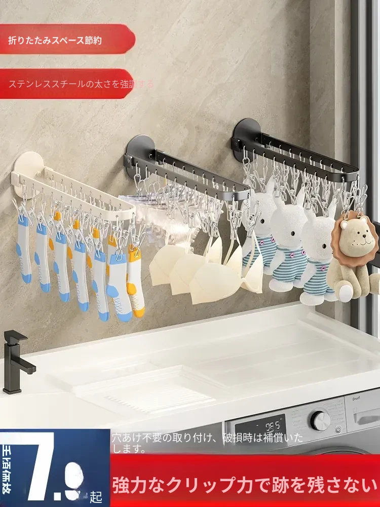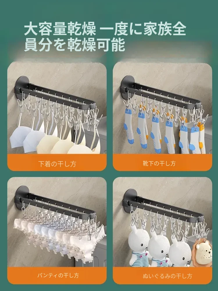 靴下乾燥ラック - 靴下を簡単に干せる便利なアイテム!多機能クリップ付き、穴を開けずに使える折りたたみ式ハンガー。家庭用バルコニーに最適な靴下クリップで、スペースを節約しながら快適にお洗濯!