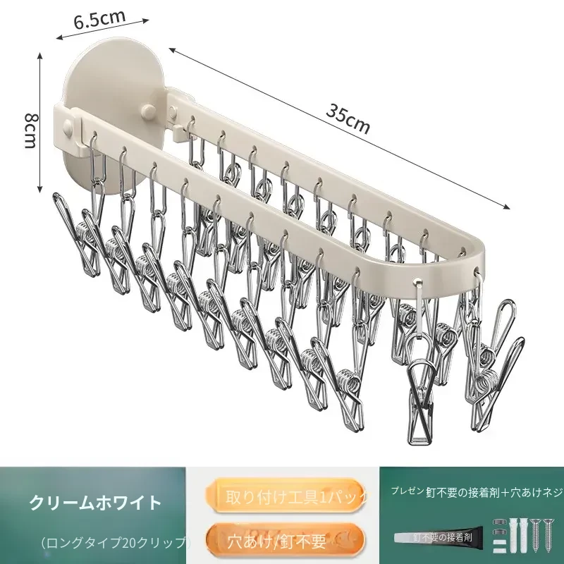 ミルクホワイト●長型折りたたみソックスクリップ●20クリップ【1個入り】