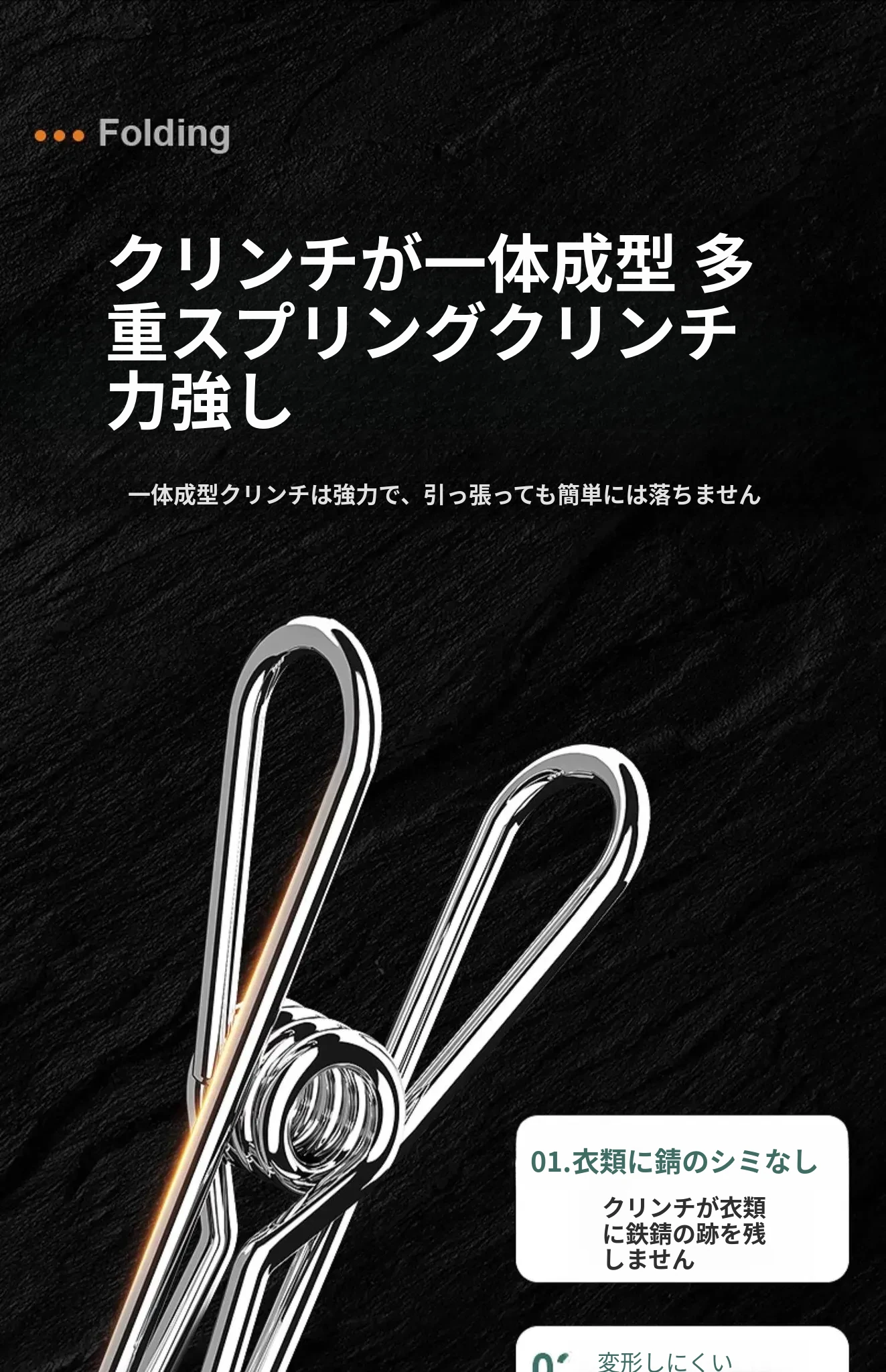 黒色●長型折りたたみソックスクリップ●20クリップ【1個入り】