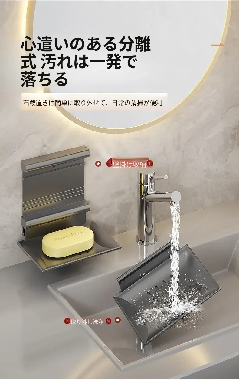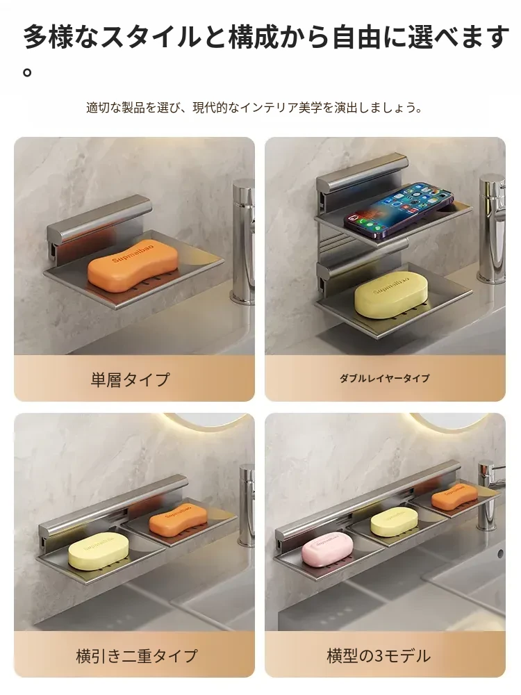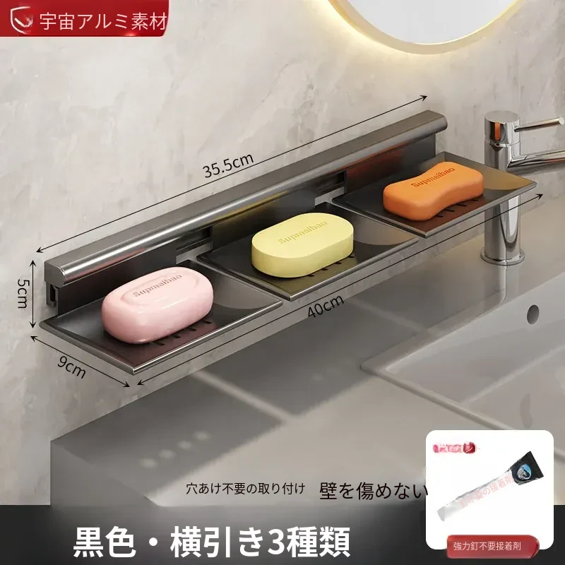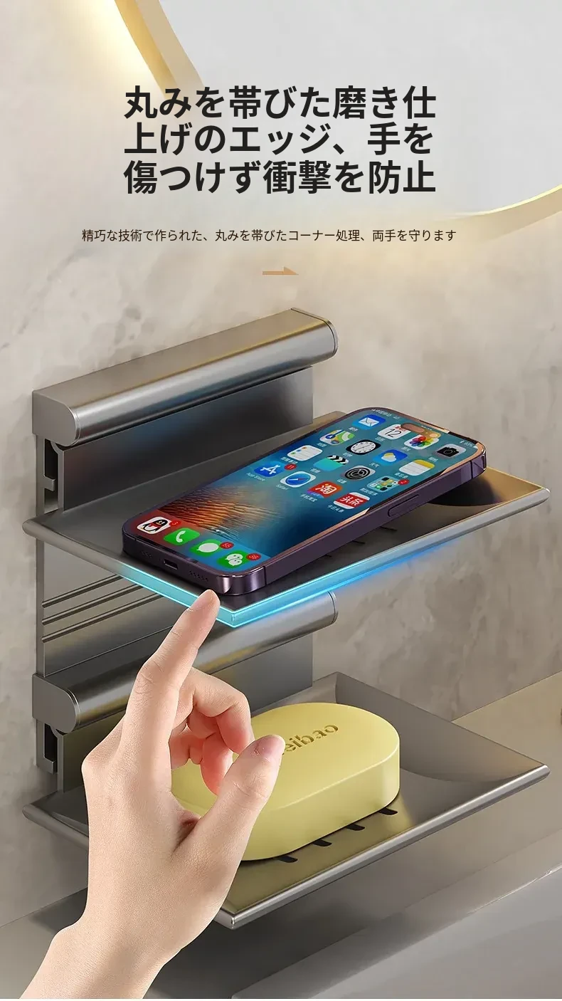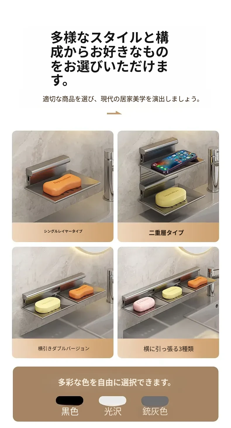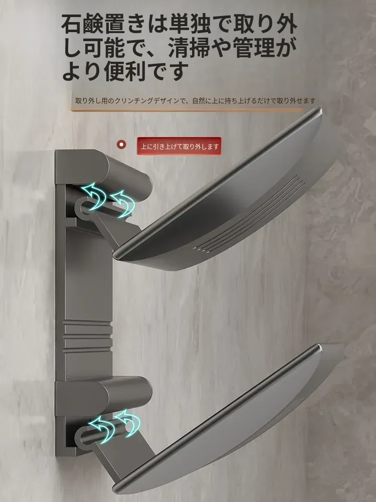 宇宙アルミ製 壁掛けソープホルダー - おしゃれで機能的なバスルーム収納!穴あけ不要、両層の水切り設計で、家庭用に最適な香り高い石鹸ボックス。スッキリした空間を演出します!