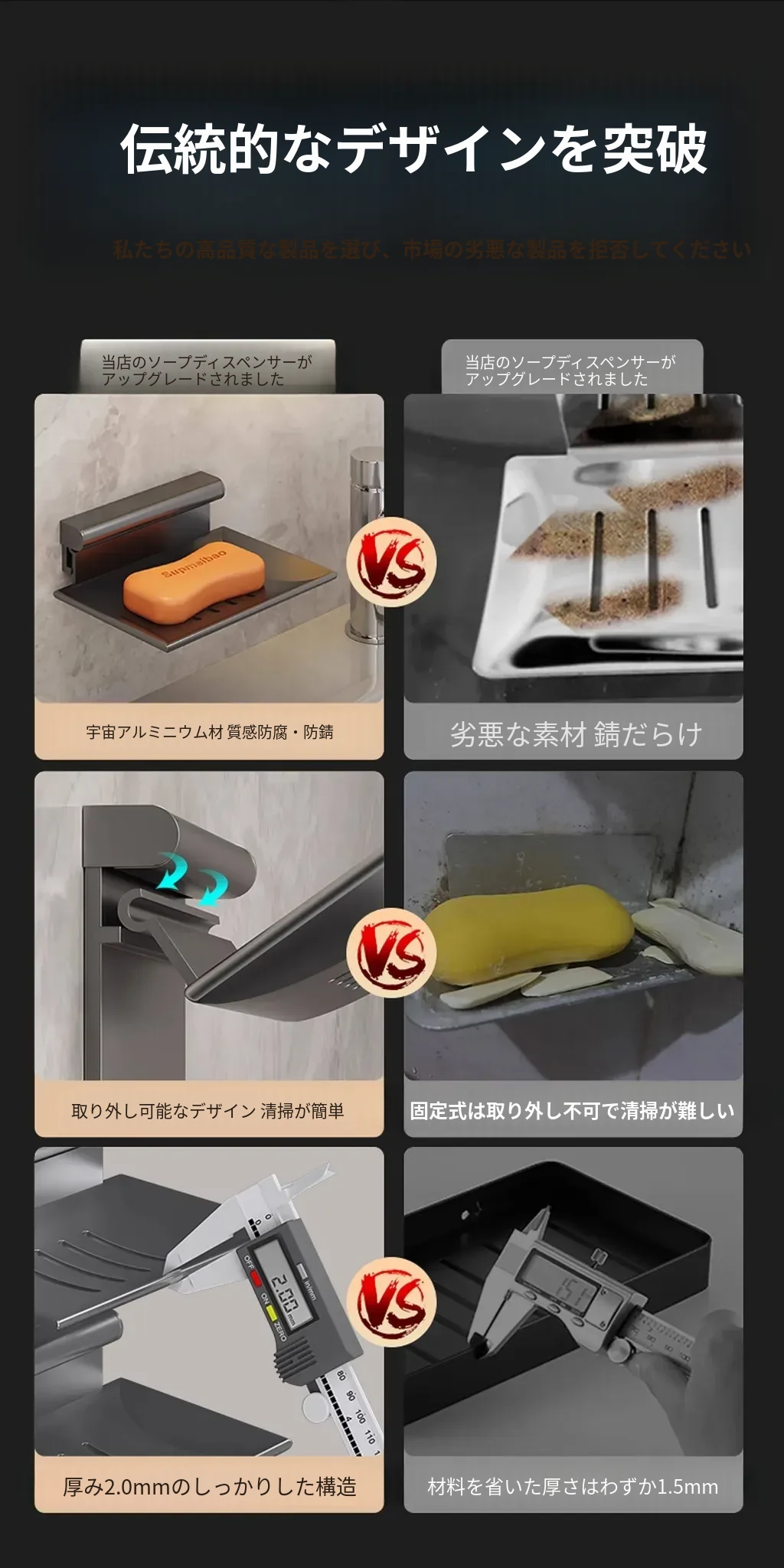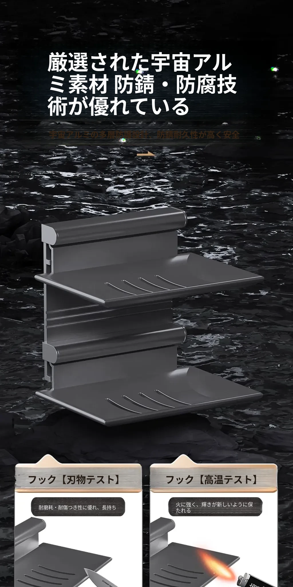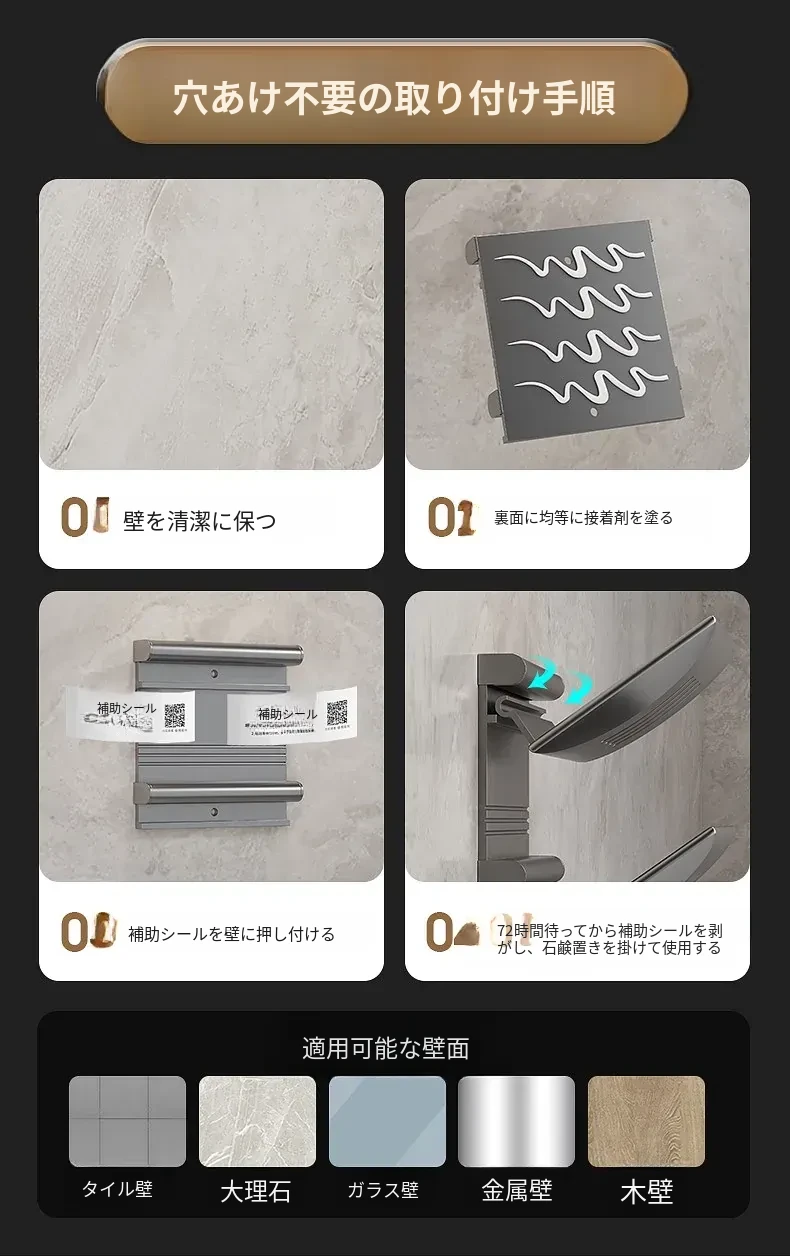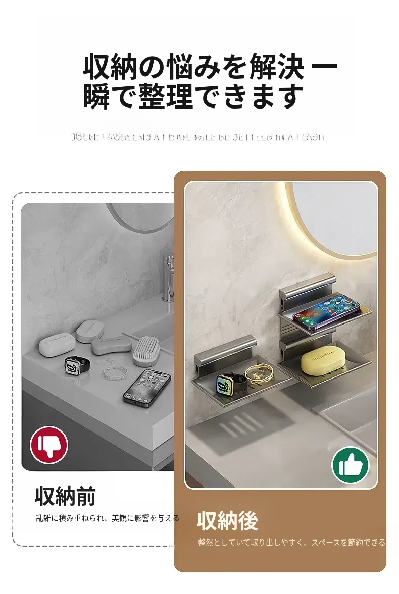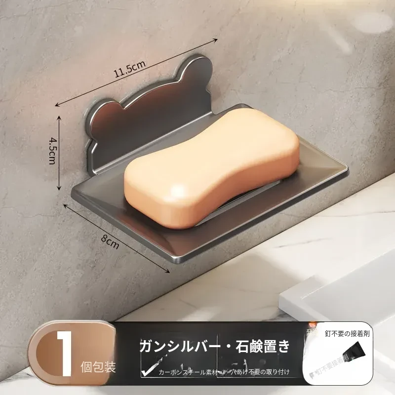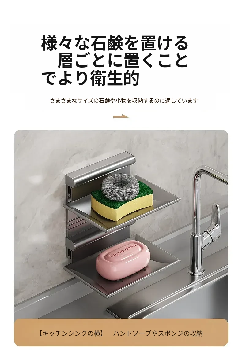 宇宙アルミ製 壁掛けソープホルダー - おしゃれで機能的なバスルーム収納!穴あけ不要、両層の水切り設計で、家庭用に最適な香り高い石鹸ボックス。スッキリした空間を演出します!