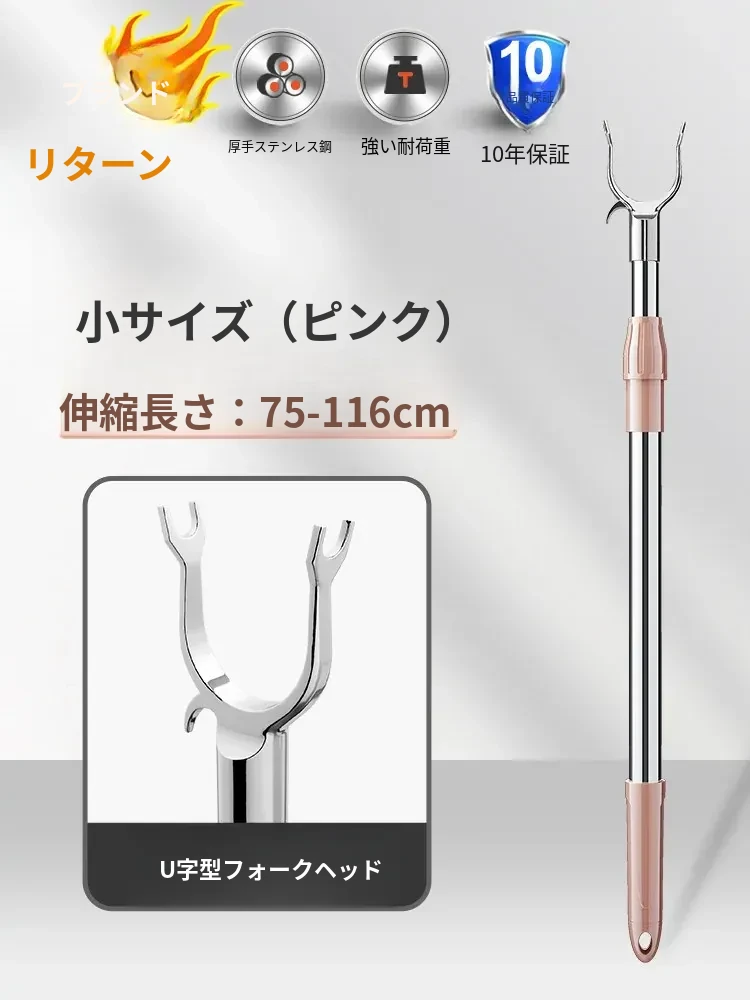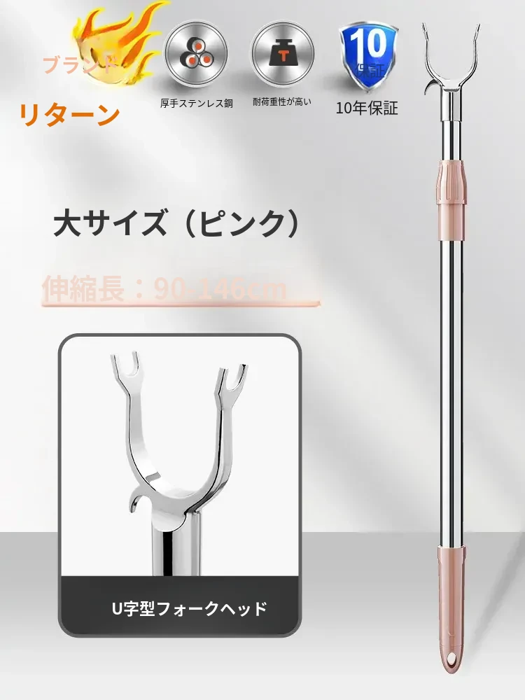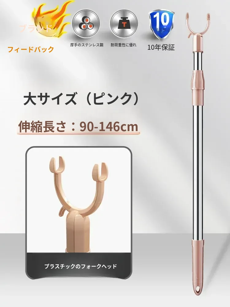人気商品❤ピンクロング-亜鉛合金フォーク【伸縮90-146cm】