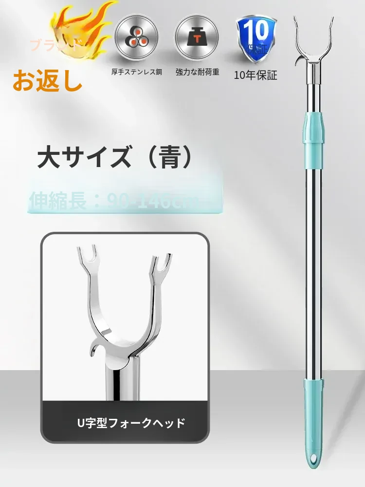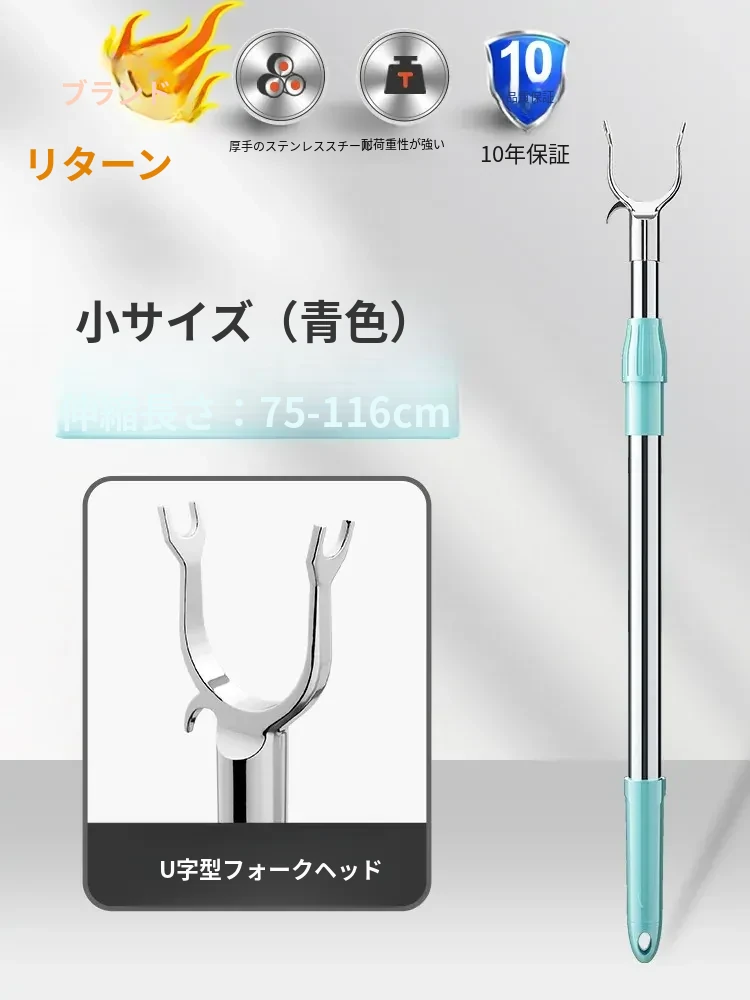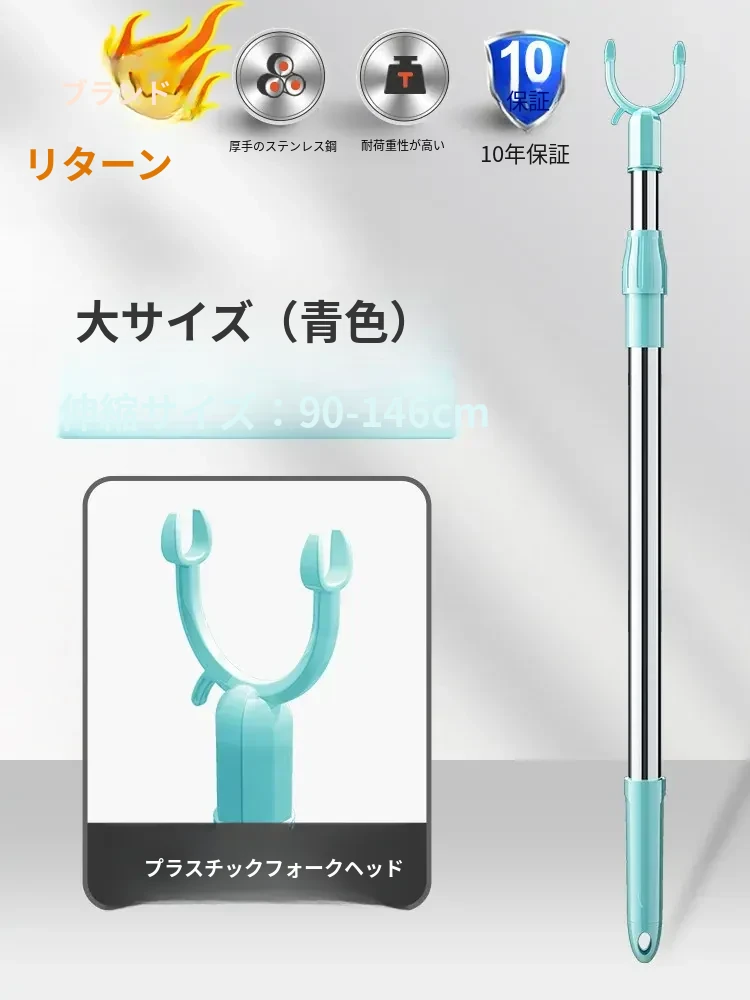 人気商品❤ブルーロング-亜鉛合金フォーク【伸縮90-146cm】