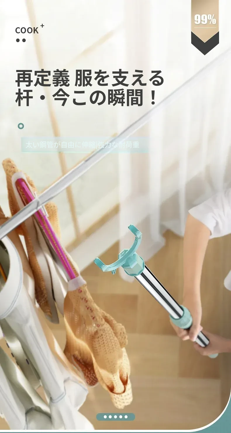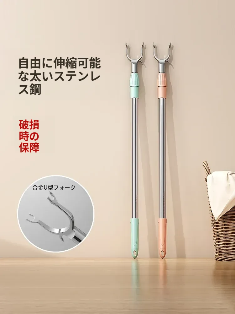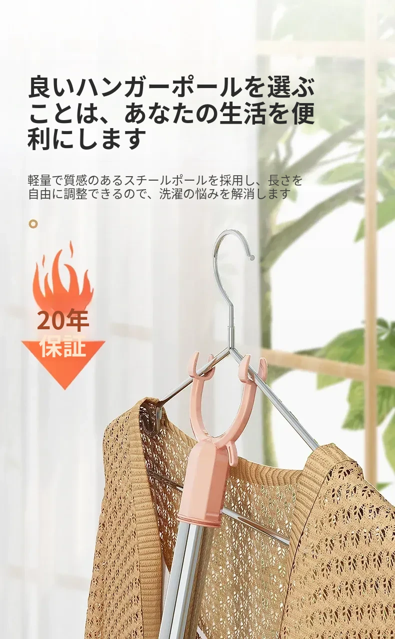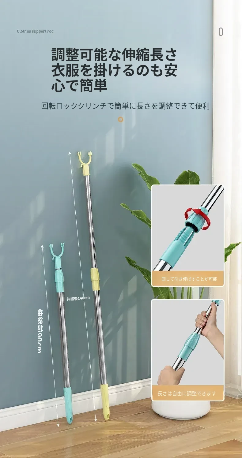 ステンレス製伸縮式衣類干しポール - 耐久性抜群のシングルポール、洗濯物をしっかり支える!衣類を快適に乾かし、スペースを有効活用。おしゃれで実用的なアイテムです!