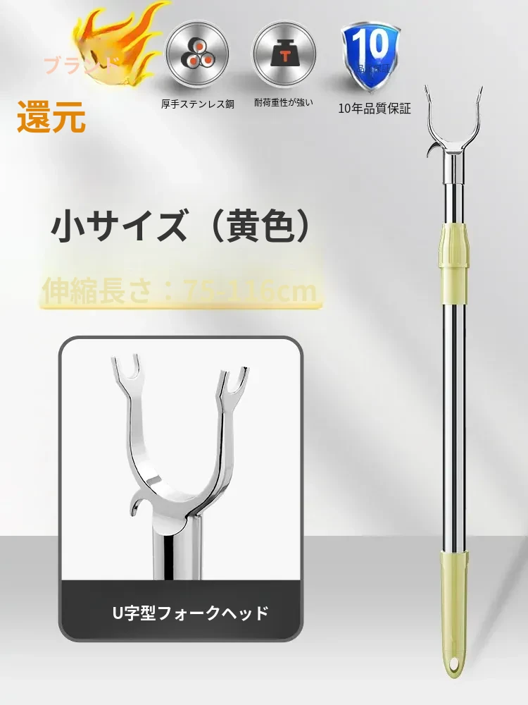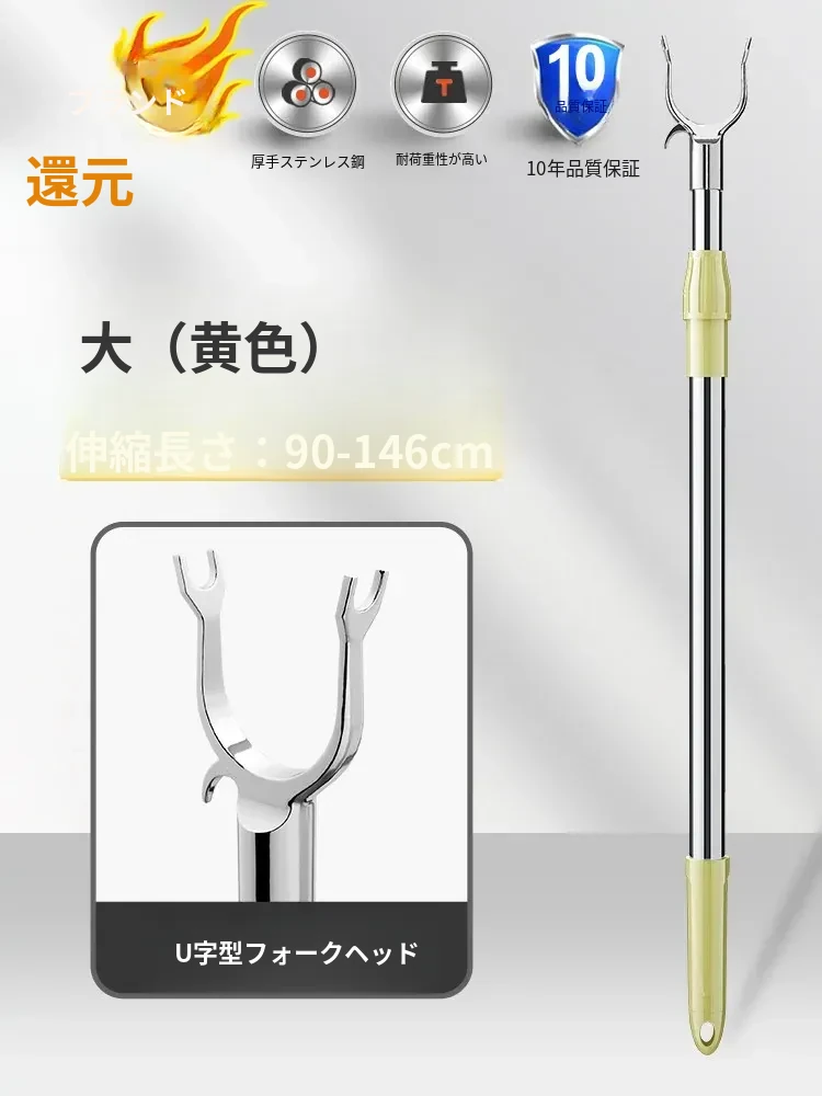 人気商品❤黄ロング-亜鉛合金フォーク【伸縮90-146cm】