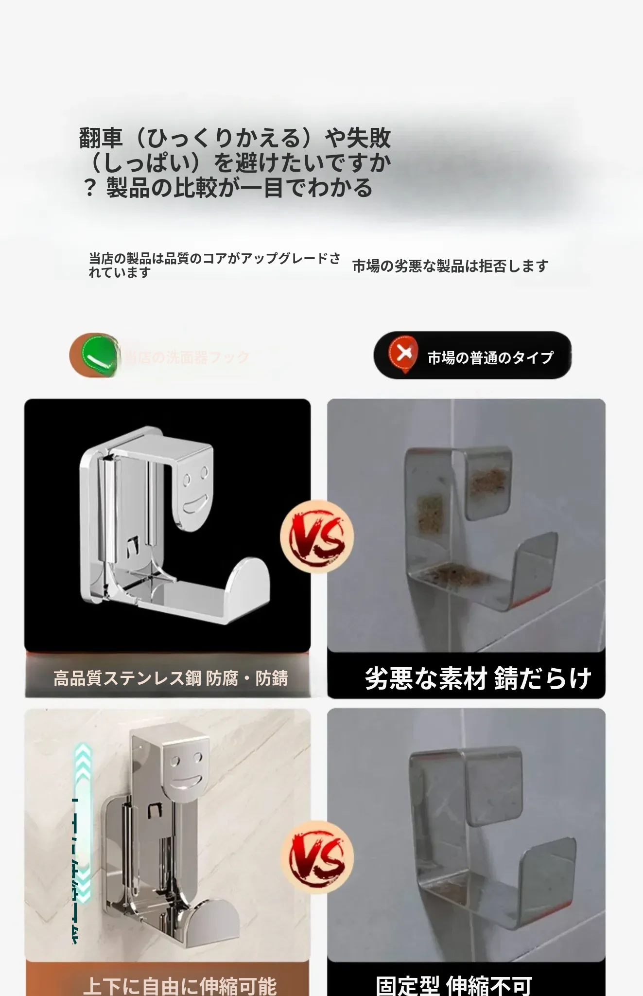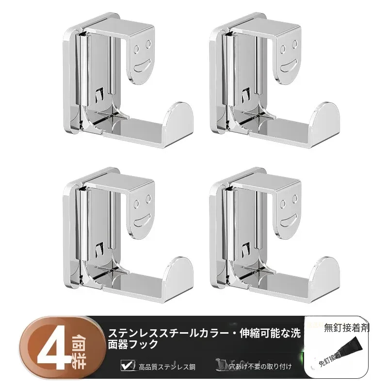 【シャイニーシルバー】伸縮可能な洗面器フック - 4個入り