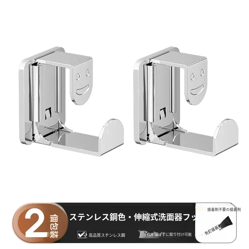 【シャイニーシルバー】伸縮可能な洗面器フック - 2個入り