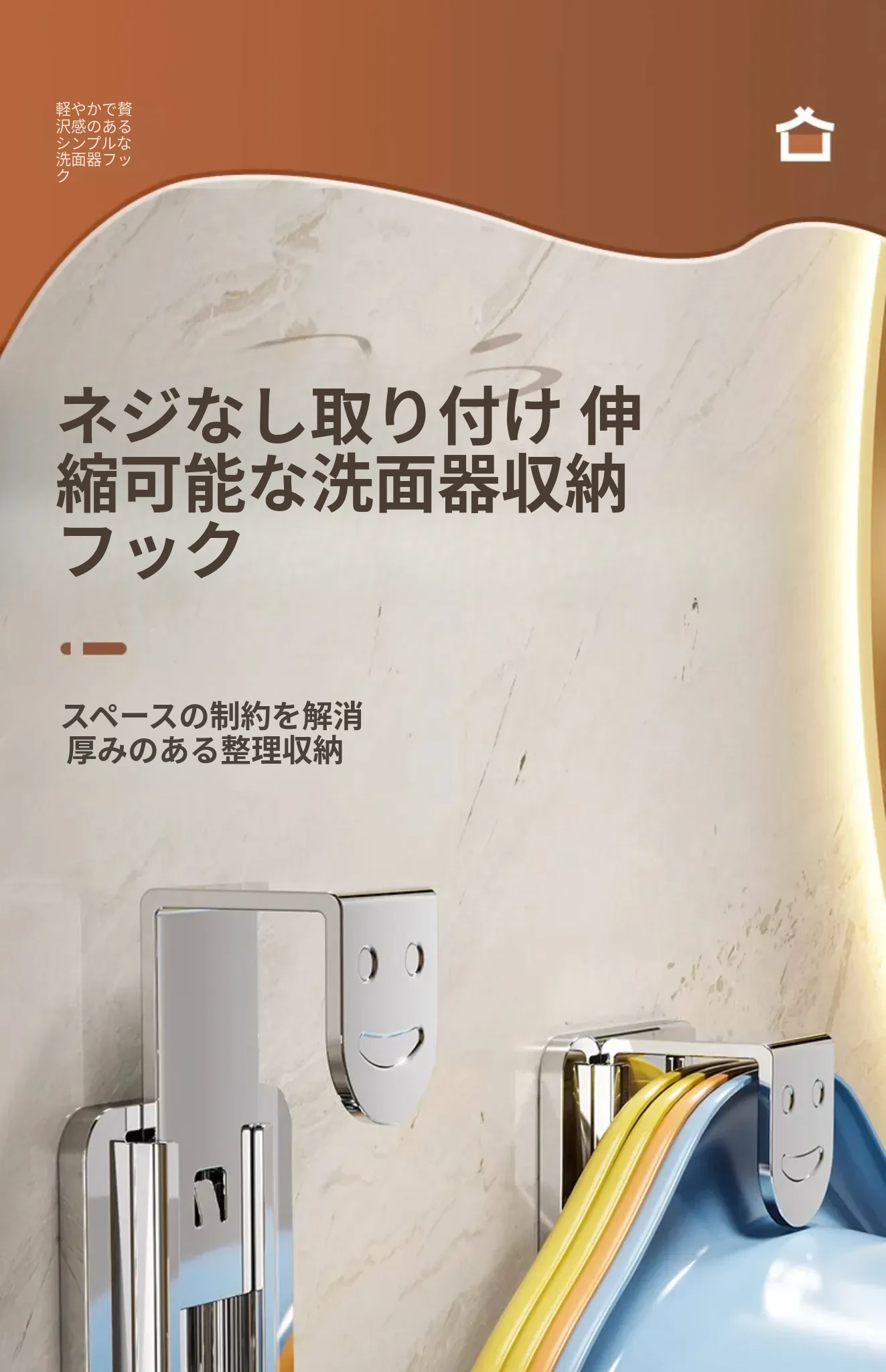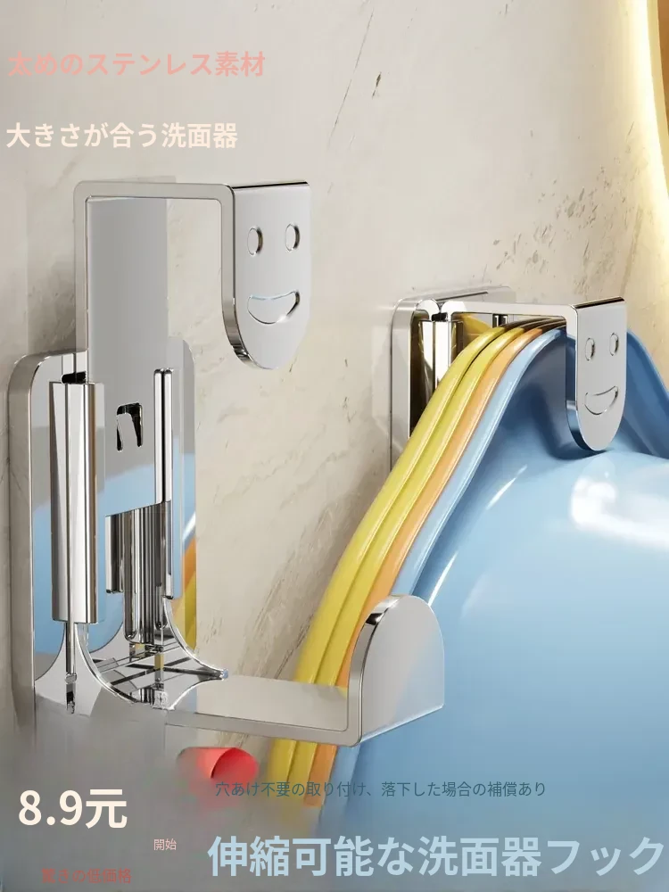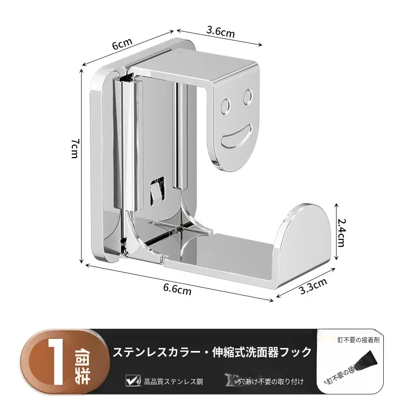 【シャイニーシルバー】伸縮可能な洗面器フック - 1個入り