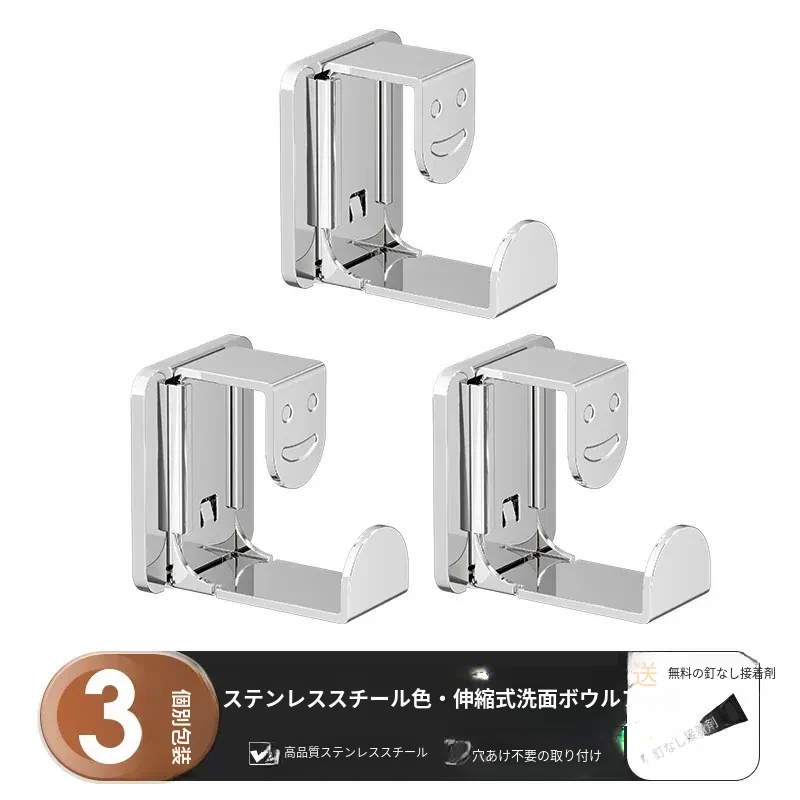 【シャイニーシルバー】伸縮可能な洗面器フック - 3個入り
