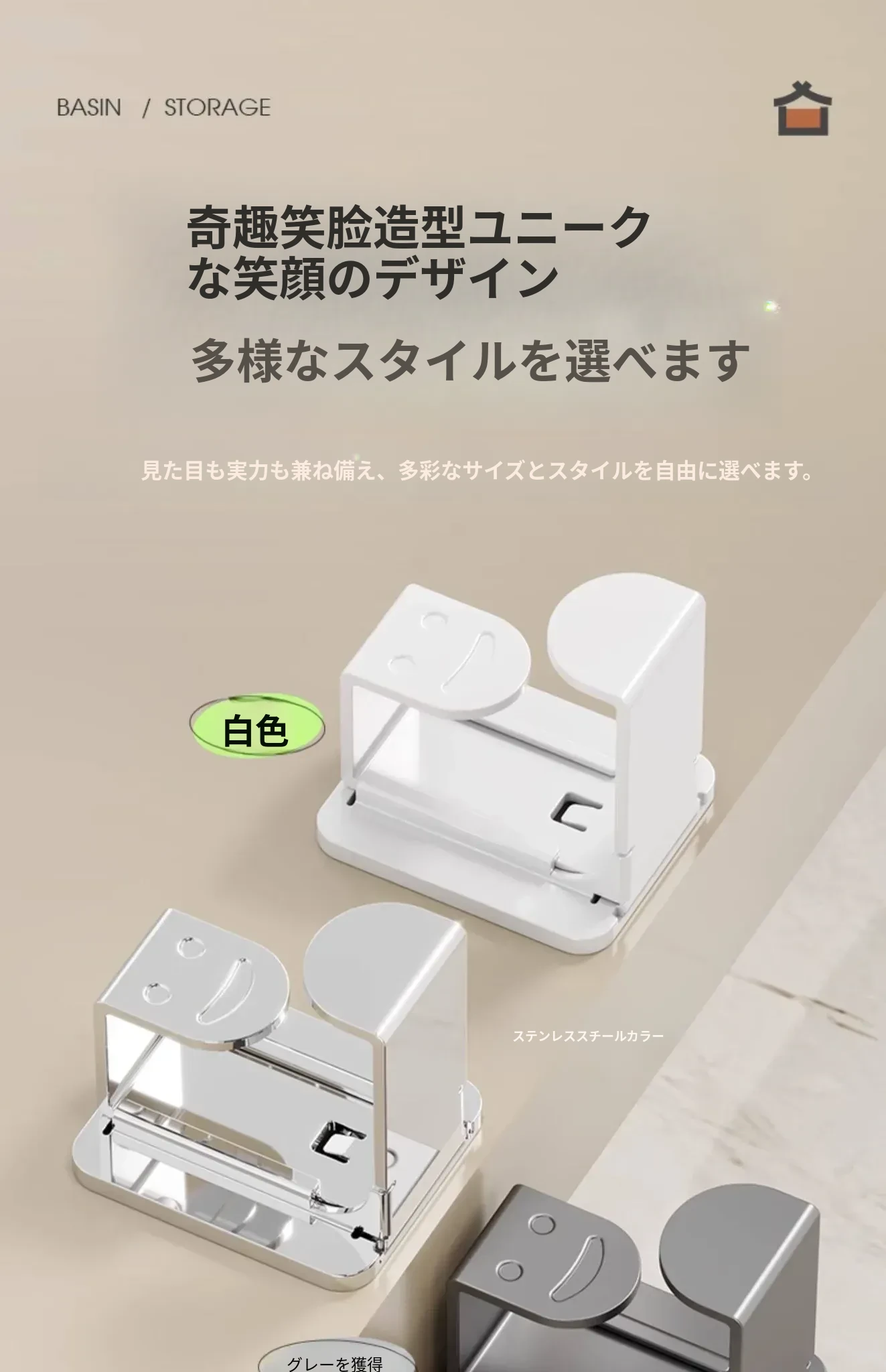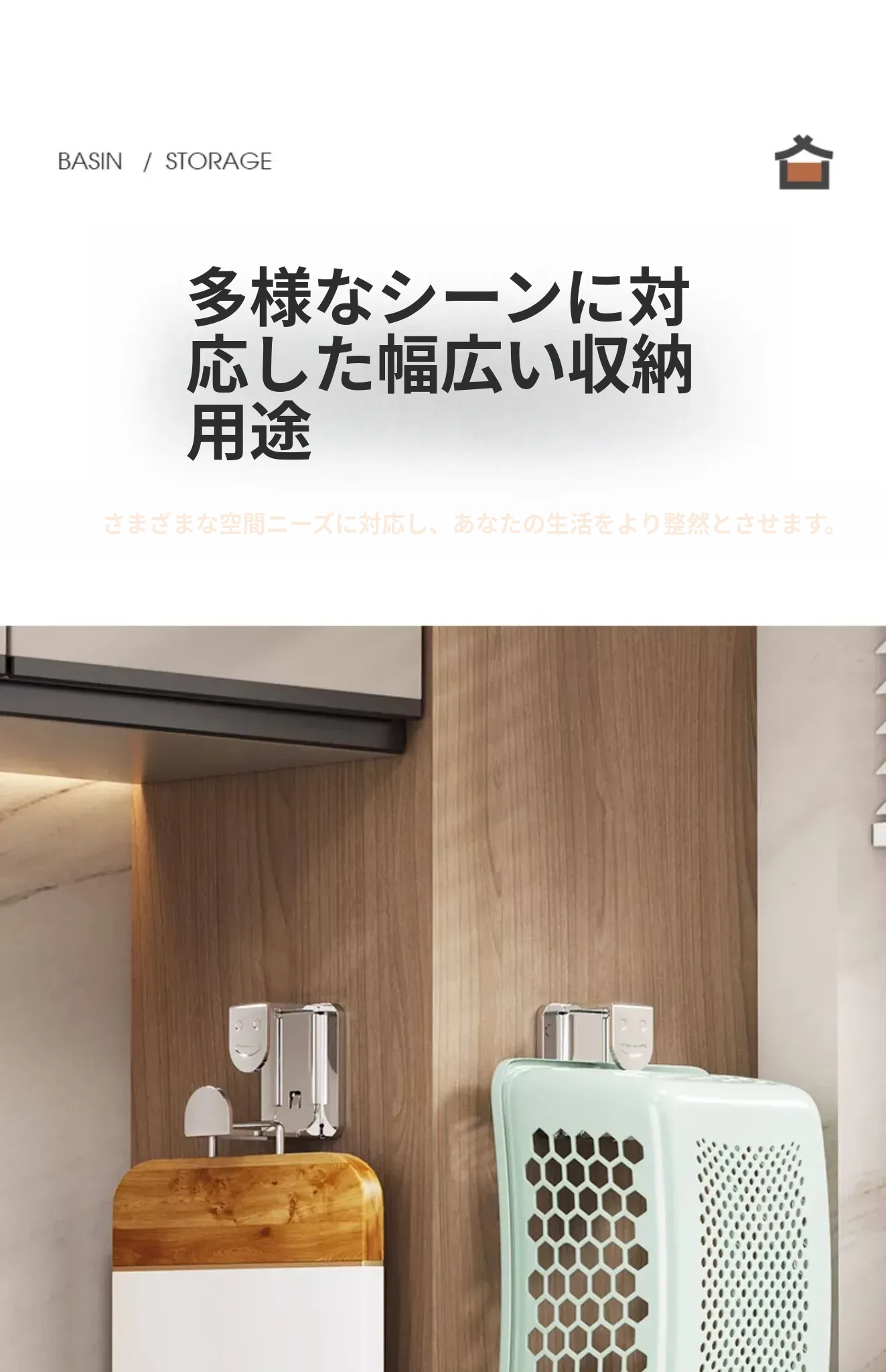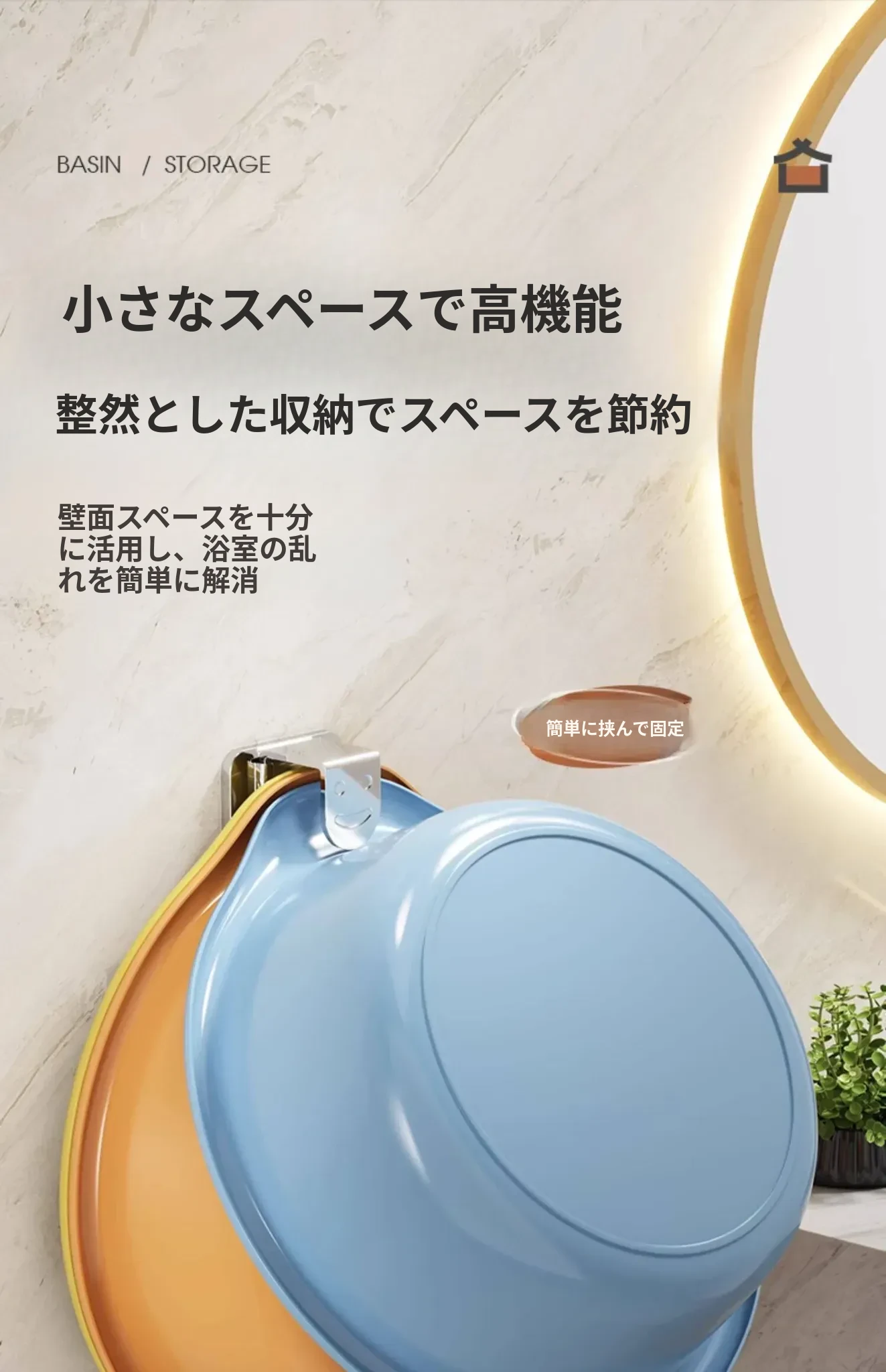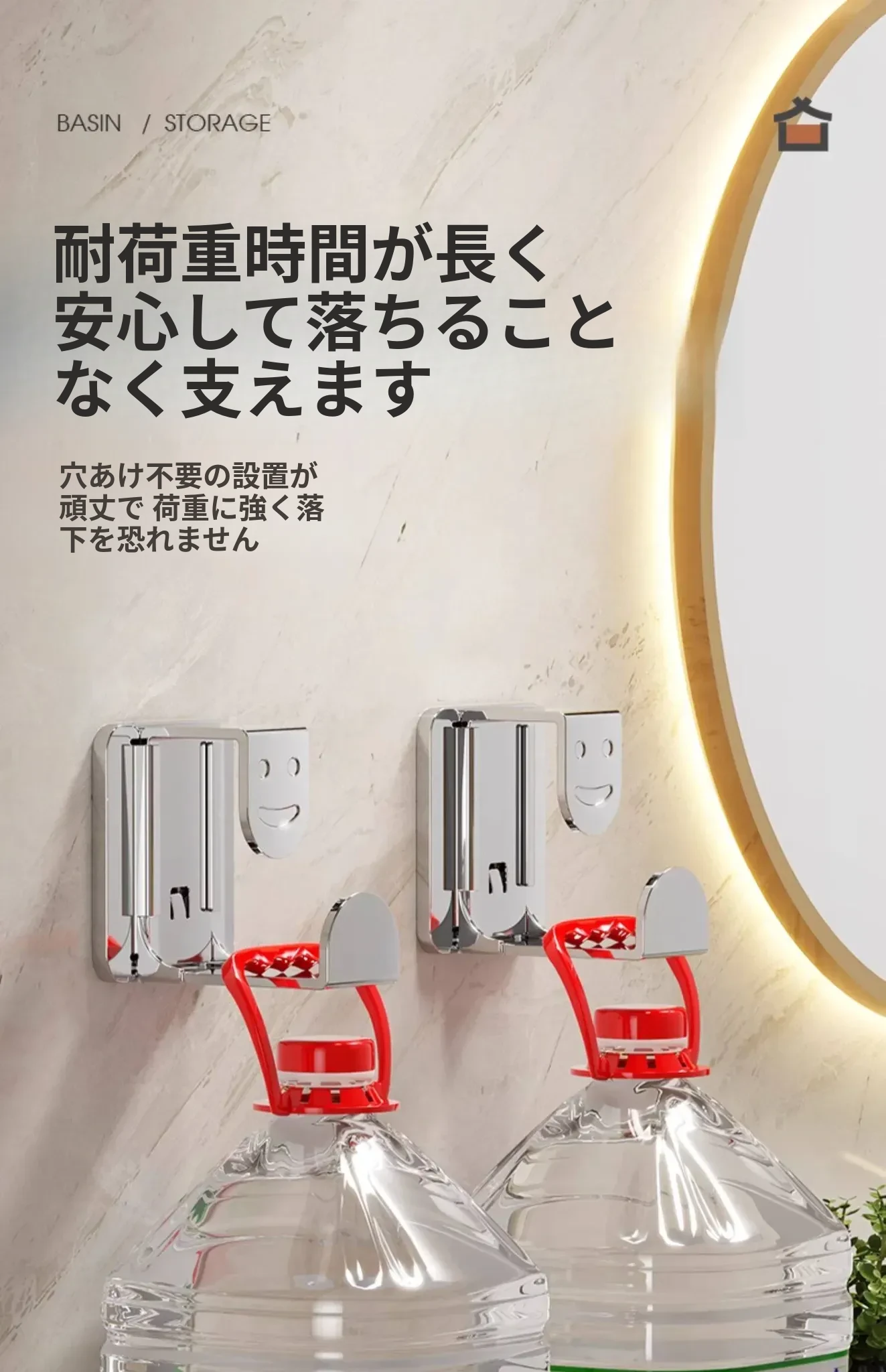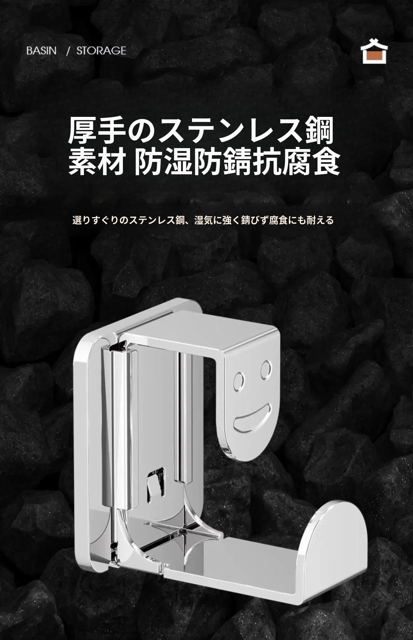 ステンレス製洗面器フック付きバスルーム収納ラック - 穴あけ不要!洗面器やバスボウルをスタイリッシュに収納できる便利なアイテムです。清潔感溢れるデザインで、狭いスペースも有効活用!