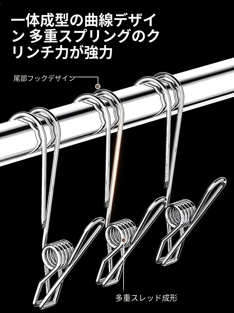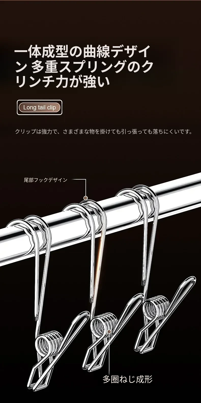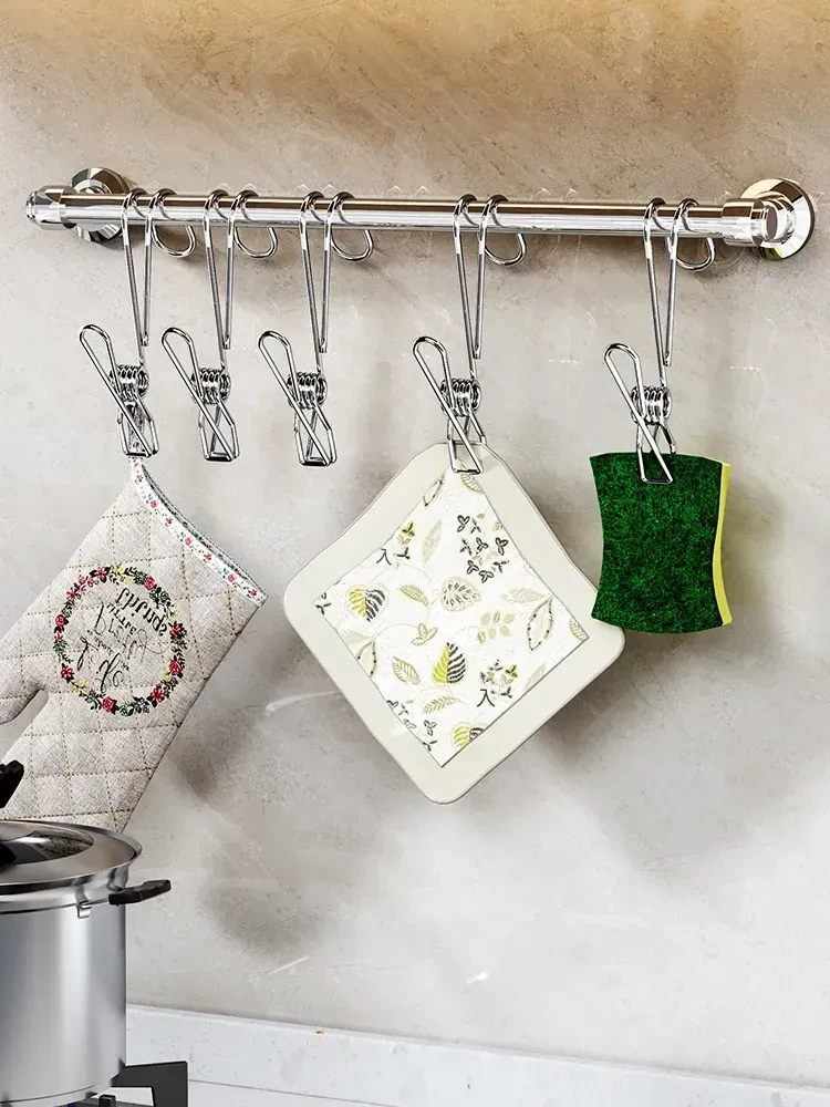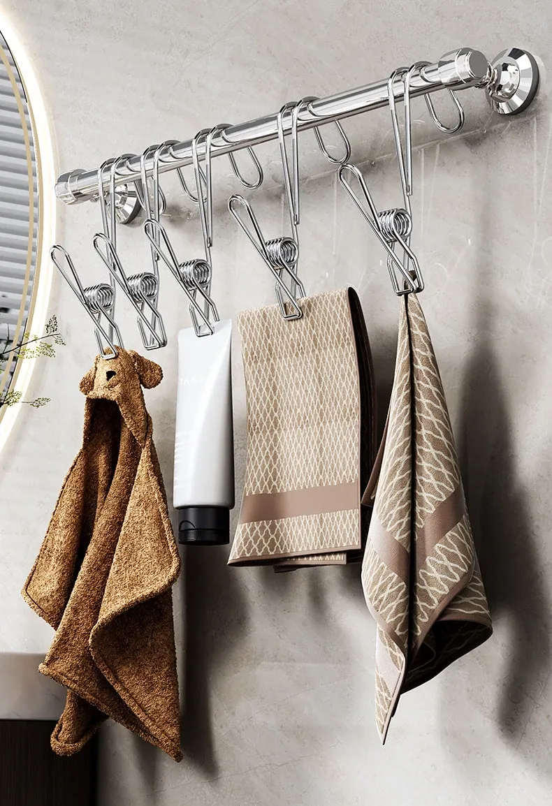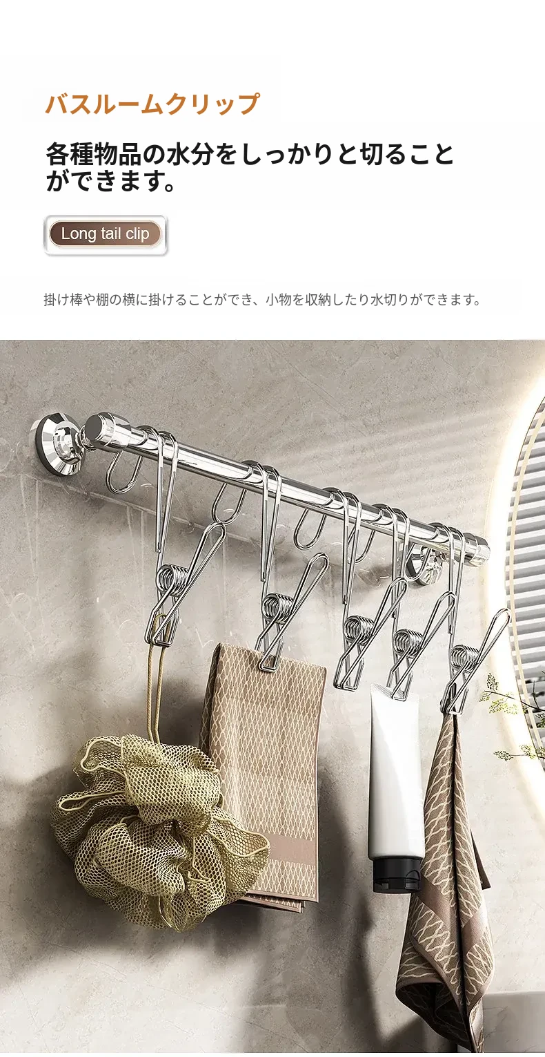 ステンレス製クリップフック - おしゃれで実用的!バスルームやキッチンで大活躍の多機能クリップ、衣類やタオルをしっかりホールド。痕跡を残さず、すっきり収納を実現!