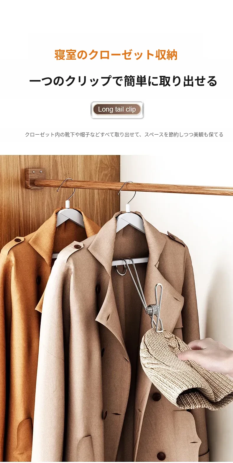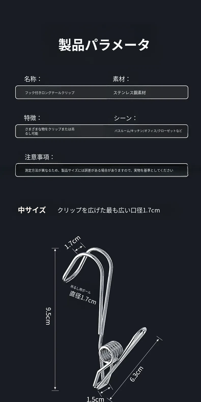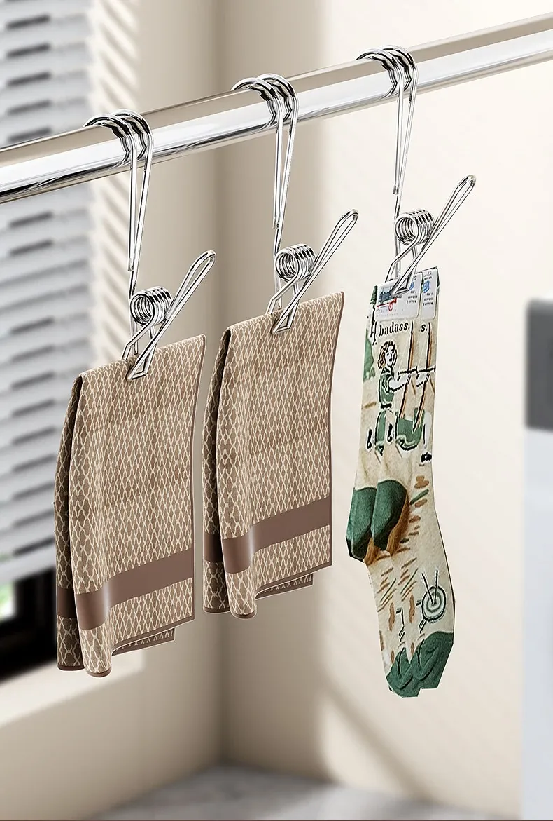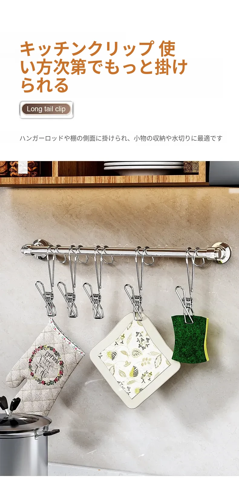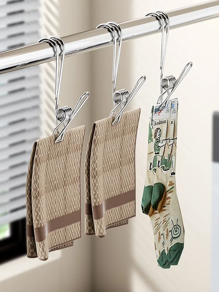 ステンレス製クリップフック - おしゃれで実用的!バスルームやキッチンで大活躍の多機能クリップ、衣類やタオルをしっかりホールド。痕跡を残さず、すっきり収納を実現!