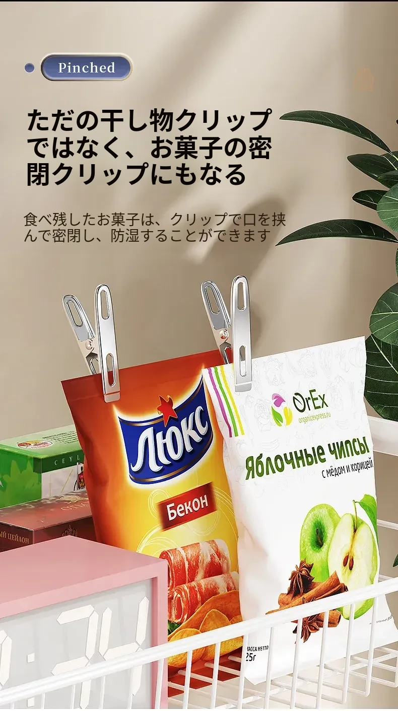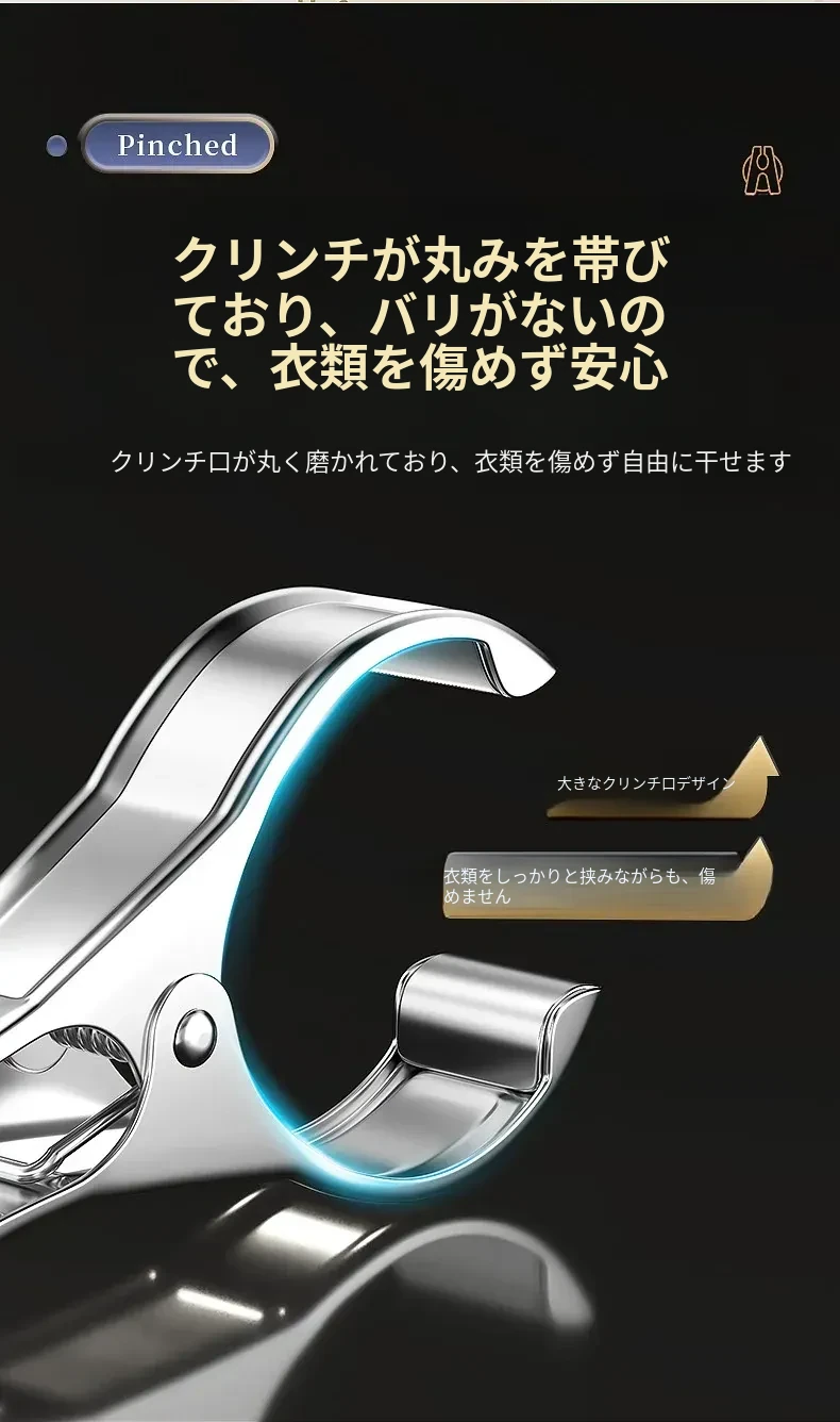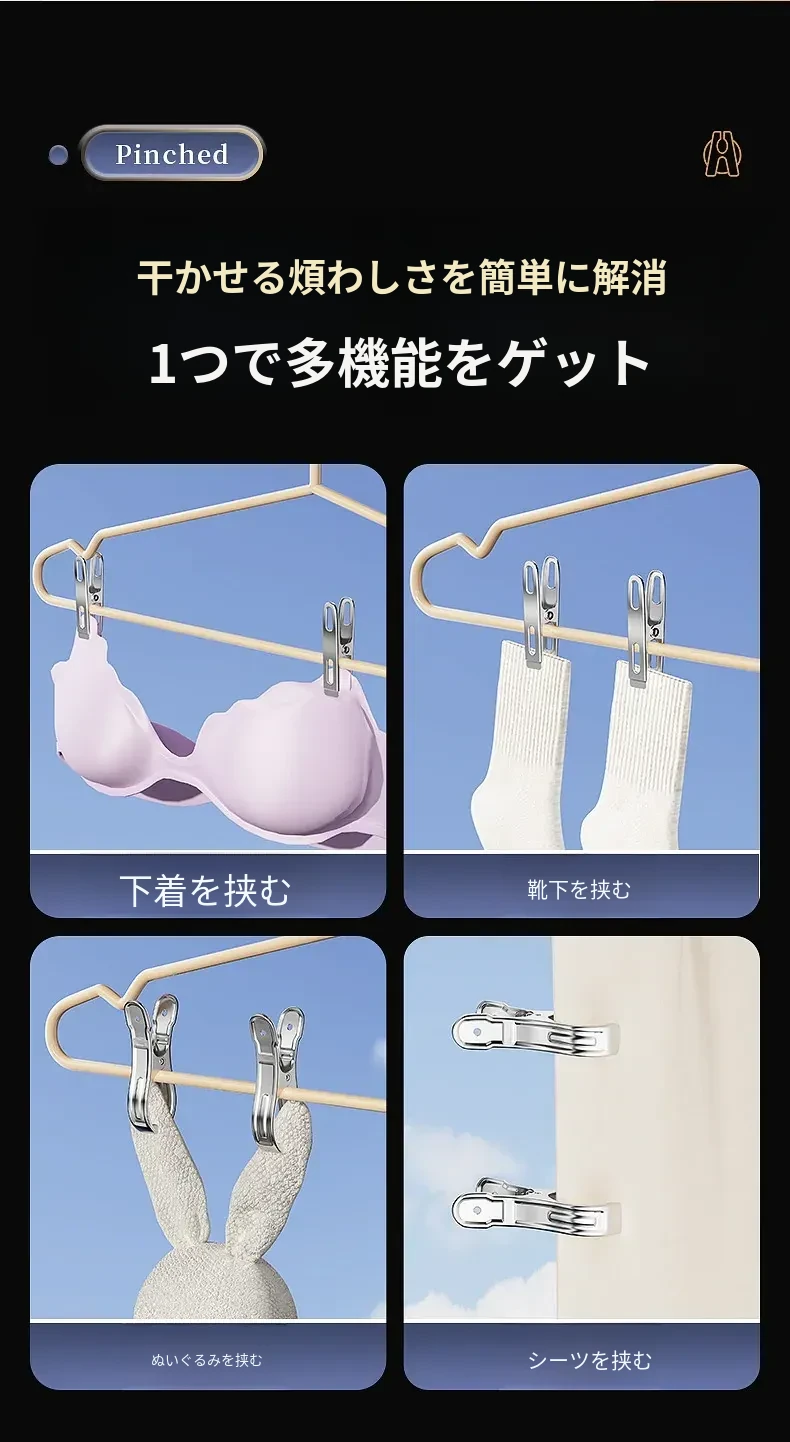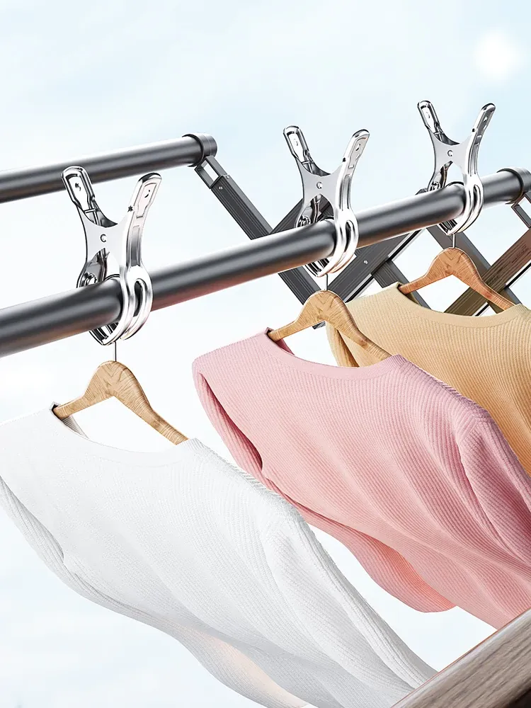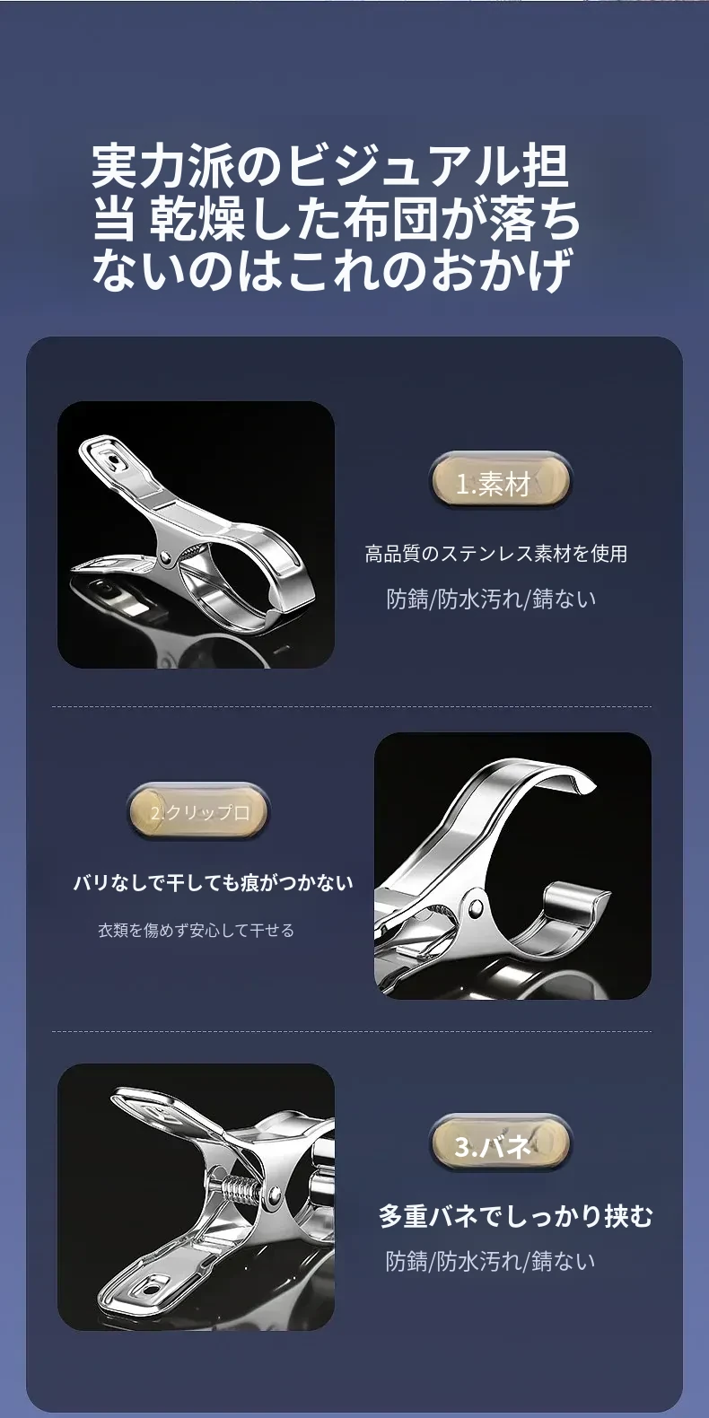 風に強いステンレス製大クリップ!洗濯物や布団をしっかり固定する万能クリップ。靴下や衣類も安心して干せる、家庭必備の便利グッズ!