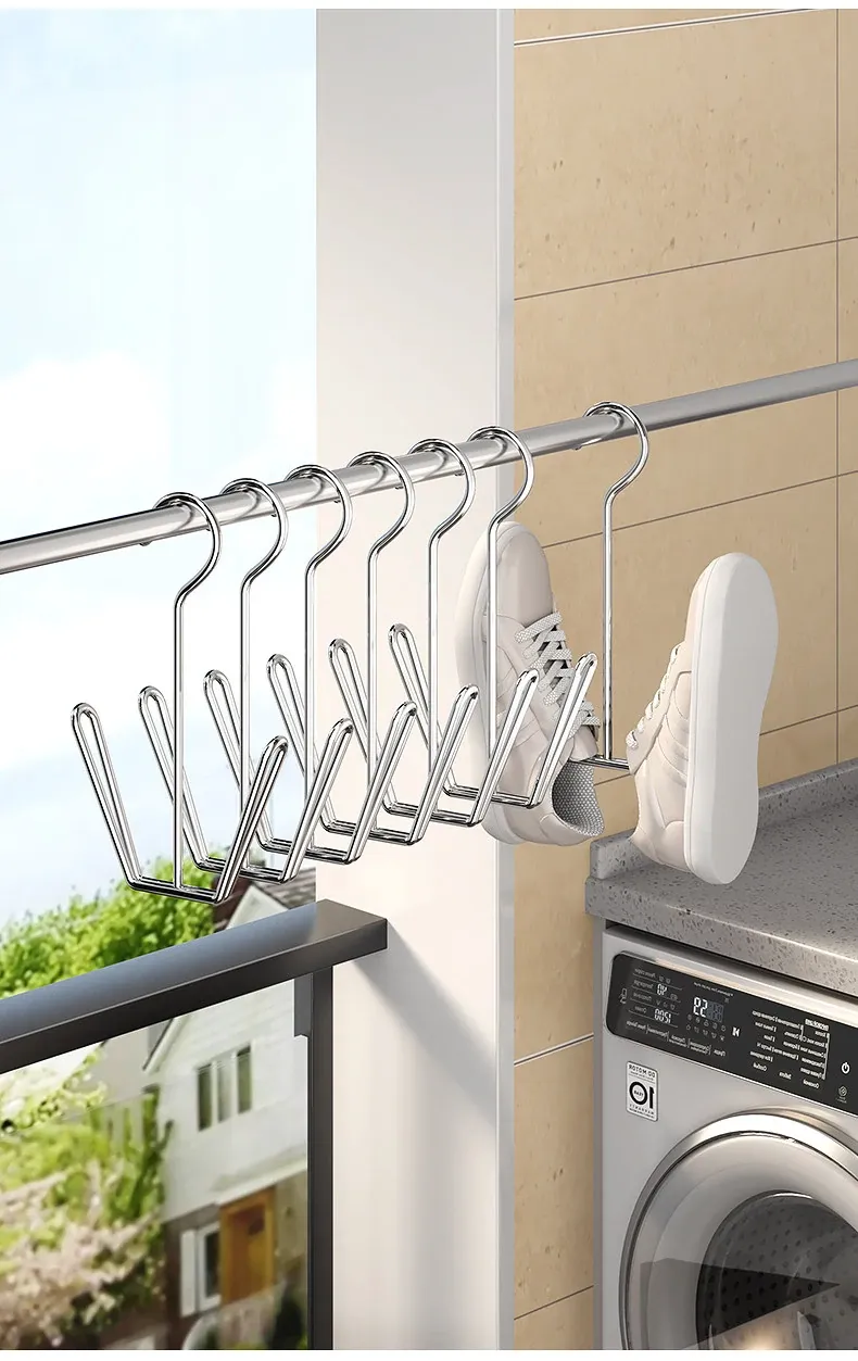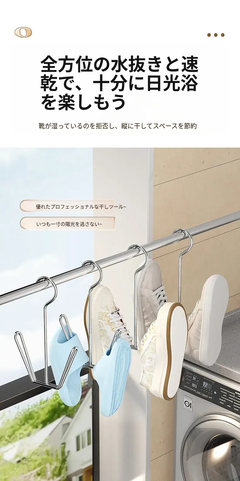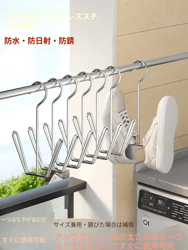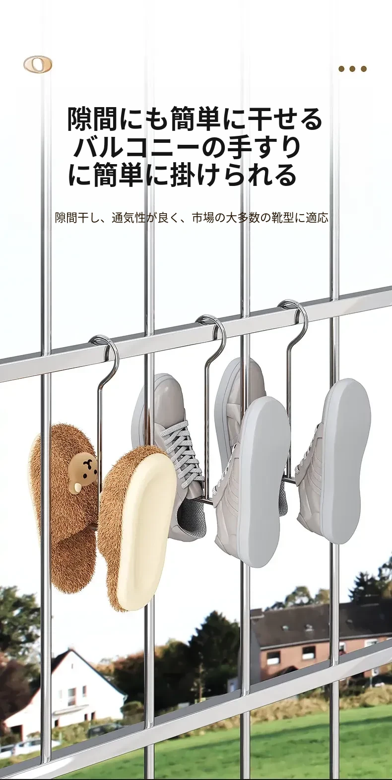 ステンレス製靴干しラック|ベランダ・屋外用|風に強い靴掛けフック付き|多機能シューズドライヤー|あなたの靴を快適に乾かす神器!