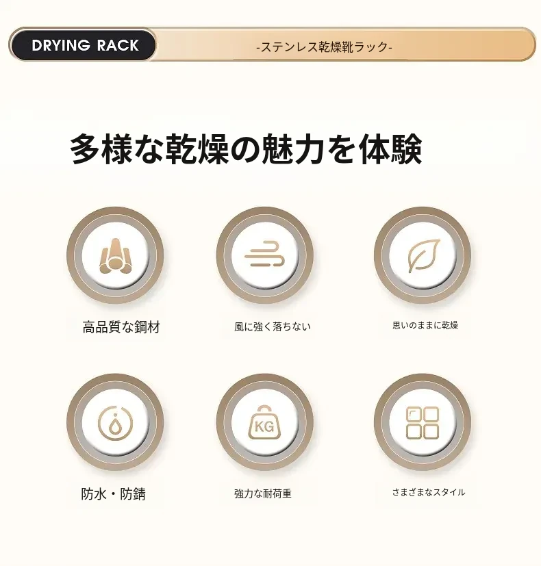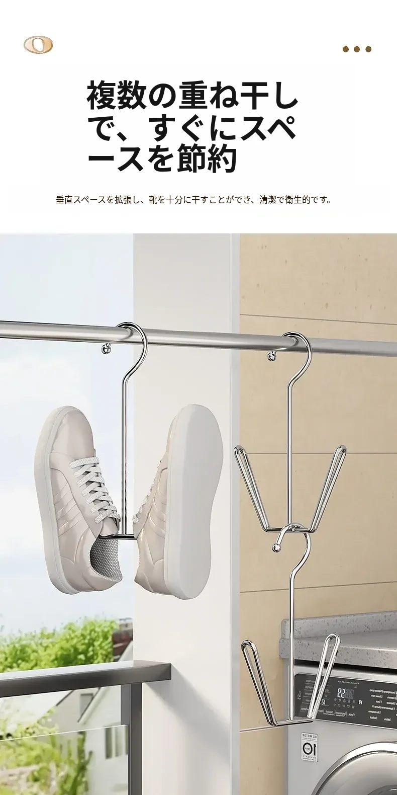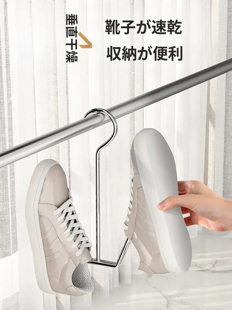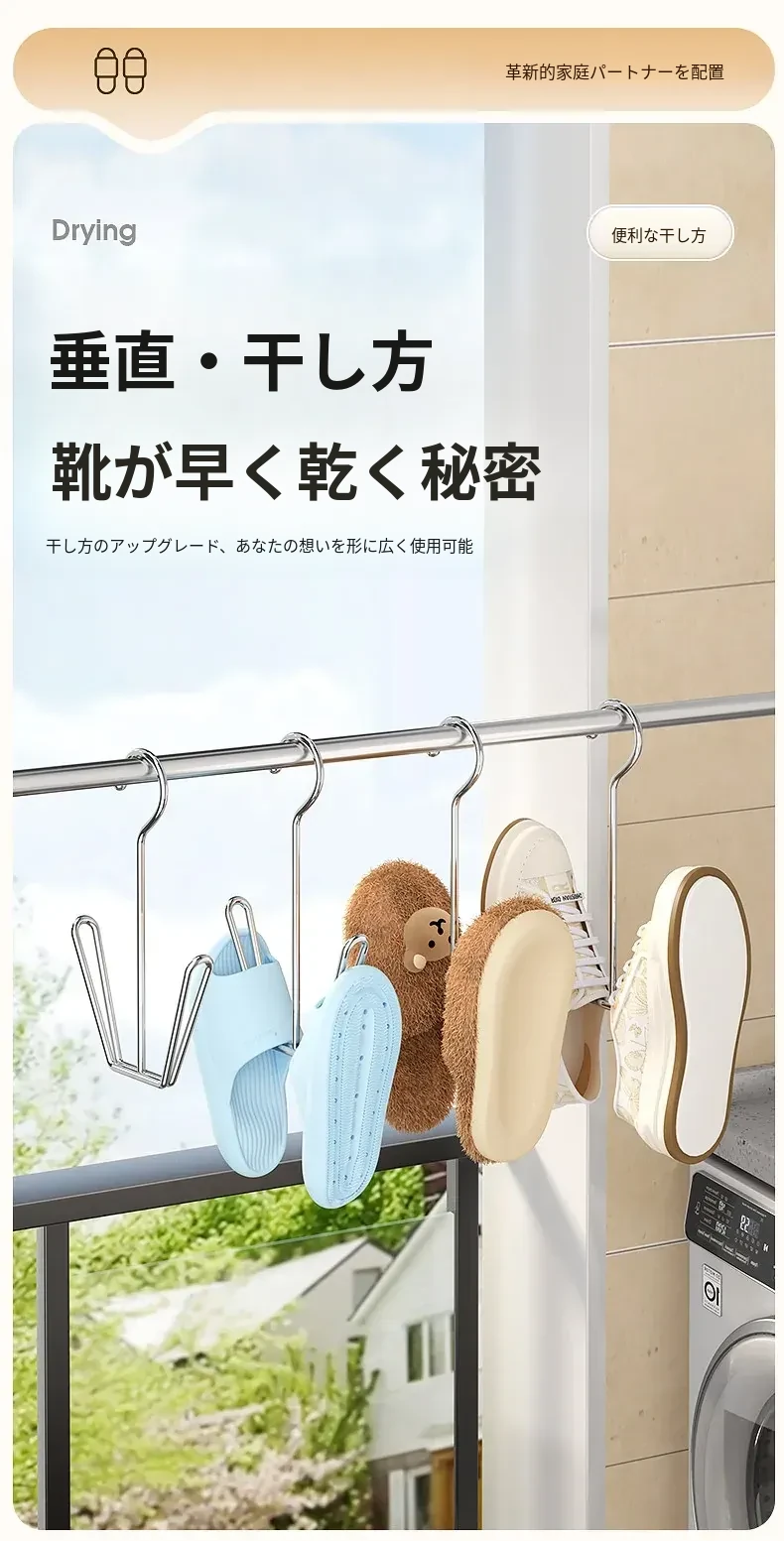 ステンレス製靴干しラック|ベランダ・屋外用|風に強い靴掛けフック付き|多機能シューズドライヤー|あなたの靴を快適に乾かす神器!