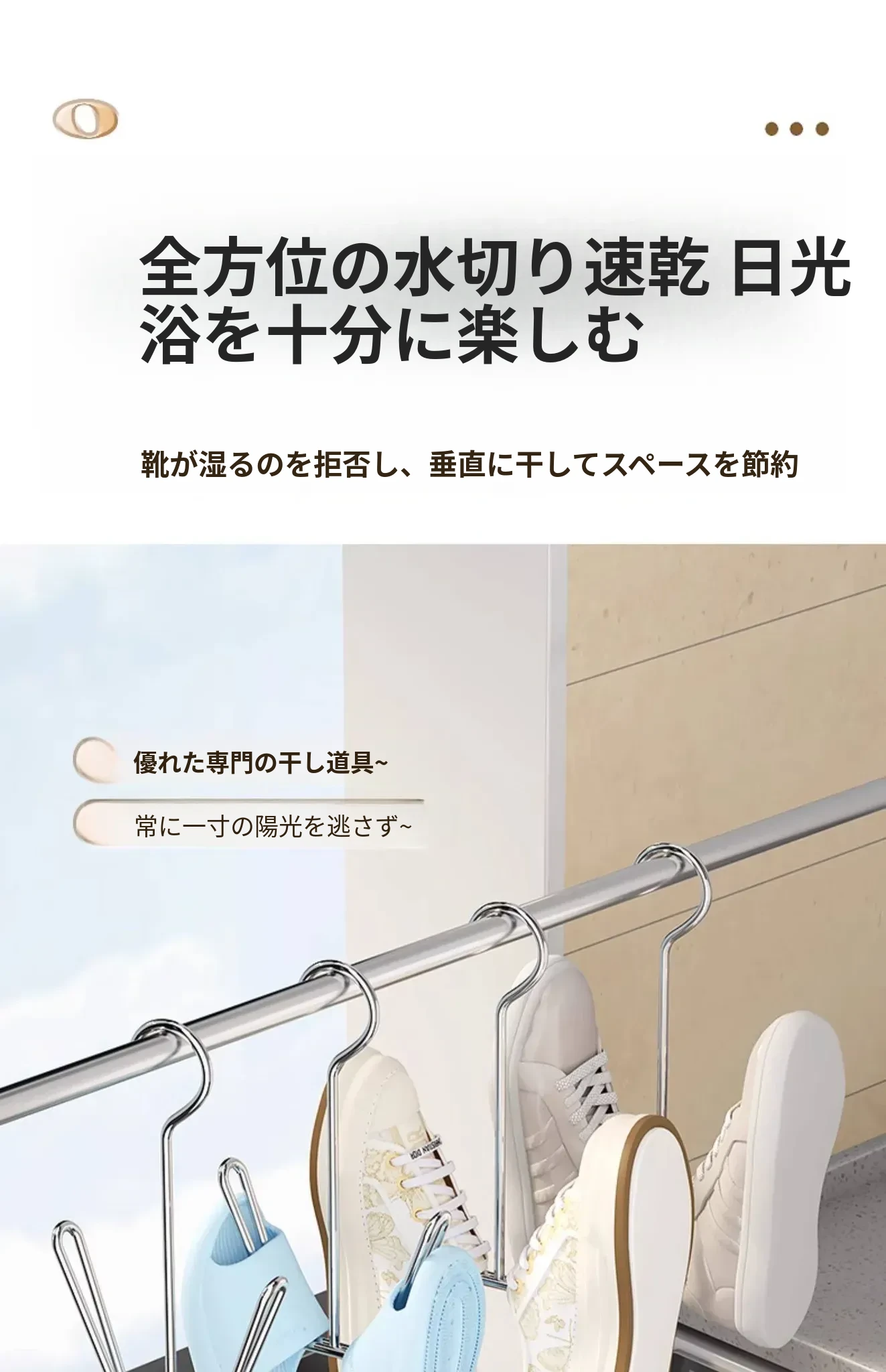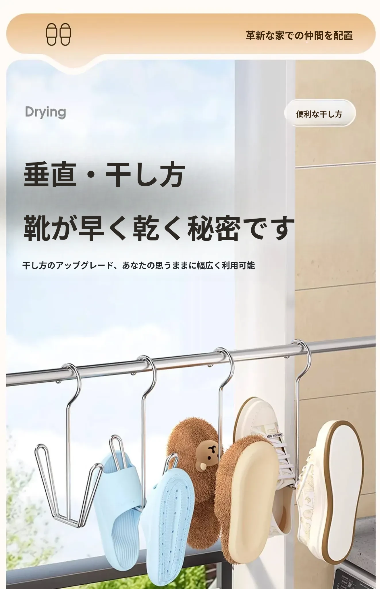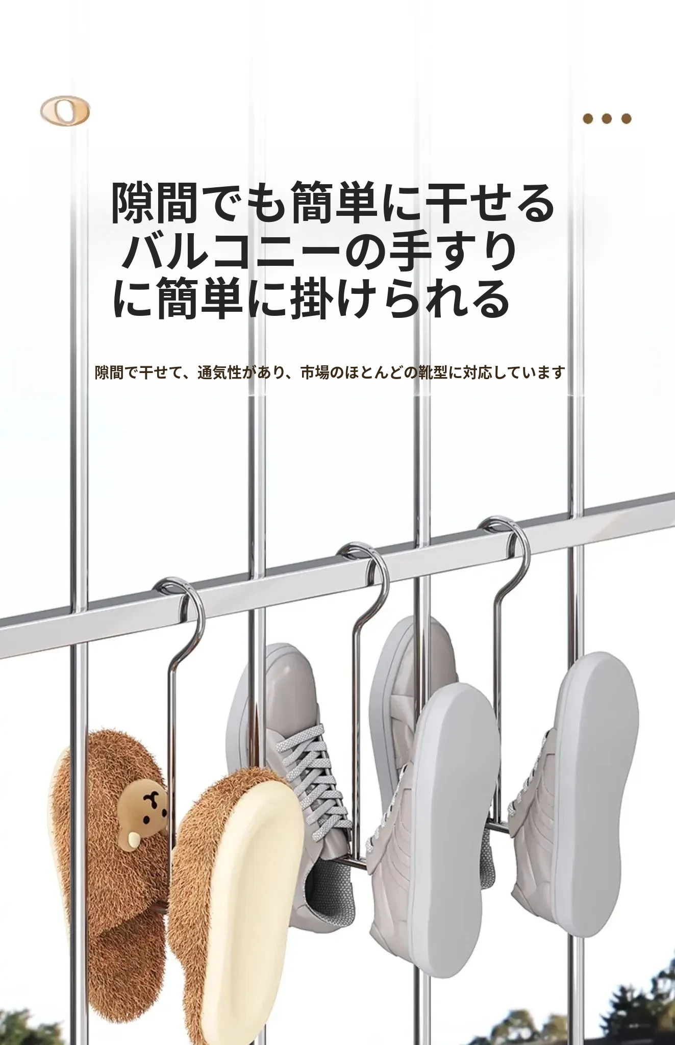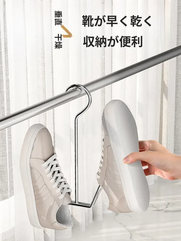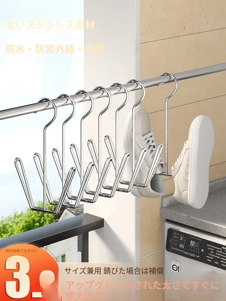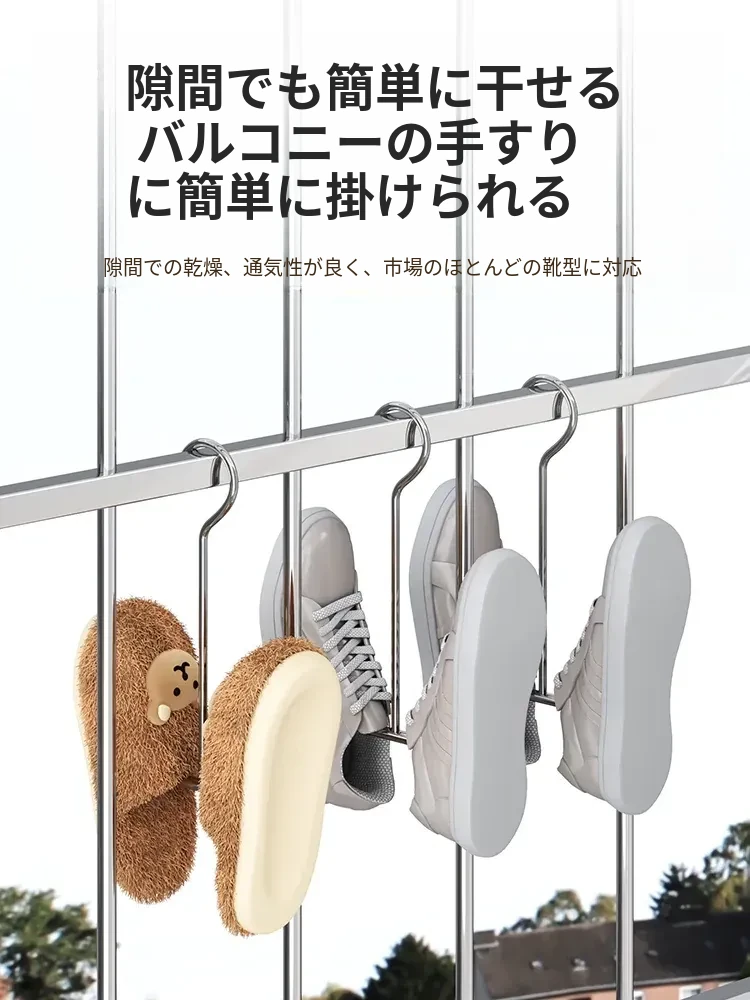 ステンレス製シューラック - 風に強い家用バルコニー用靴干しハンガー!靴をしっかり守る保護柵付き、便利なフック付きで、晴れた日のおしゃれをサポート!【靴の湿気を防ぎ、快適に乾かす】