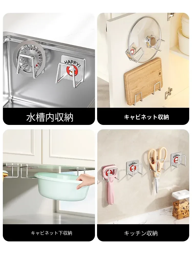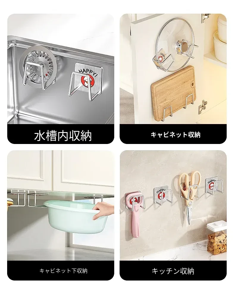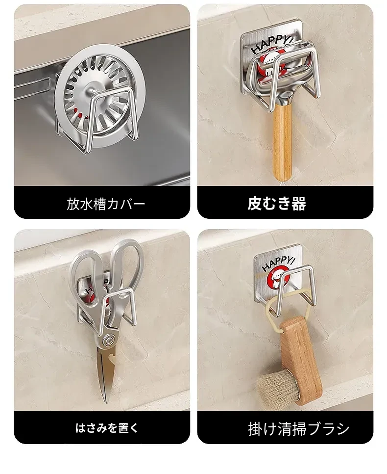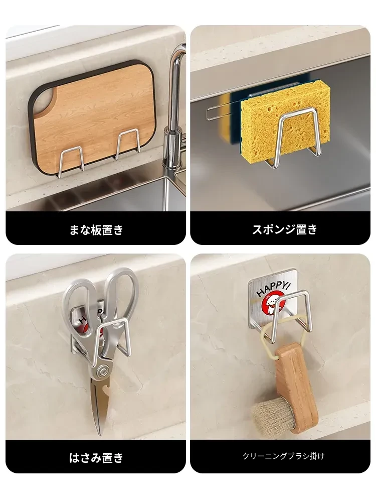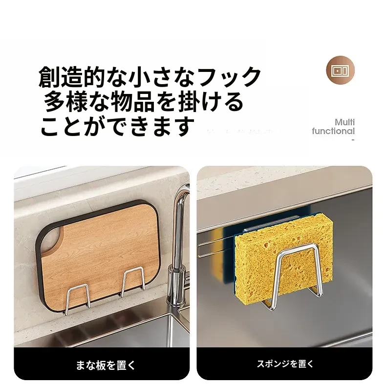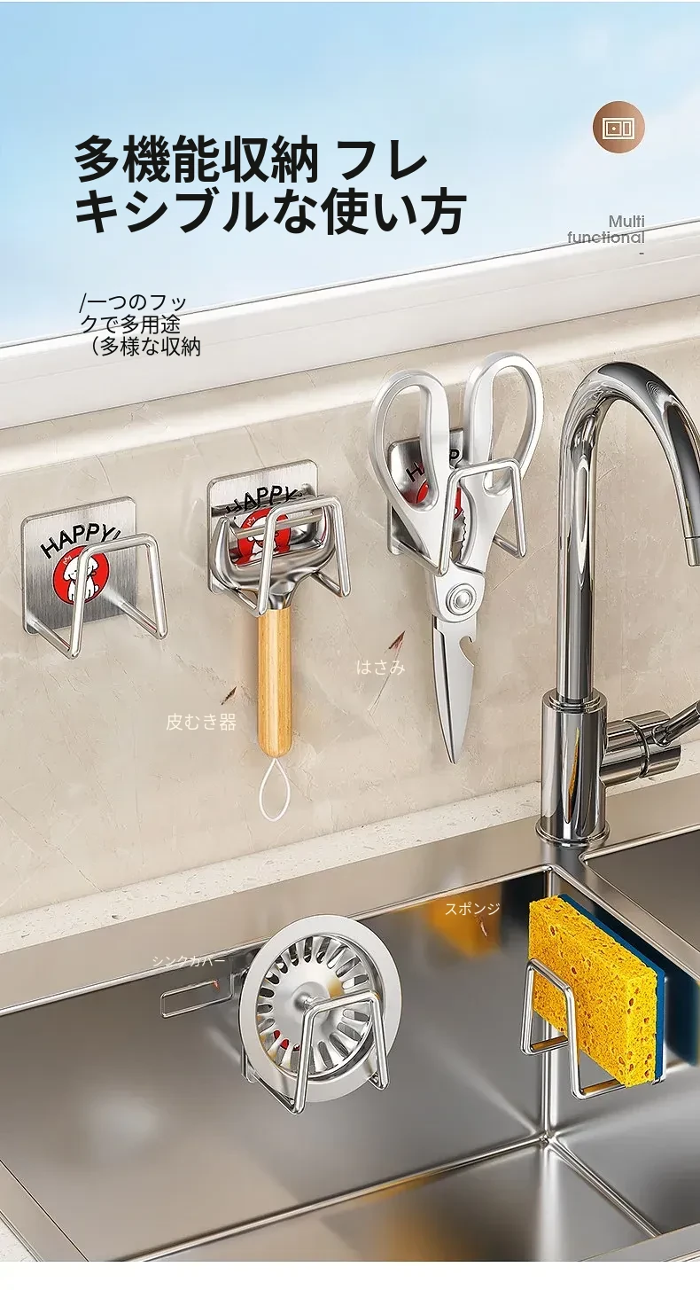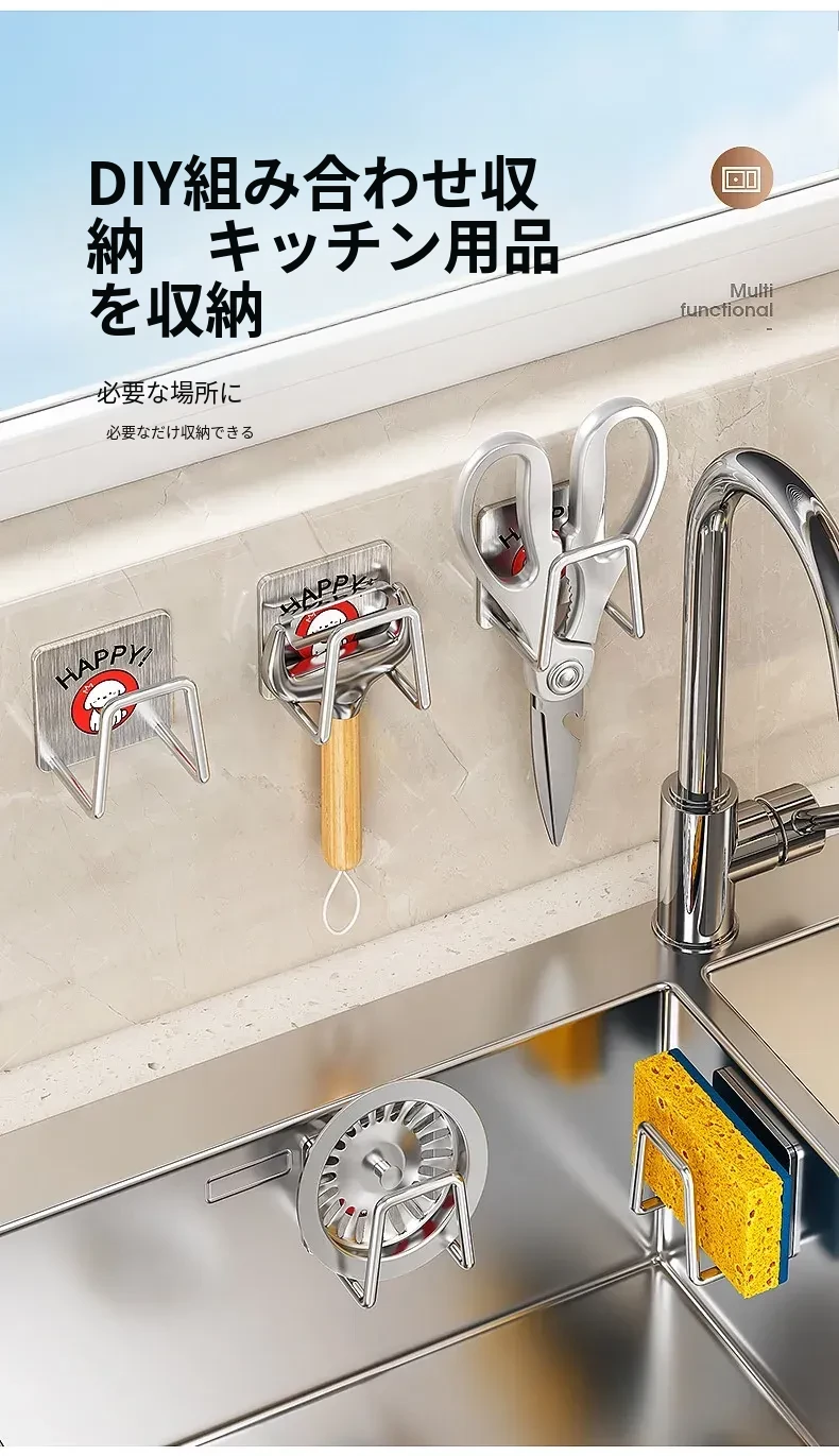 ステンレス製シンク用スポンジ水切りフック|キッチンの水槽に最適なワイヤーボール粘着フック|穴あけ不要の鍋蓋収納ラック|便利な収納アイテム!