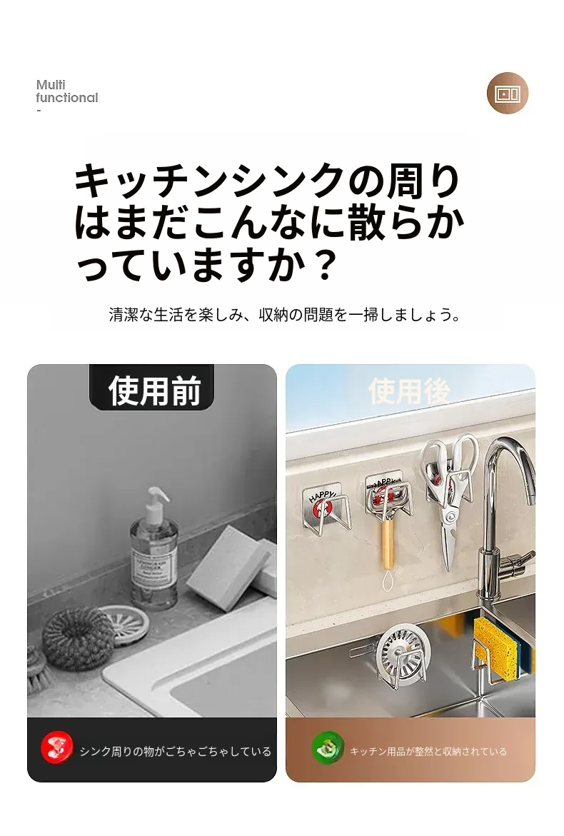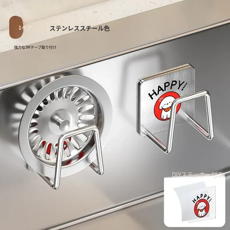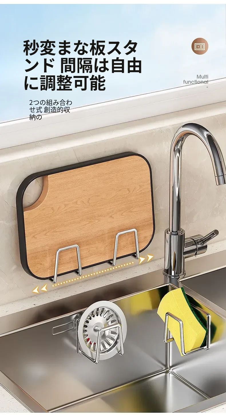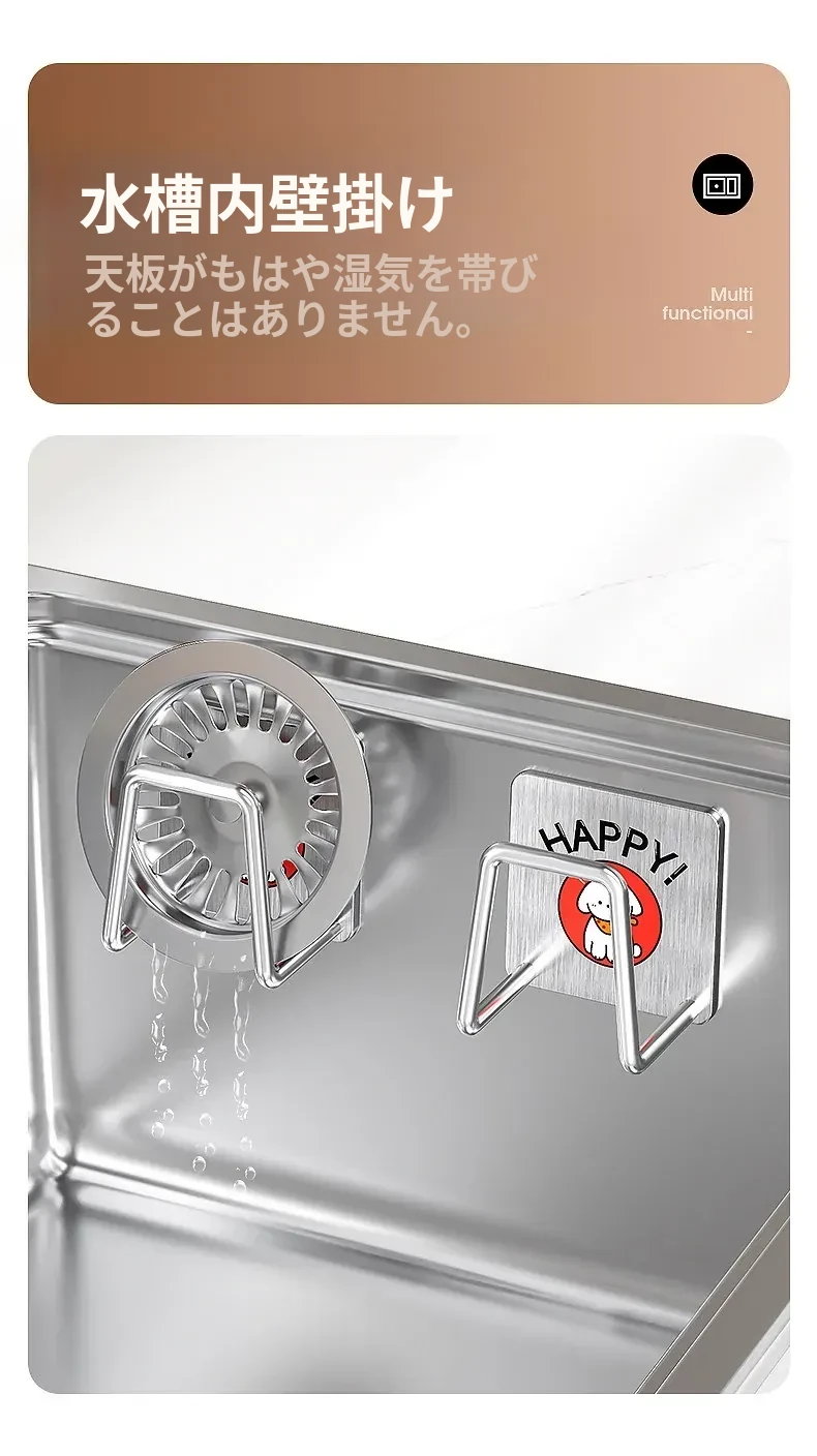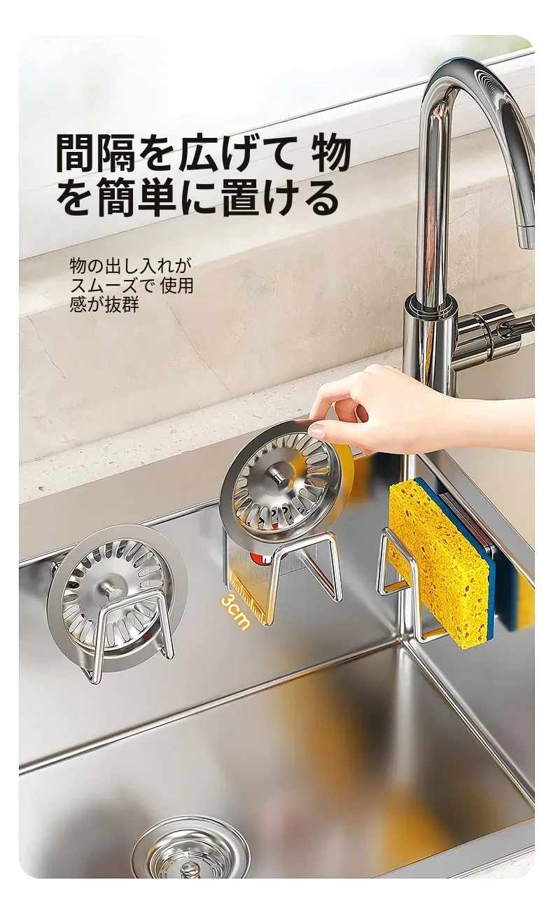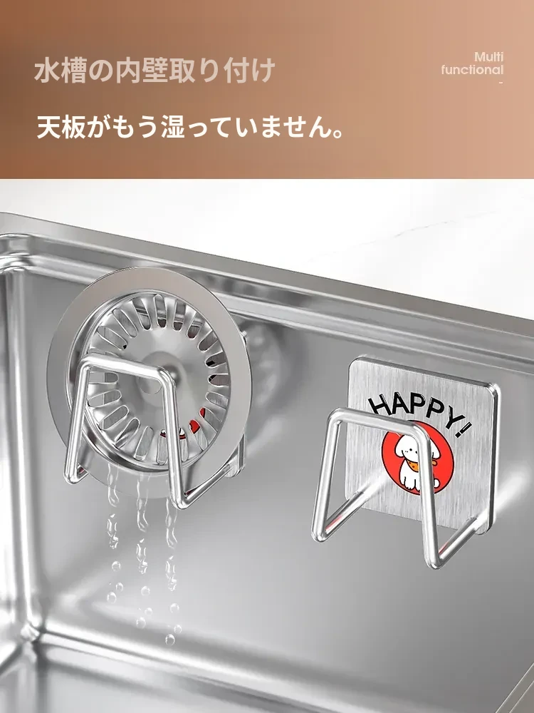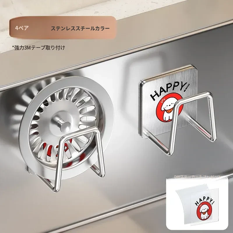 ステンレス製シンク用スポンジ水切りフック|キッチンの水槽に最適なワイヤーボール粘着フック|穴あけ不要の鍋蓋収納ラック|便利な収納アイテム!
