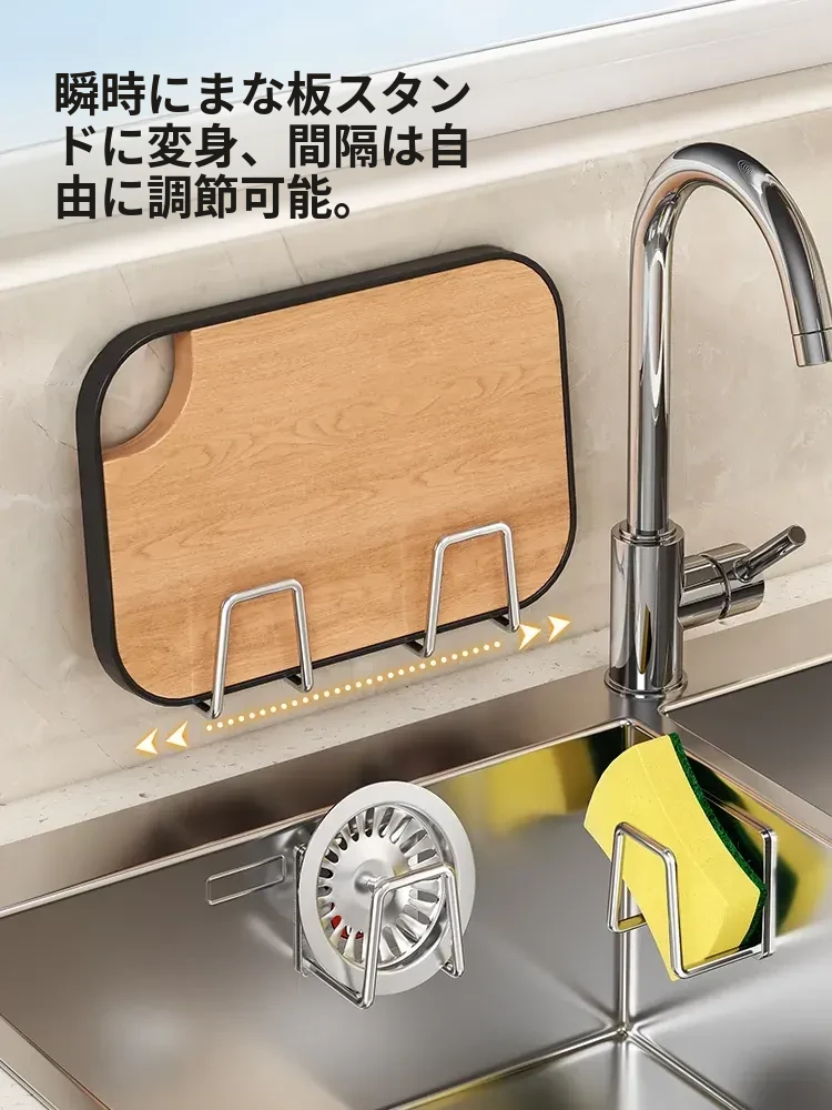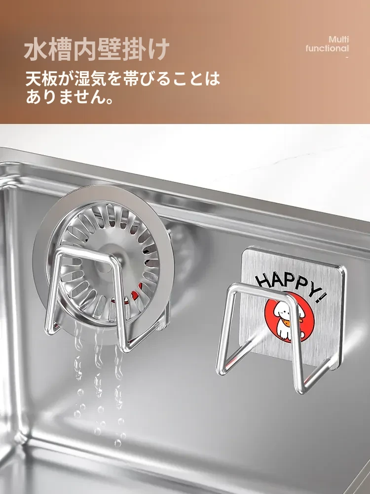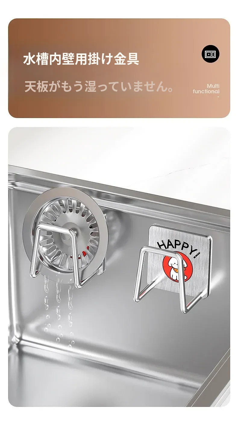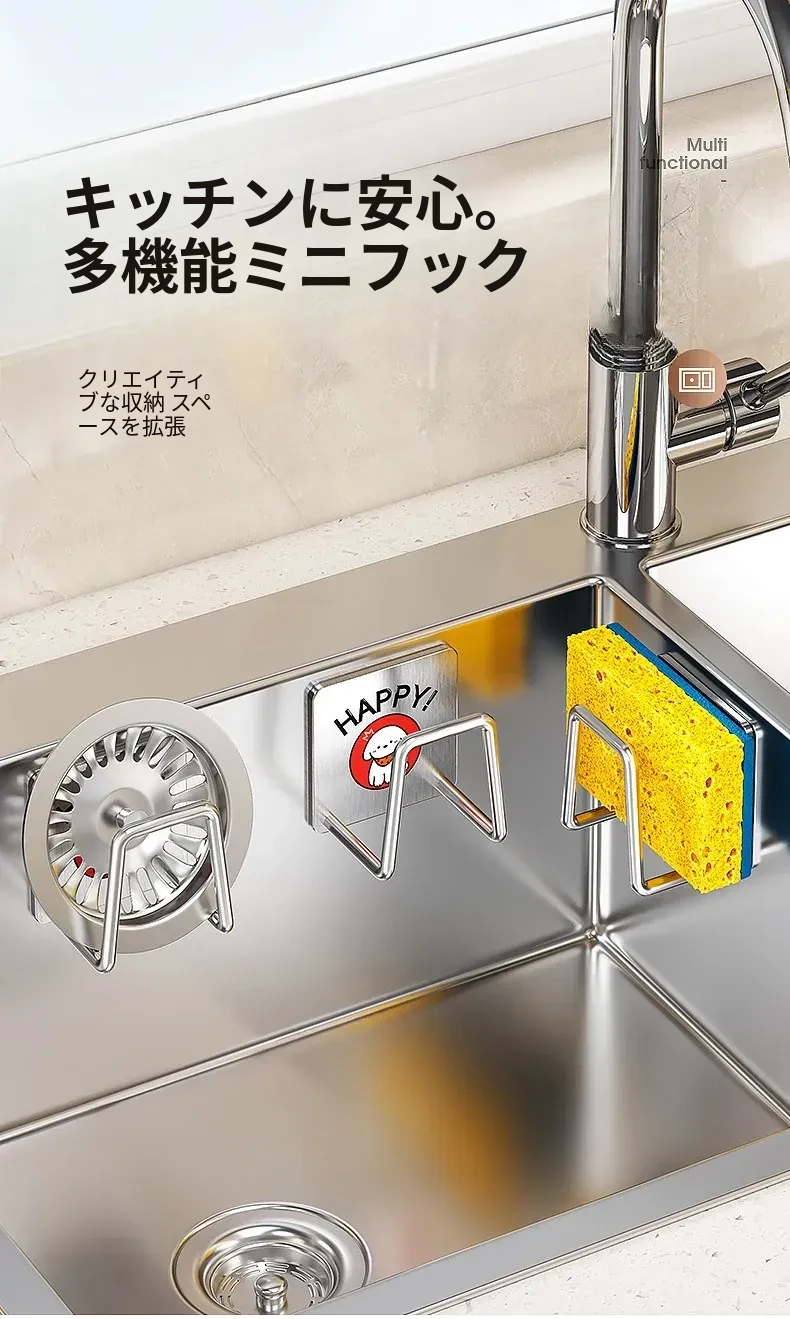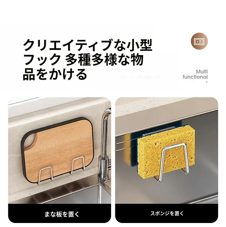ステンレス製シンク用スポンジ水切りフック - キッチンの水槽に最適!穴あけ不要で鍋のフタや洗剤をすっきり収納できる便利グッズ!清潔感あふれるデザインで、キッチンをもっと快適に!