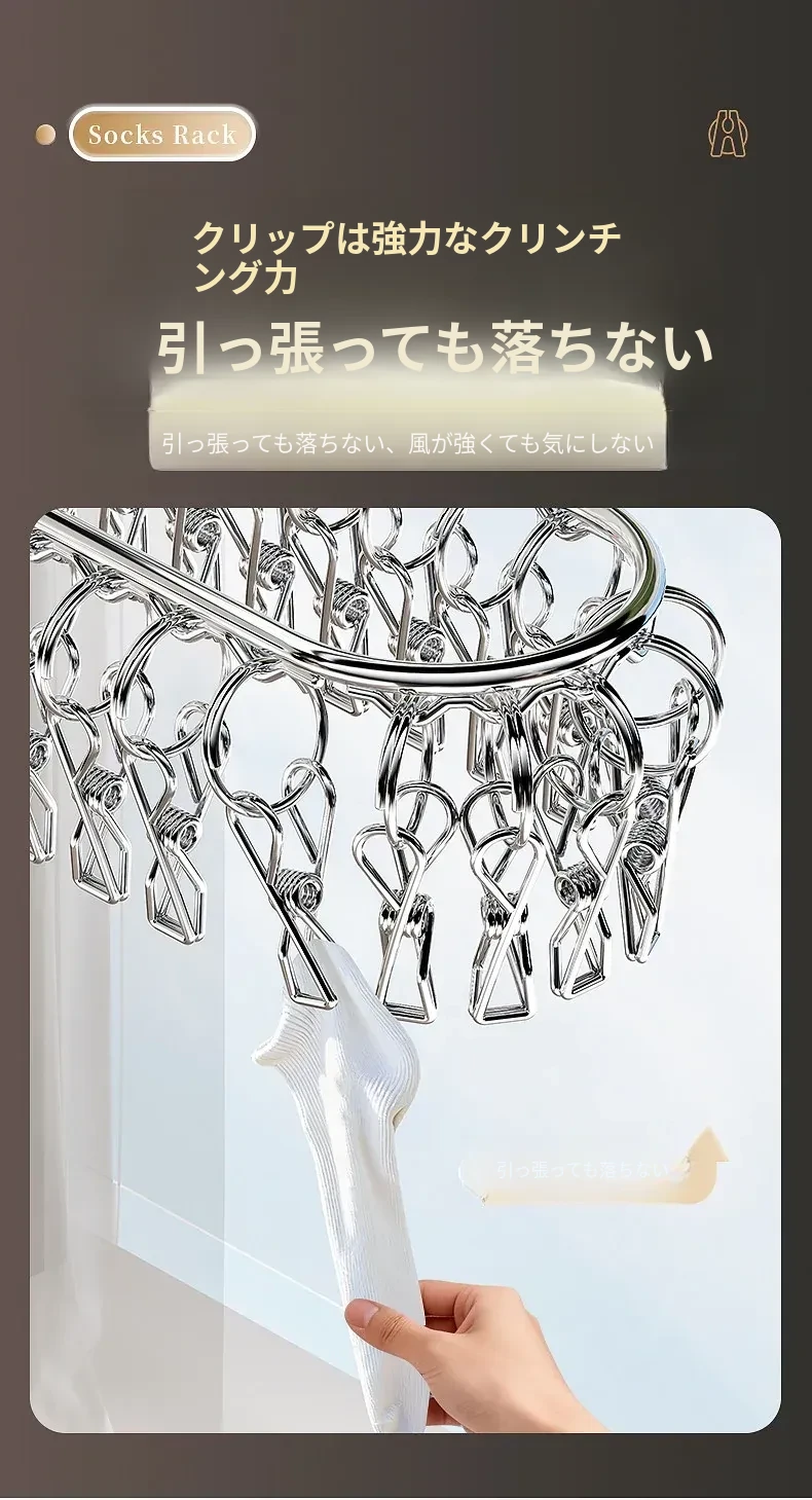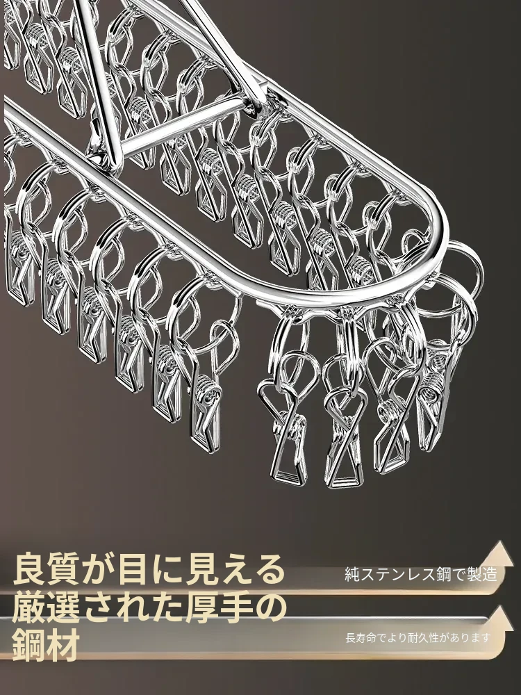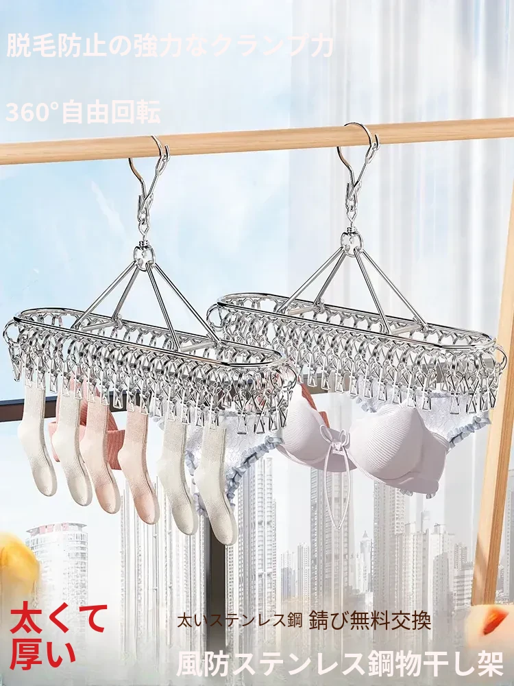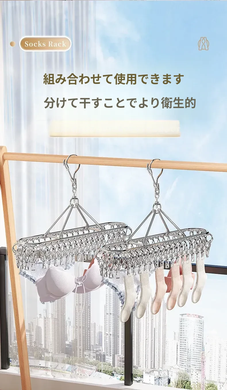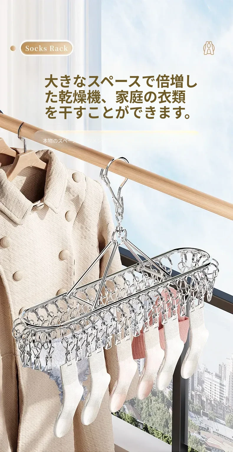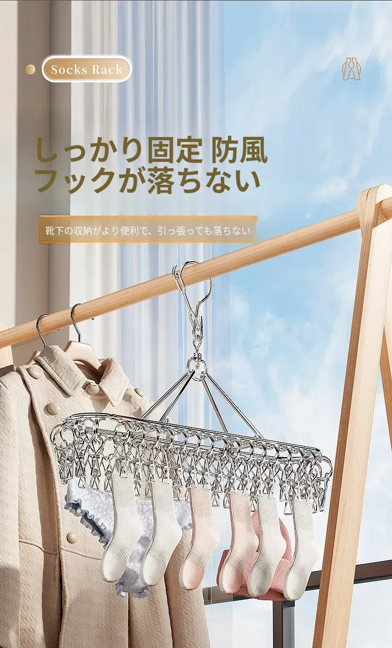 ステンレス製靴下干しラック 多クリップ 風に強い 無痕の神アイテム 家庭用バルコニー 多機能 下着・靴下・衣類干しハンガー