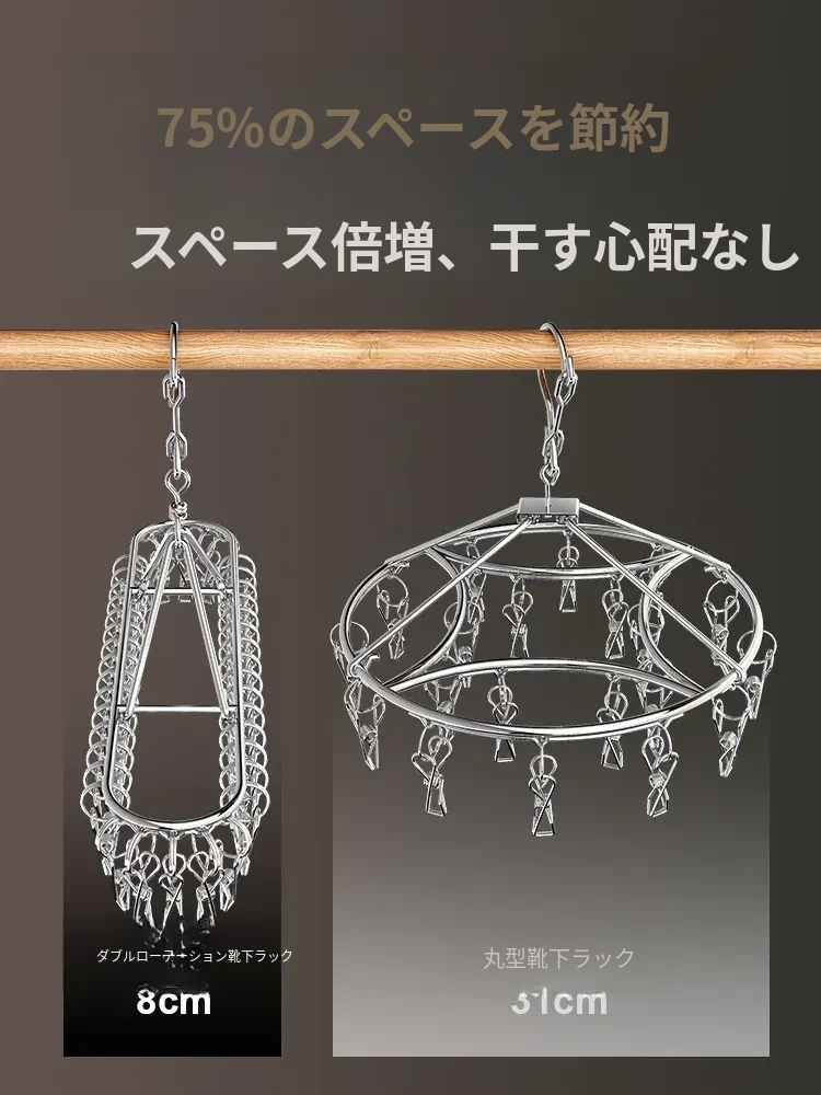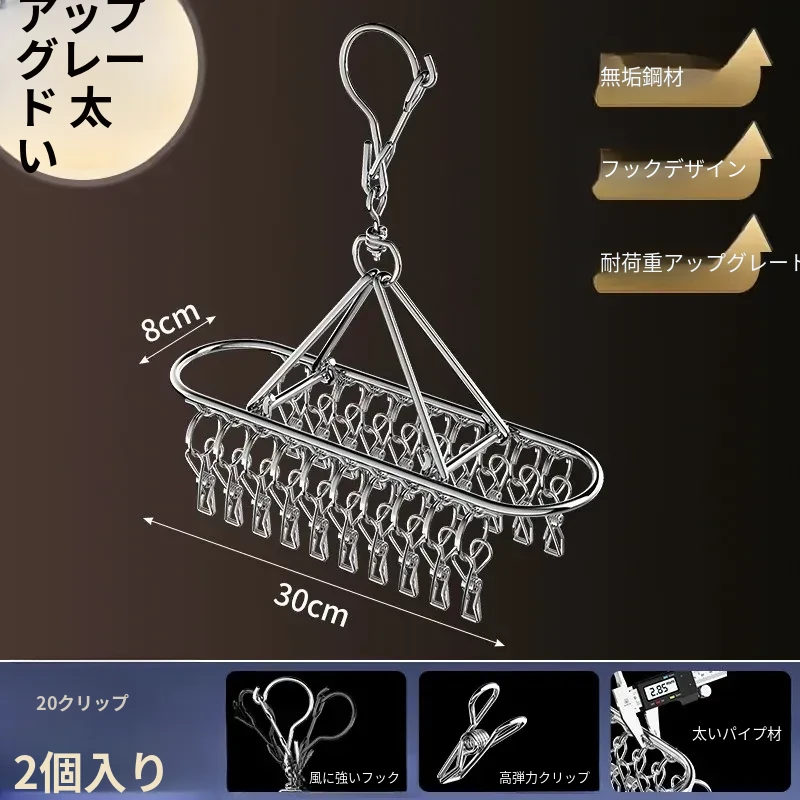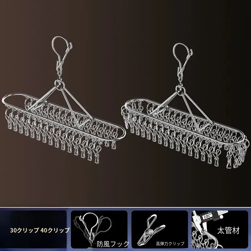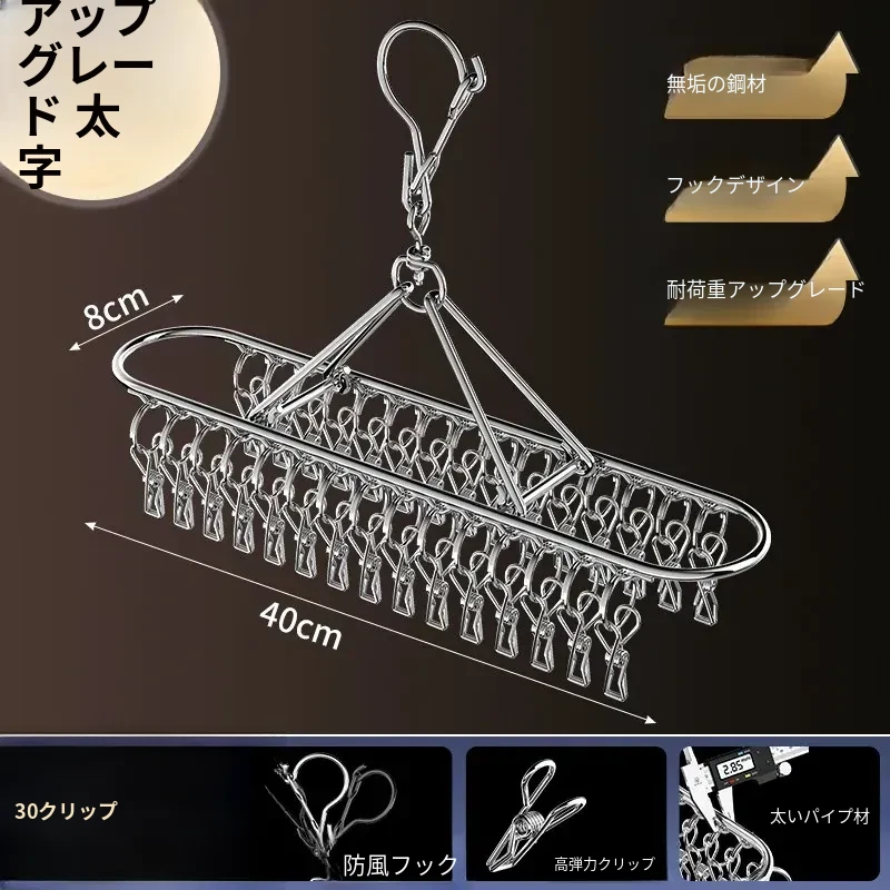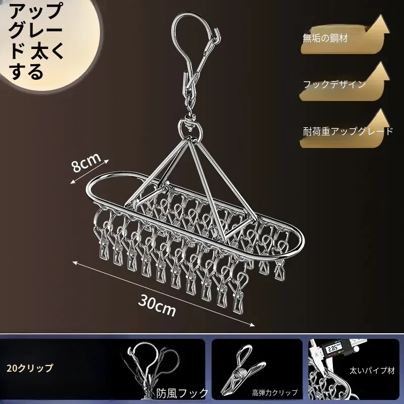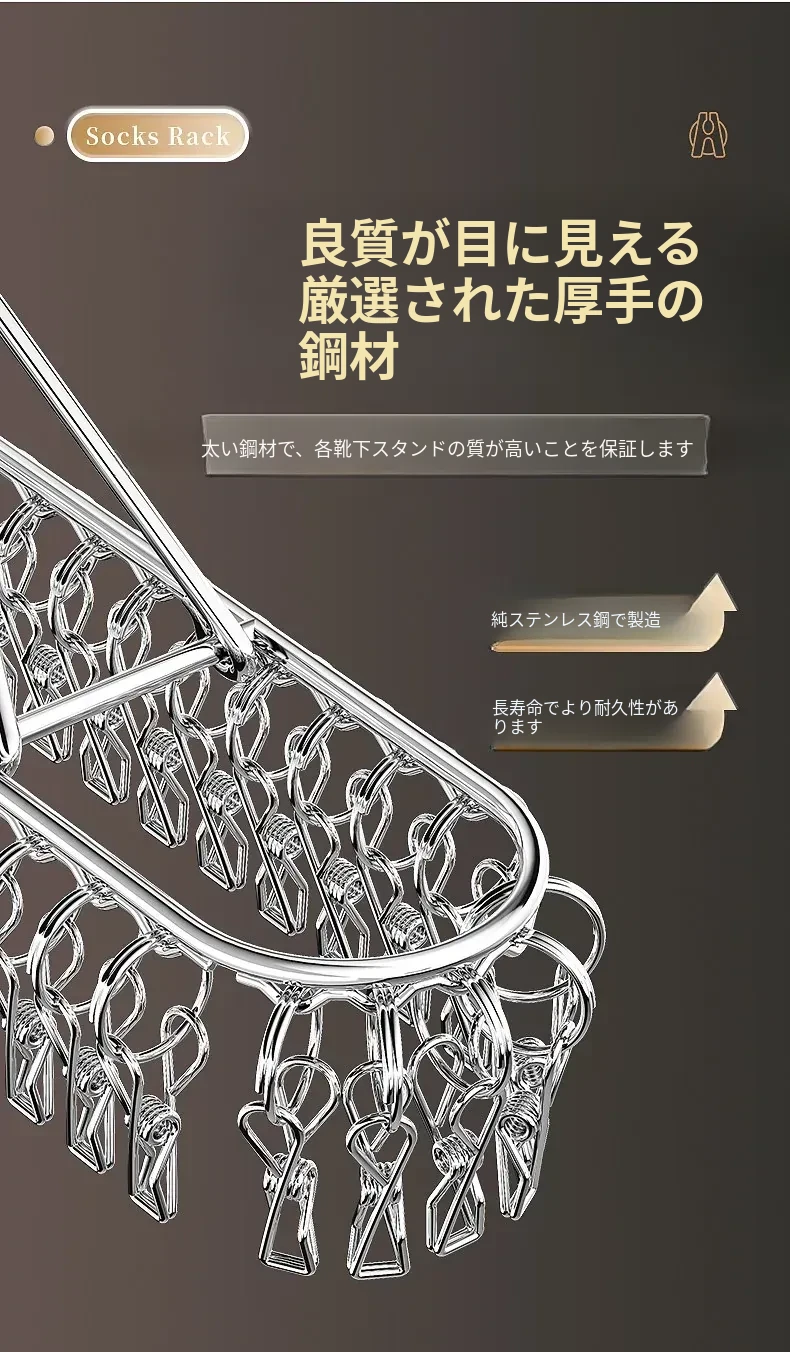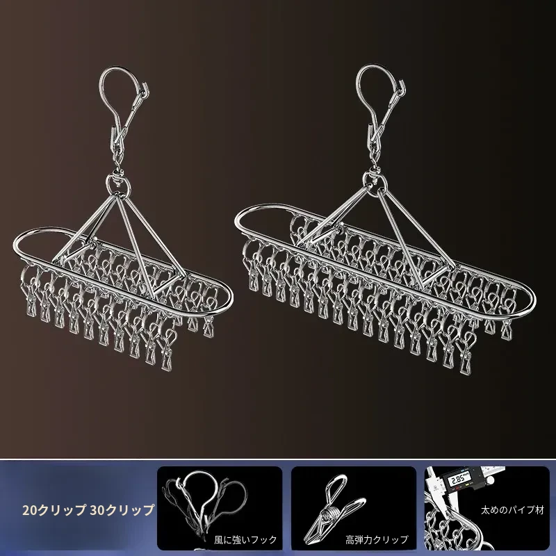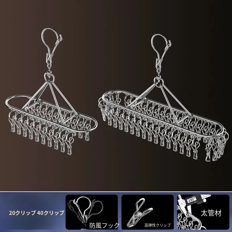 ステンレス製靴下干しラック 多クリップ 風に強い 無痕の神アイテム 家庭用バルコニー 多機能 下着・靴下・衣類干しハンガー