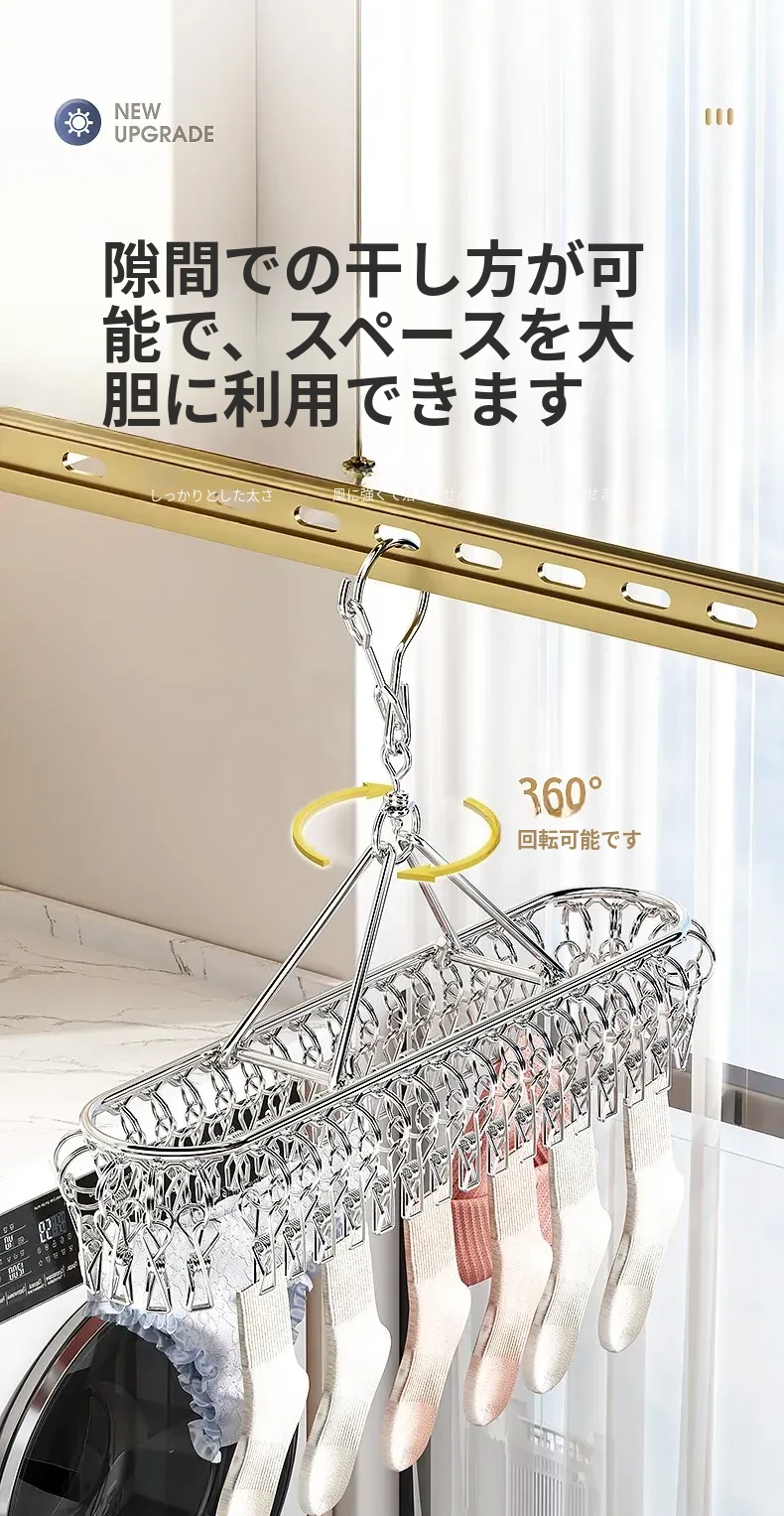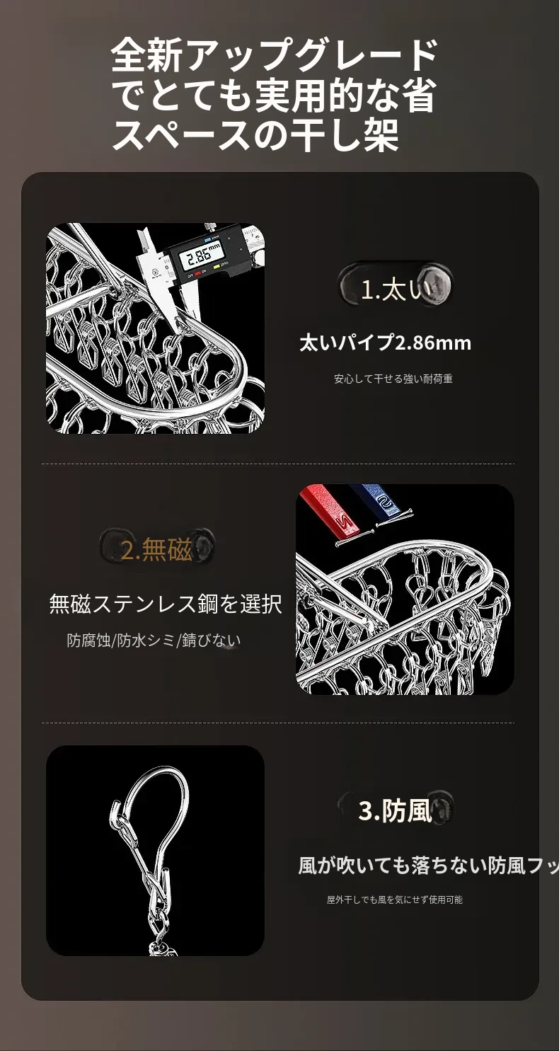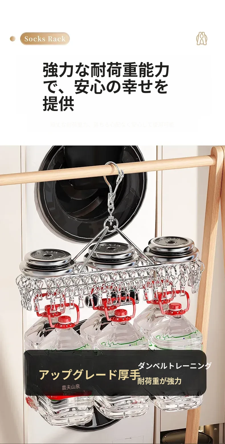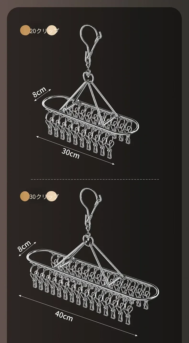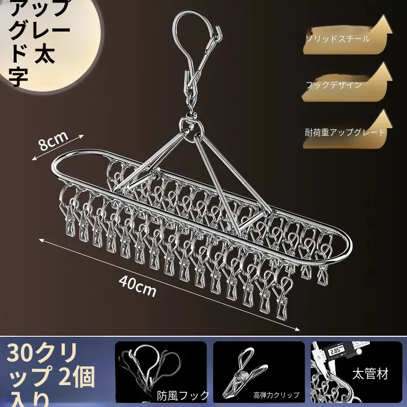 ステンレス製靴下干しラック 多クリップ 風に強い 無痕の神アイテム 家庭用バルコニー 多機能 下着・靴下・衣類干しハンガー