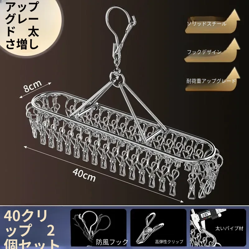 ステンレス製ソックスクリップ【40クリップ】強力なクリンチ力✅太めの防風