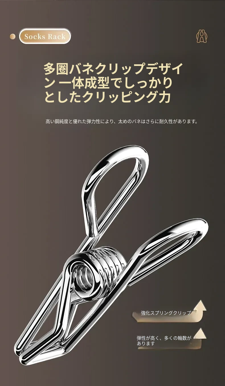 ステンレス製ソックスクリップ【30クリップ】強力なクリンチ力✅太めの防風
