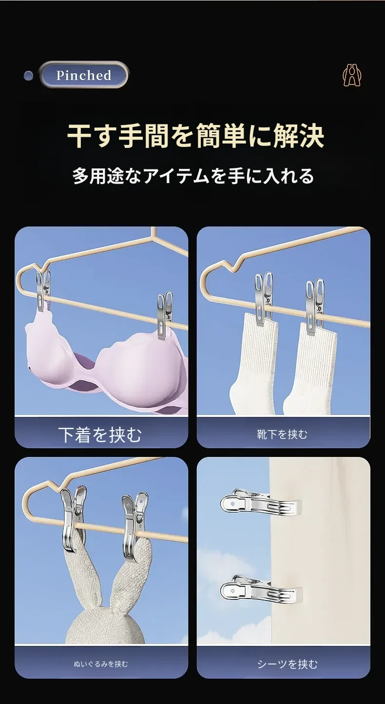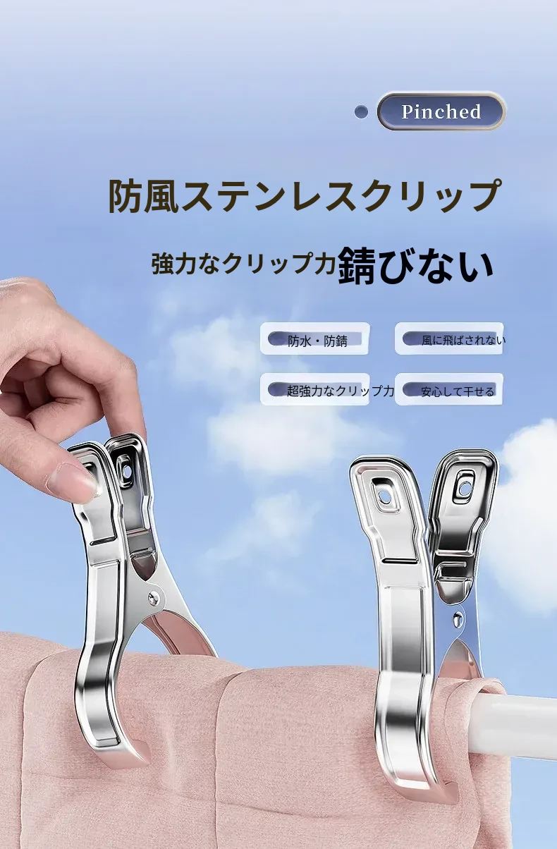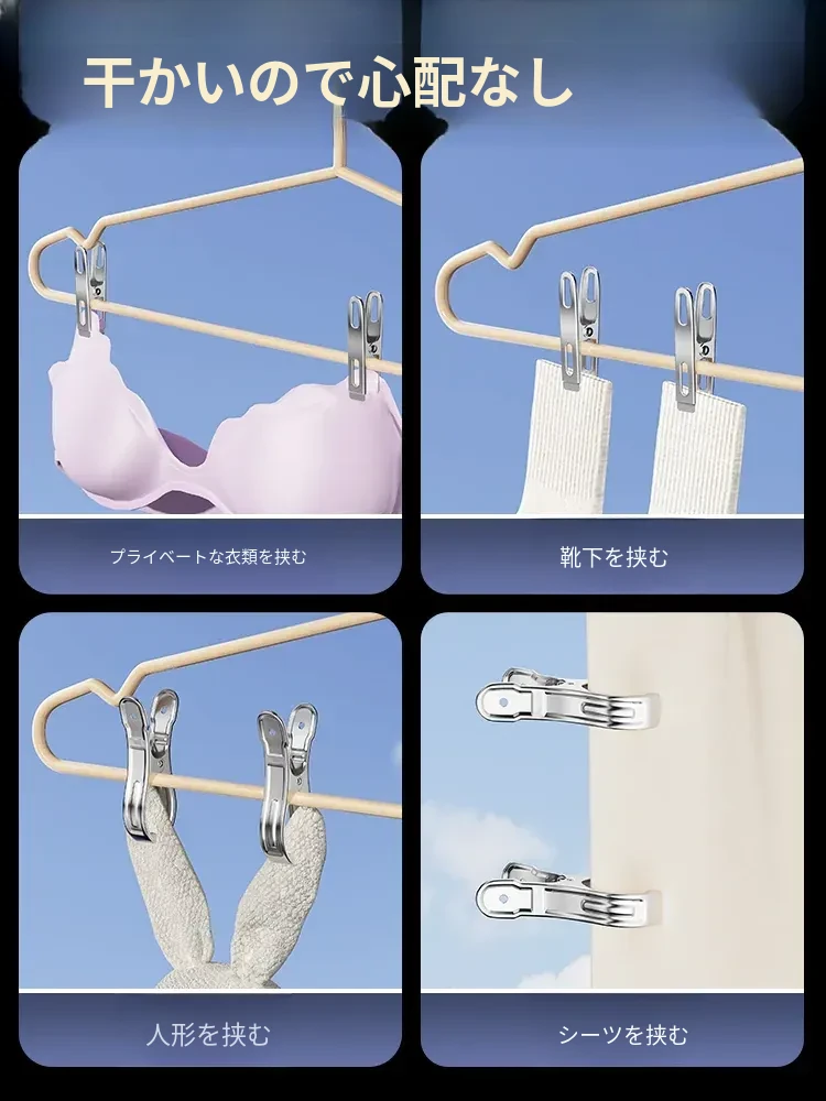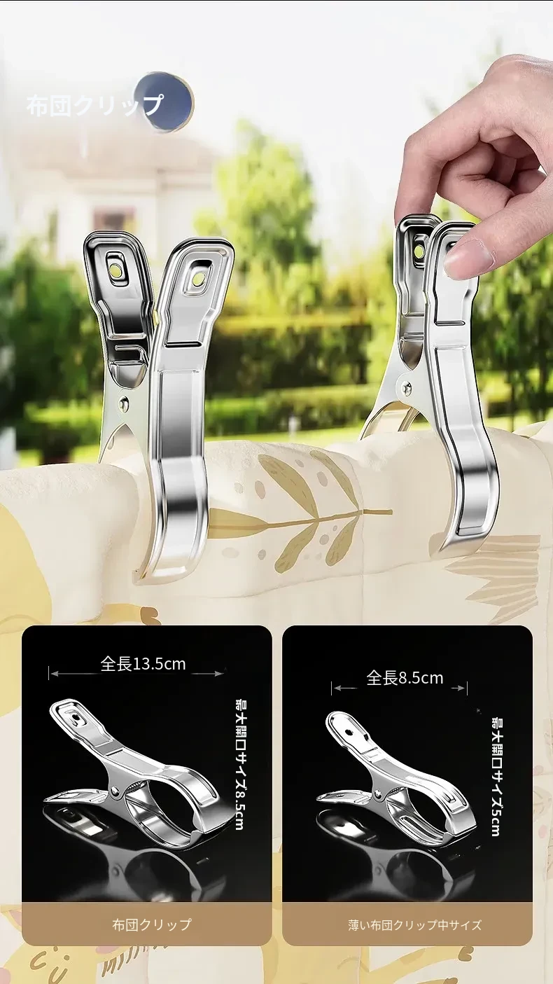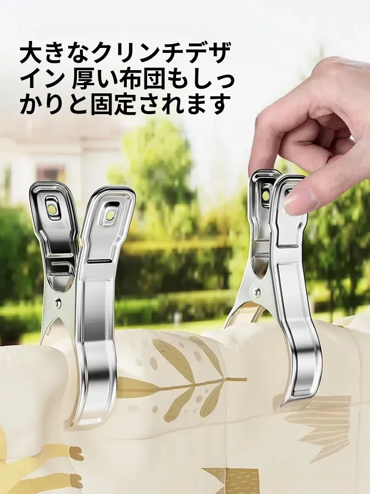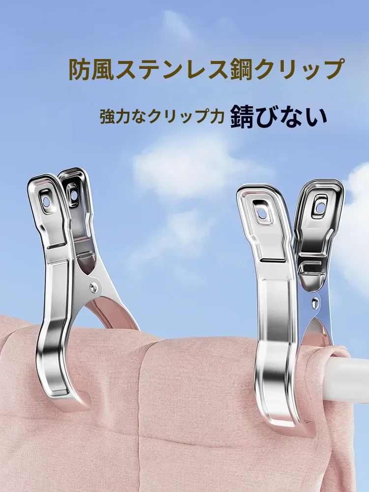 風に強いステンレス製大クリップ!衣類干しに最適、靴下や布団も固定できる多機能クリップ。家庭での使い勝手抜群、便利さを実感してください!