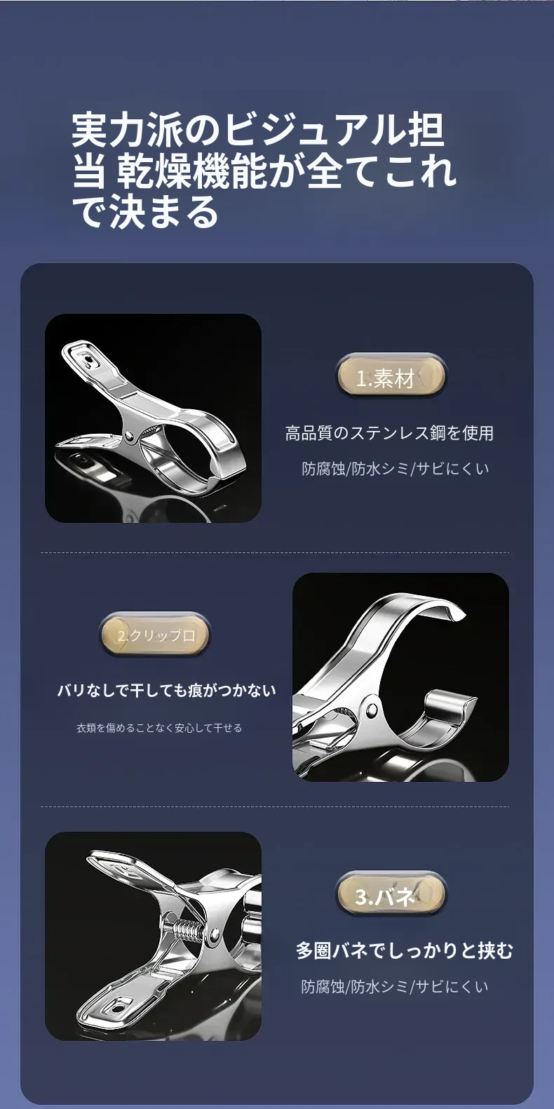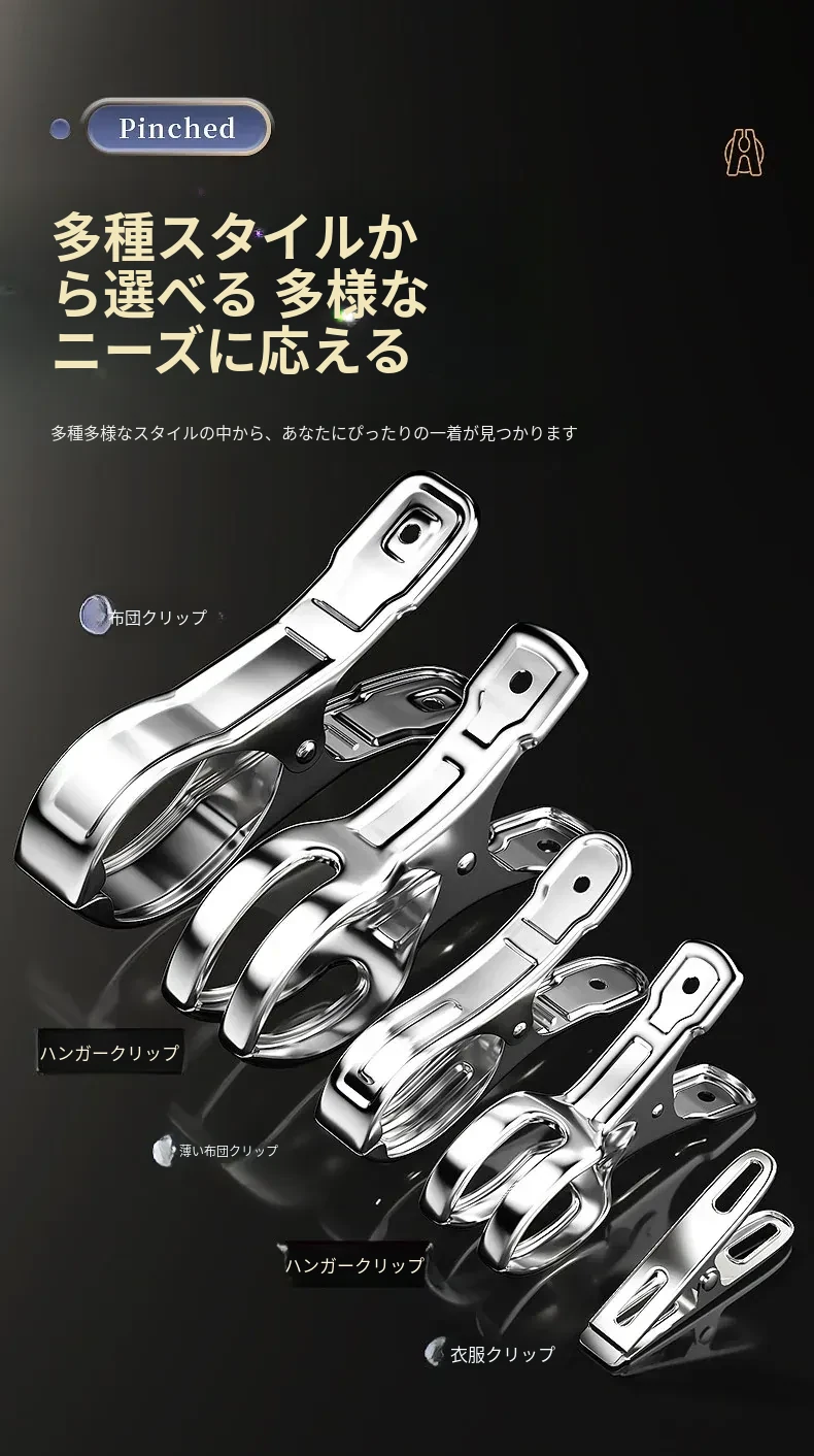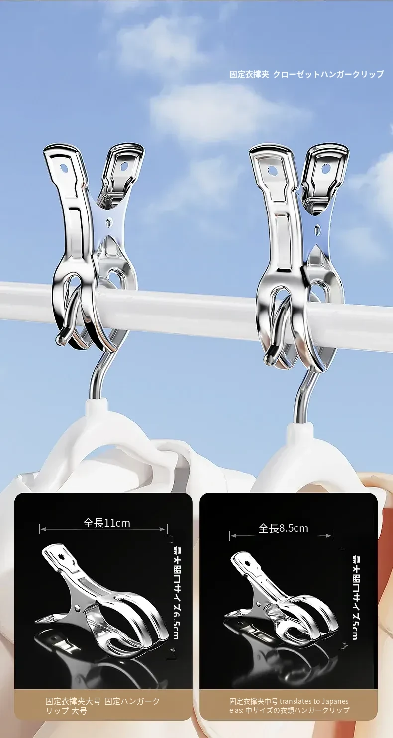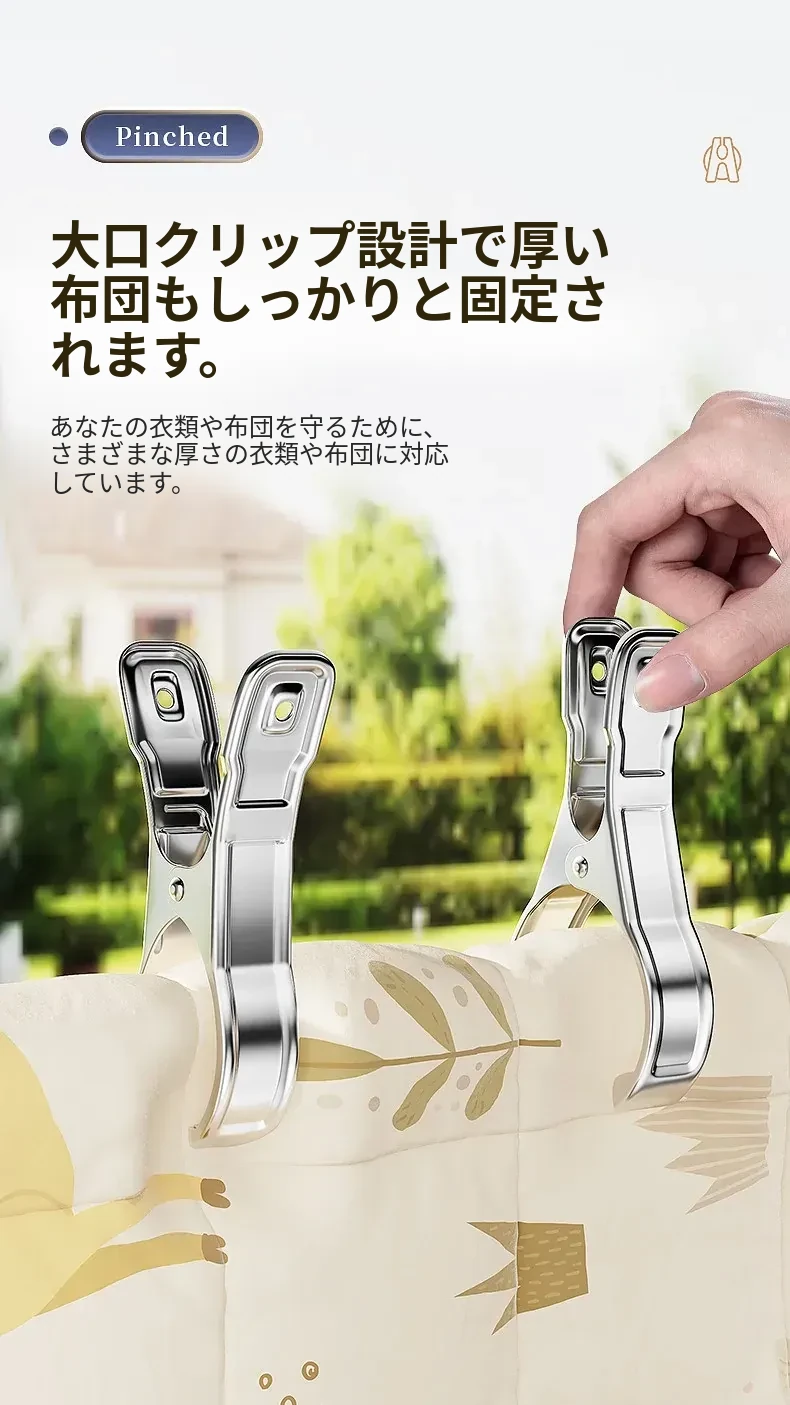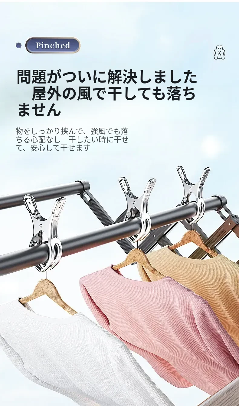 風に強いステンレス製大クリップ!衣類干しに最適、靴下や布団も固定できる多機能クリップ。家庭での使い勝手抜群、便利さを実感してください!