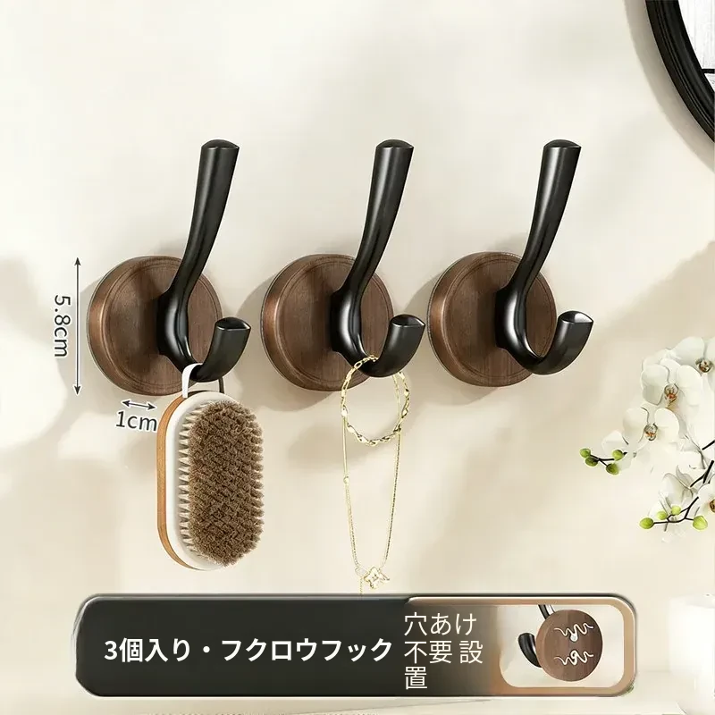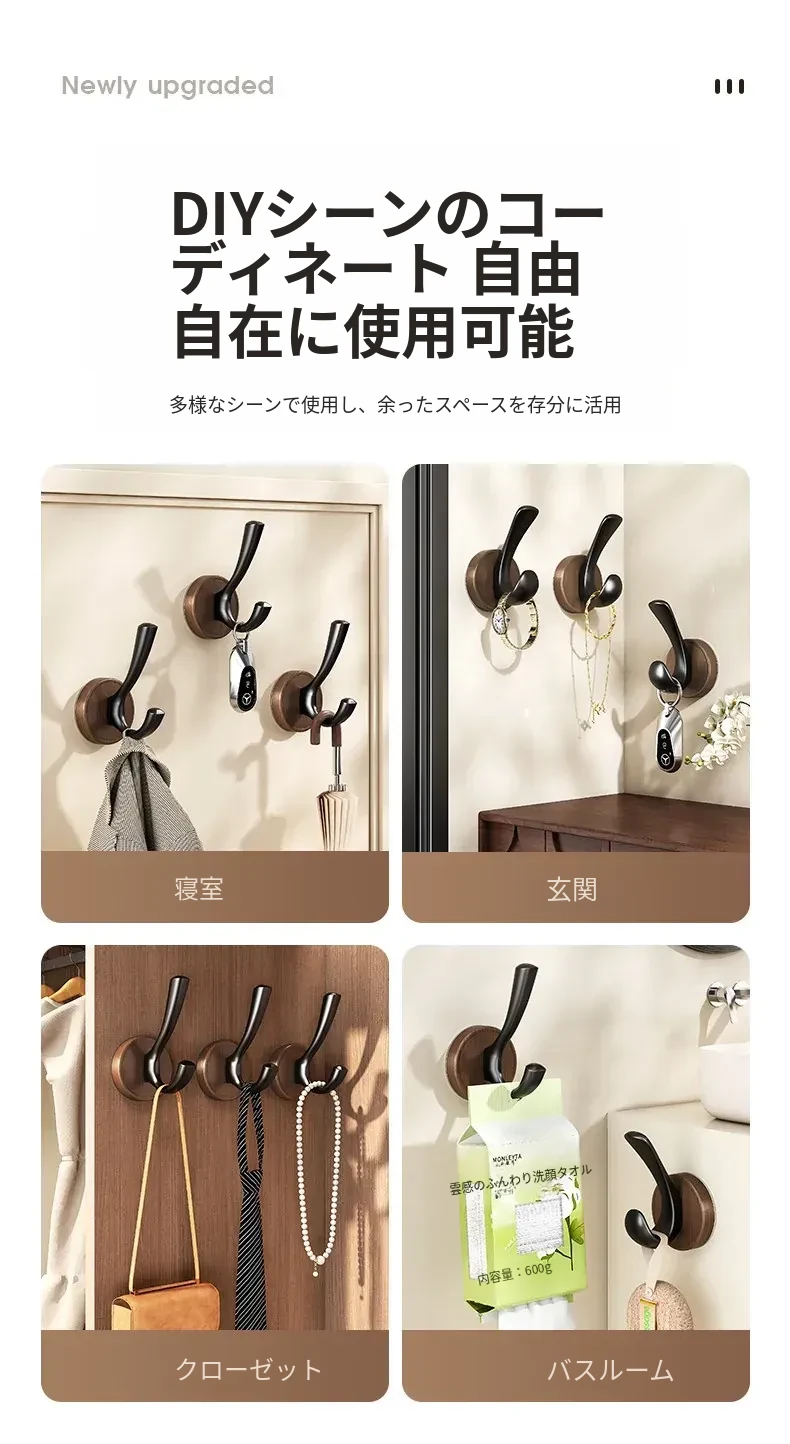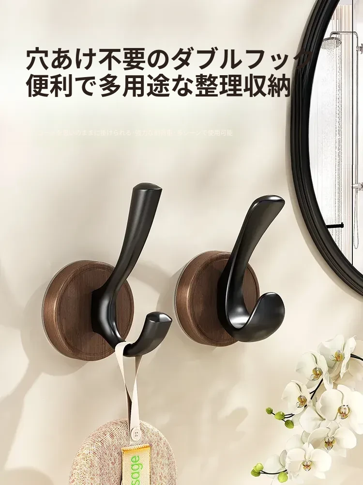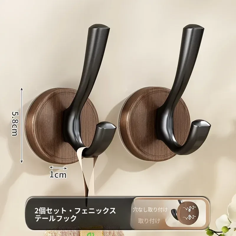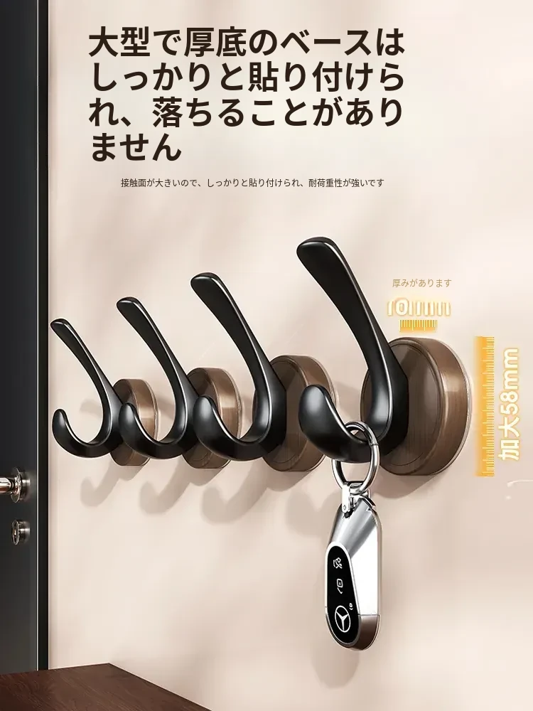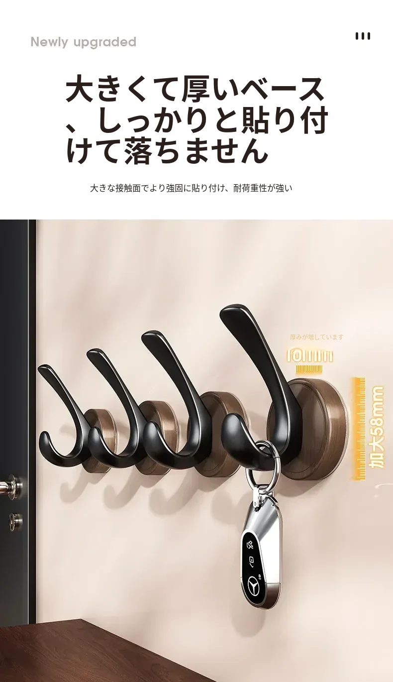 ドア裏フック - 穴あけ不要!強力粘着テープで安心の耐荷重。玄関の鍵やバスルームのタオル、衣類をスマートに収納できる便利アイテム!