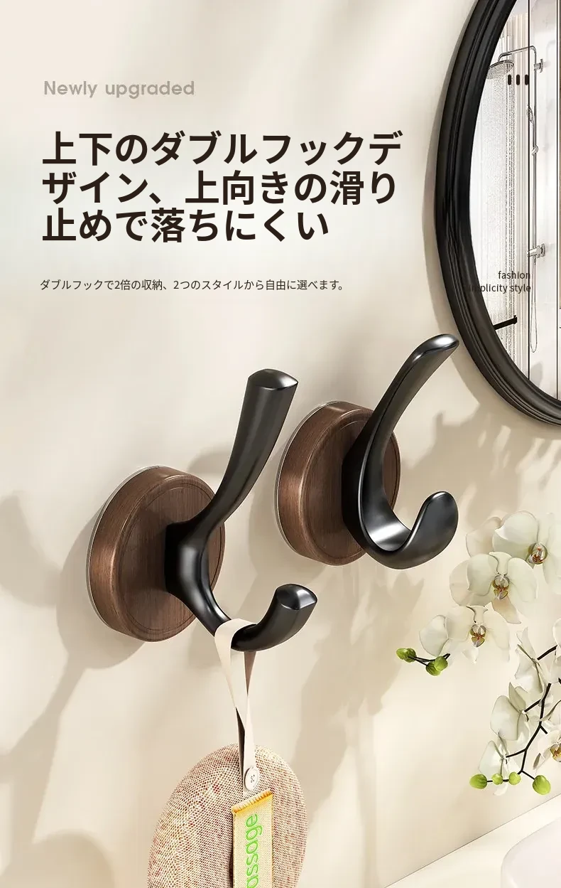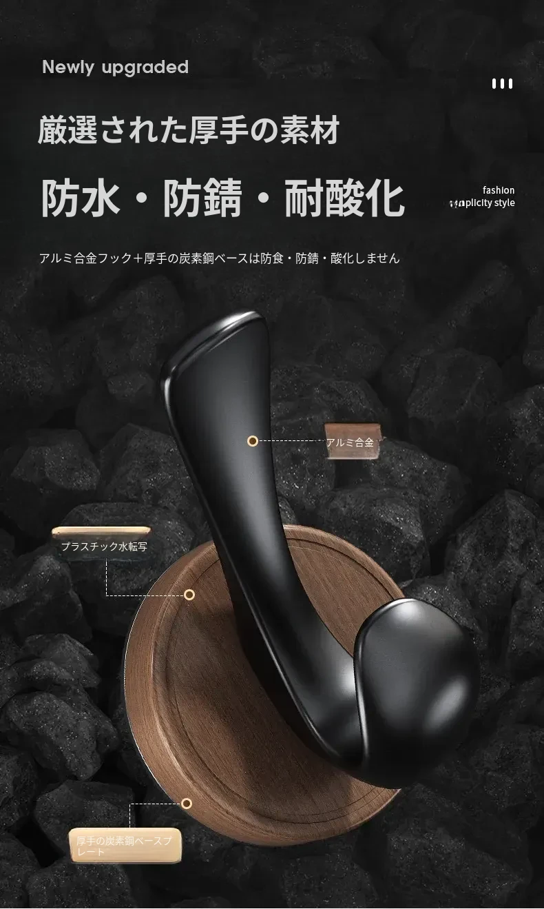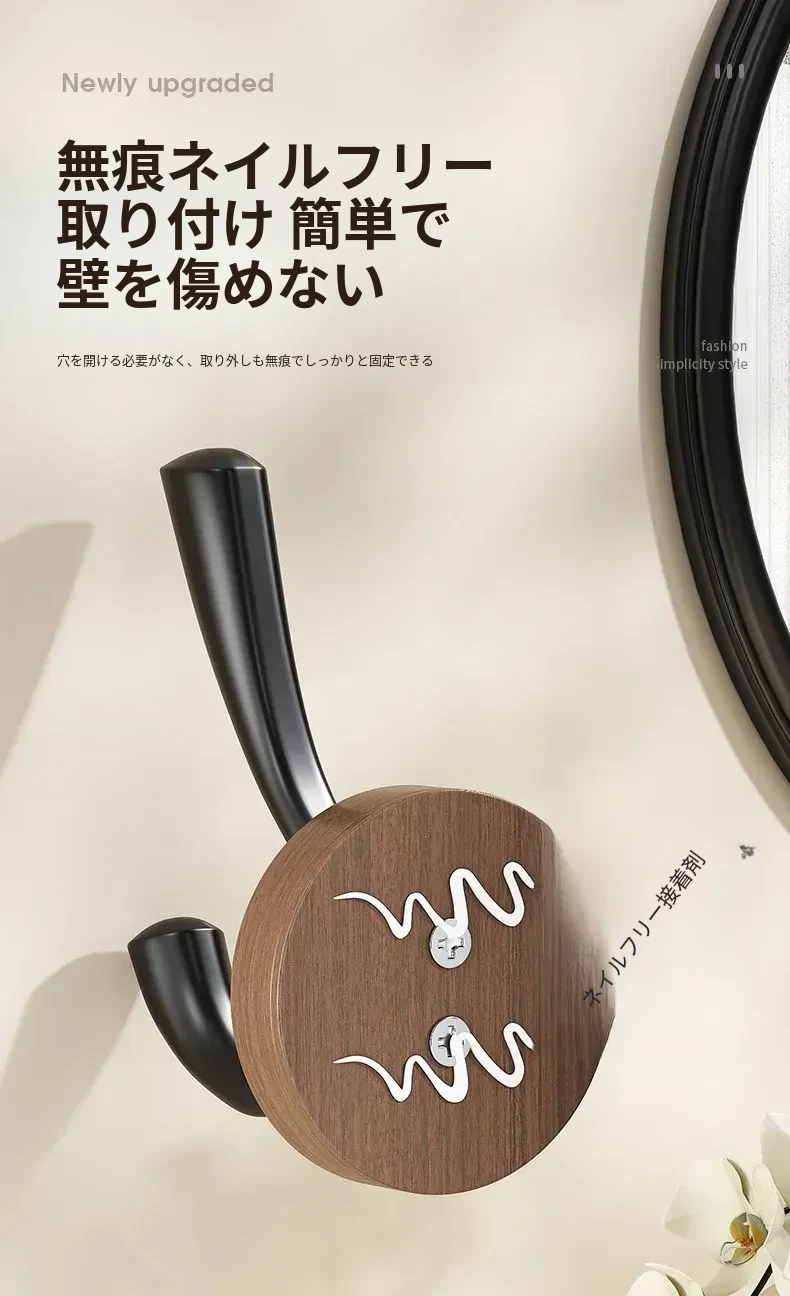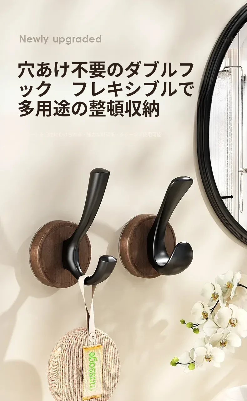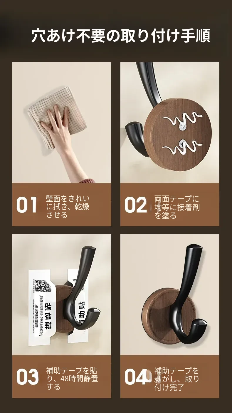 ドア裏フック - 穴あけ不要!強力粘着テープで安心の耐荷重。玄関の鍵やバスルームのタオル、衣類をスマートに収納できる便利アイテム!