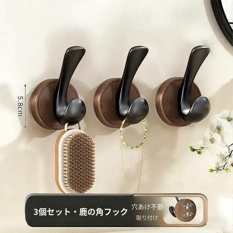 ウォールナットカラー●シカの角フック【3個入り】