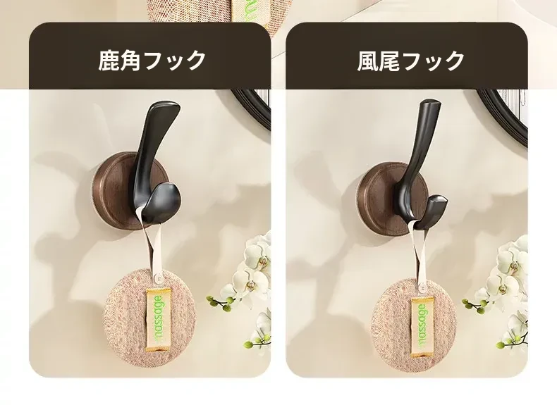 ウォールナットカラー●シカの角フック【1個入り】