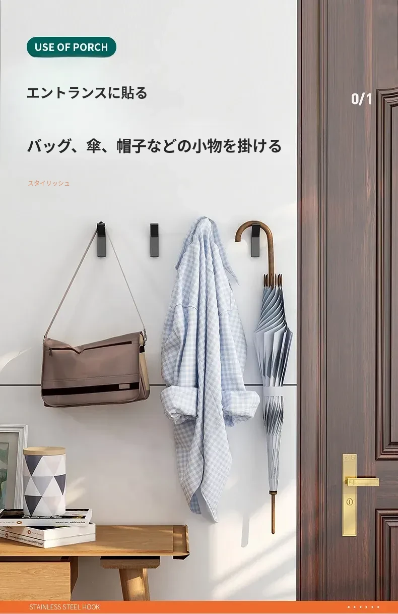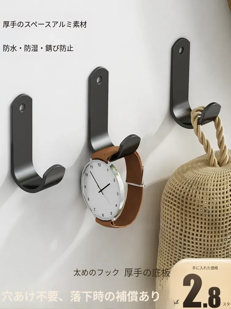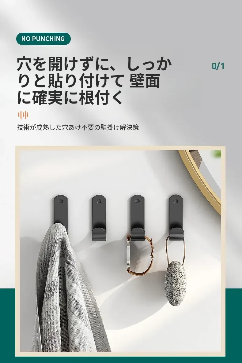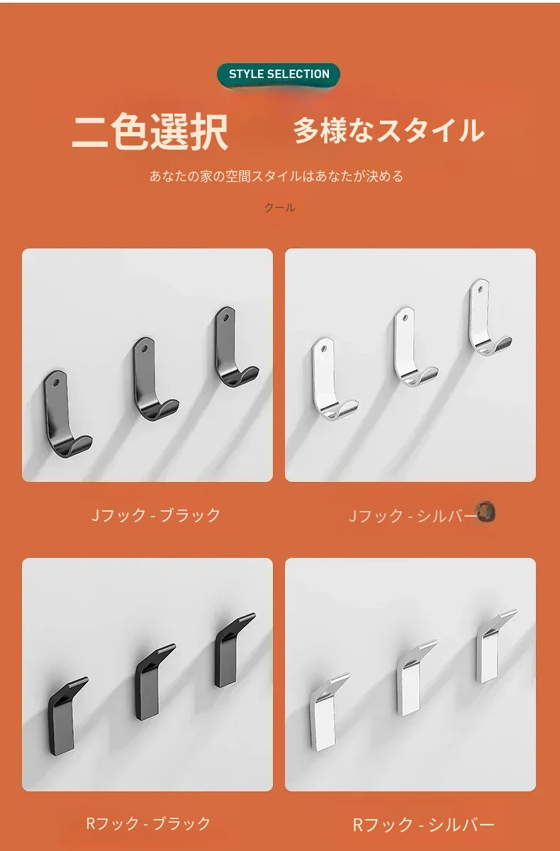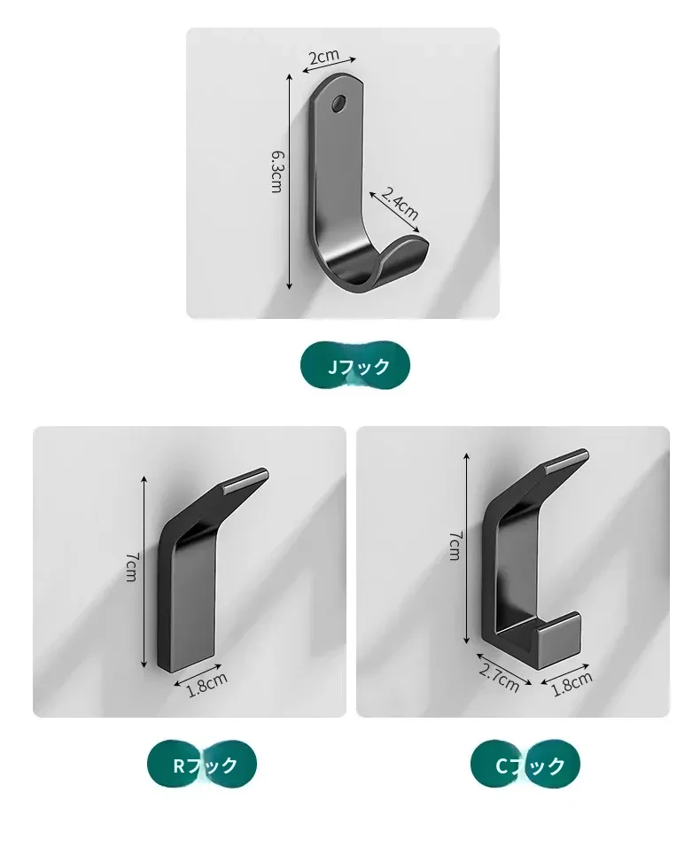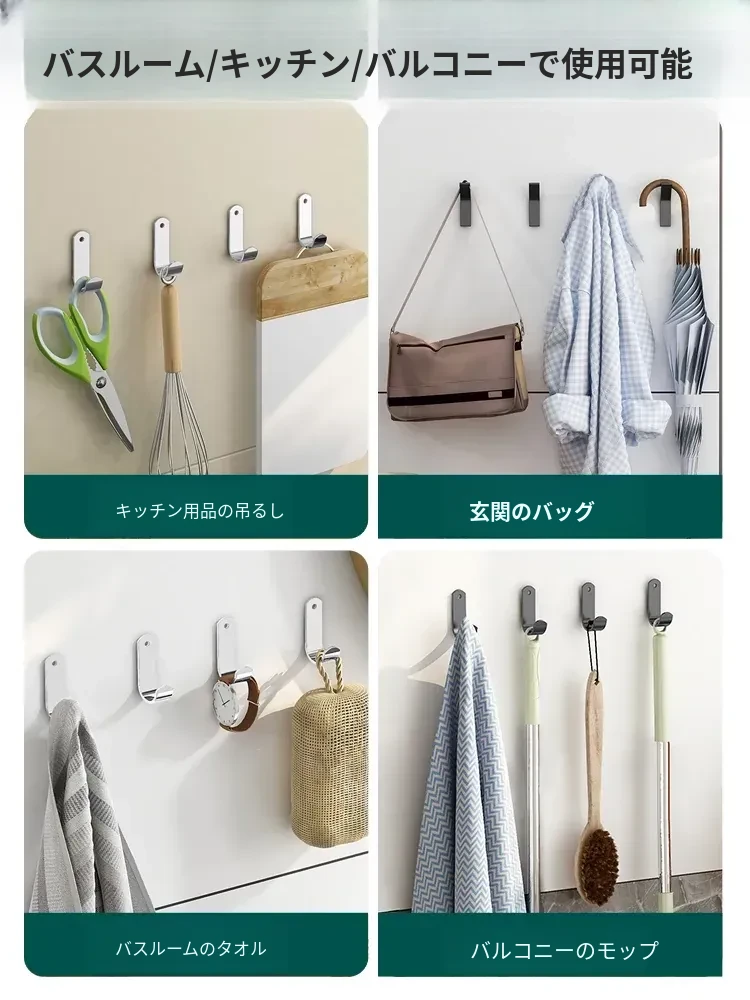 強力粘着フック - 穴あけ不要で簡単取り付け!バスルームやトイレに最適な壁掛けフック、後ろのドアにもピッタリ!跡が残らず、衣類や小物をスッキリ収納!