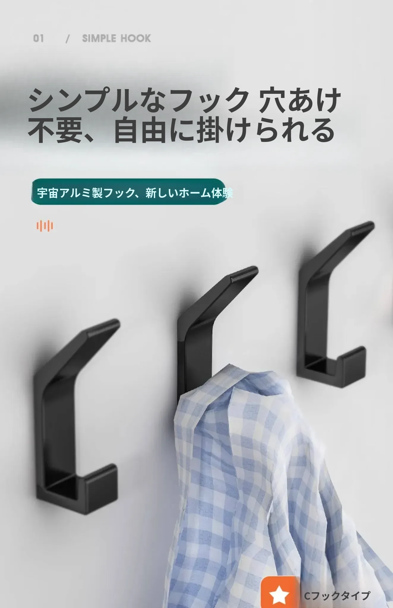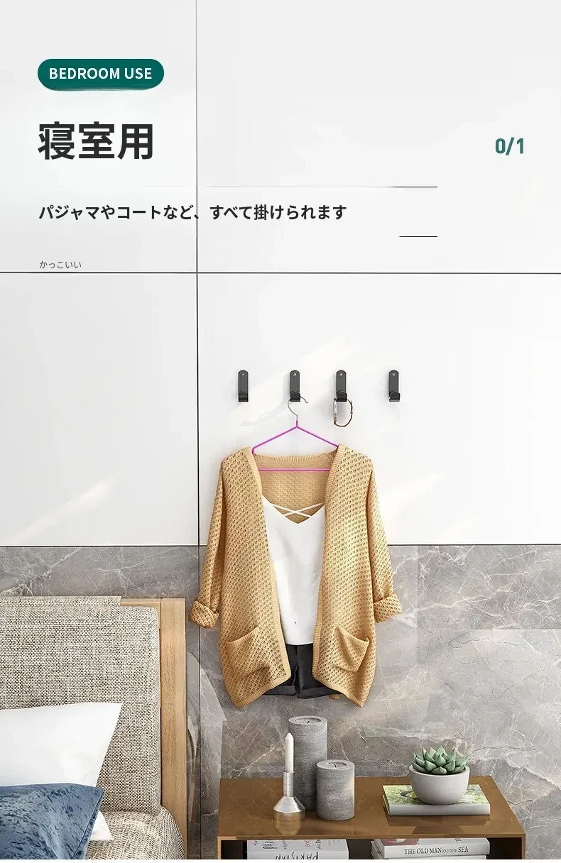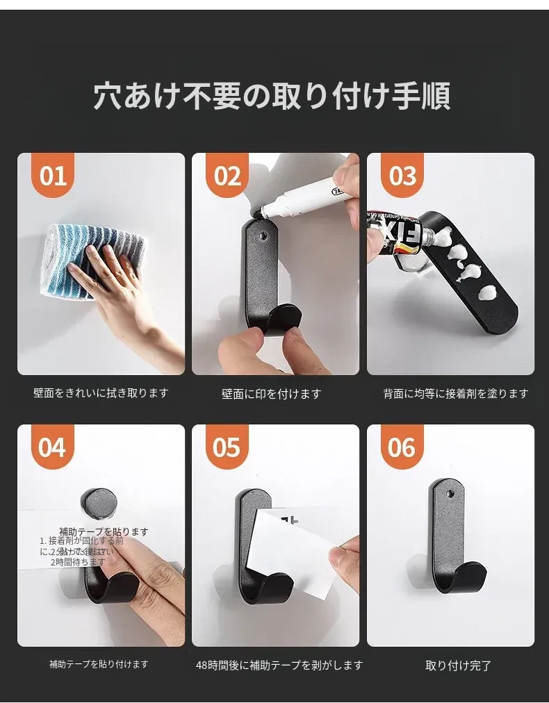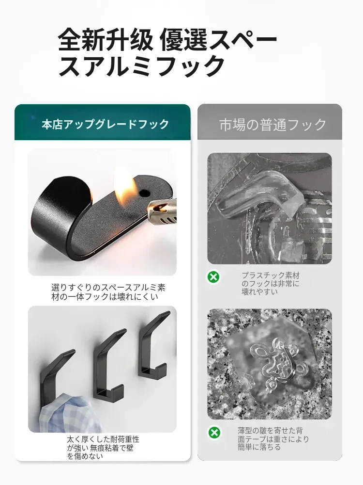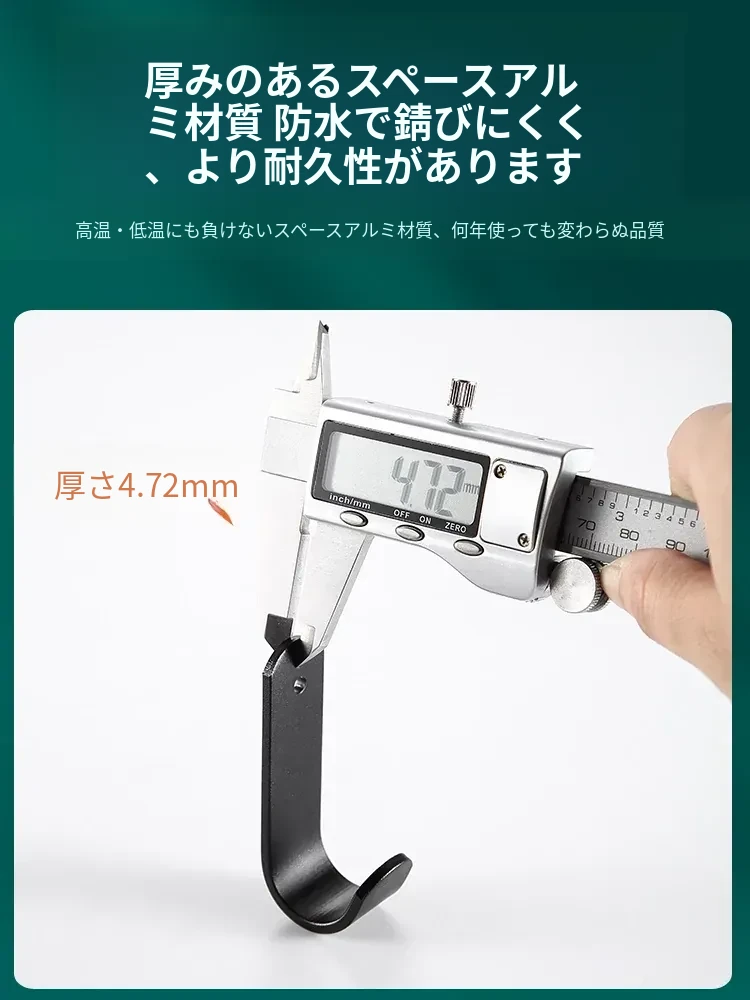 強力粘着フック - 穴あけ不要で簡単取り付け!バスルームやトイレに最適な壁掛けフック、後ろのドアにもピッタリ!跡が残らず、衣類や小物をスッキリ収納!