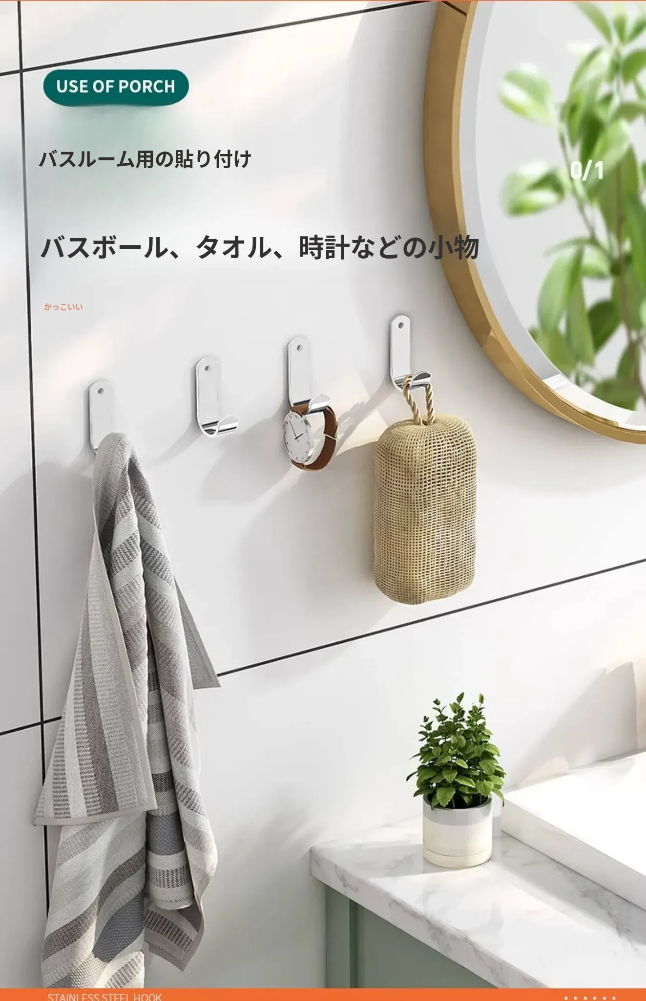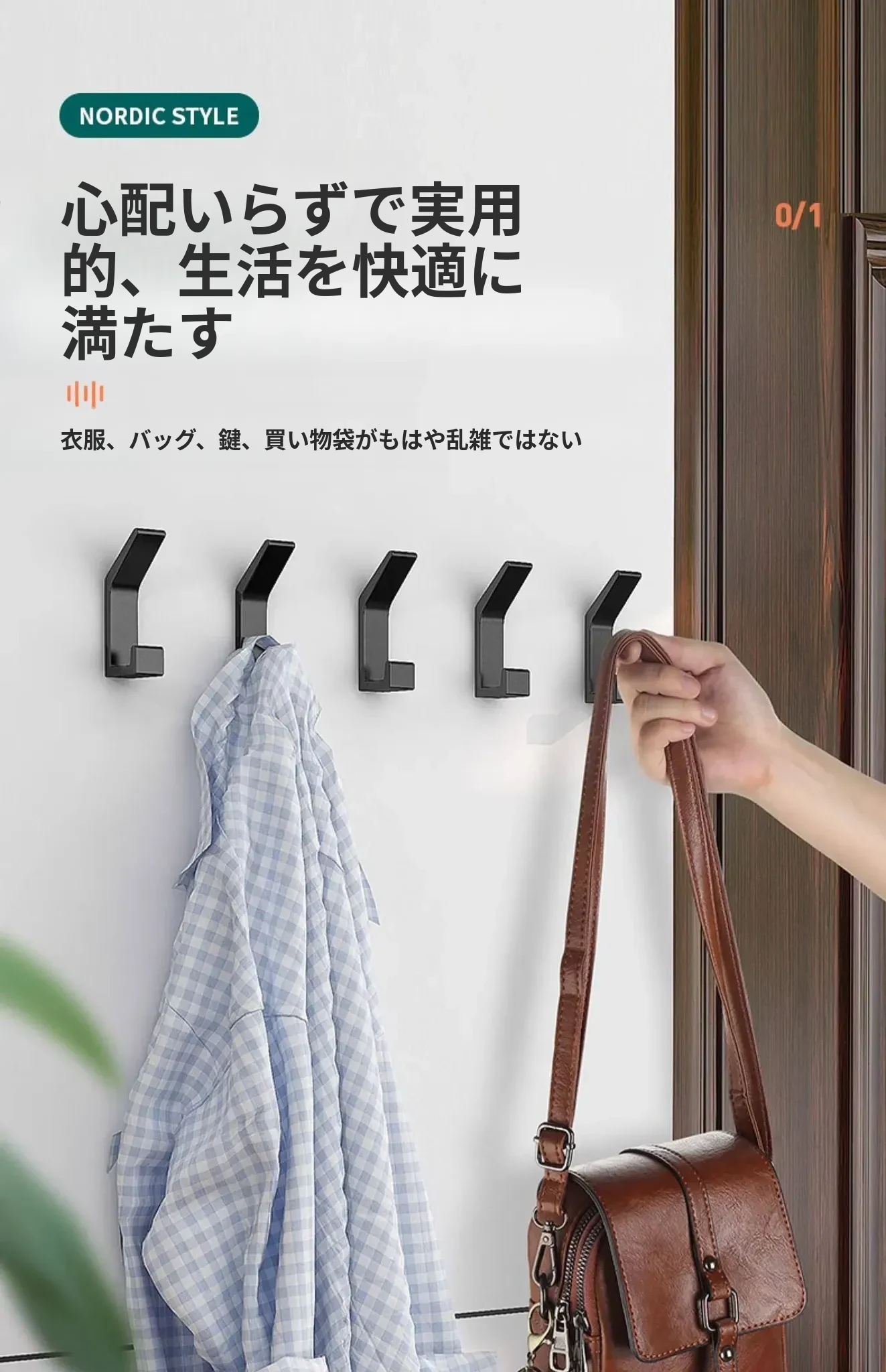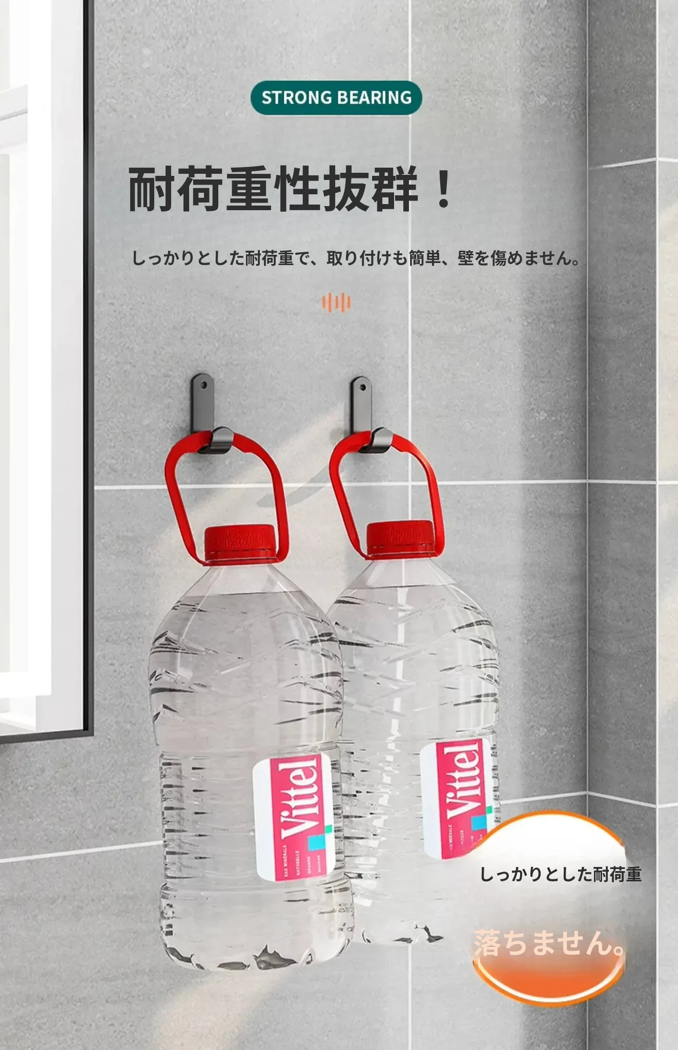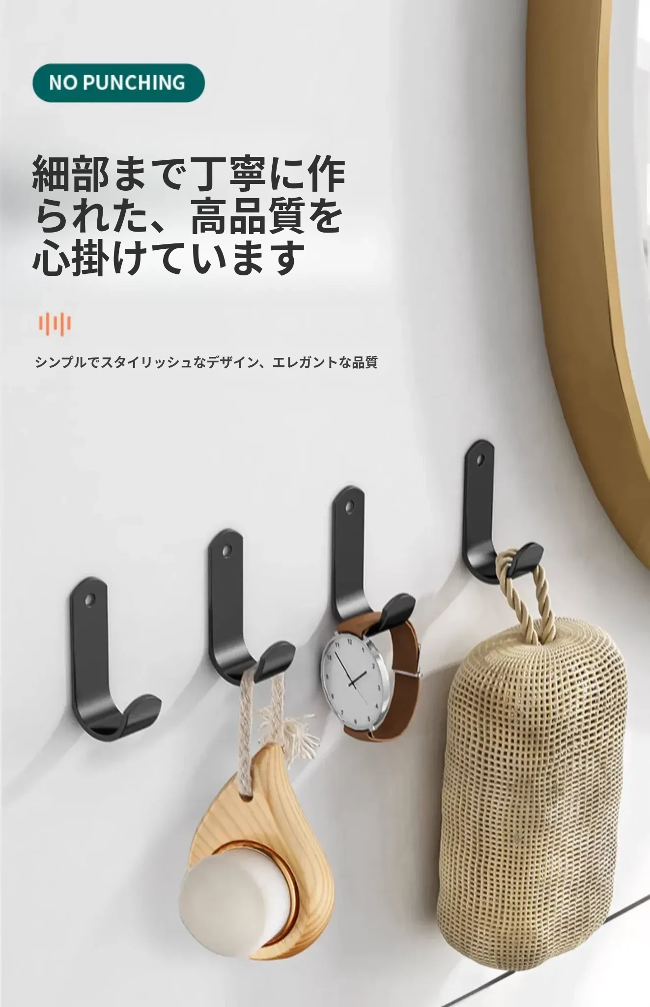 強力粘着フック - 穴あけ不要で簡単取り付け!バスルームやトイレに最適な壁掛けフック、後ろのドアにもピッタリ!跡が残らず、衣類や小物をスッキリ収納!