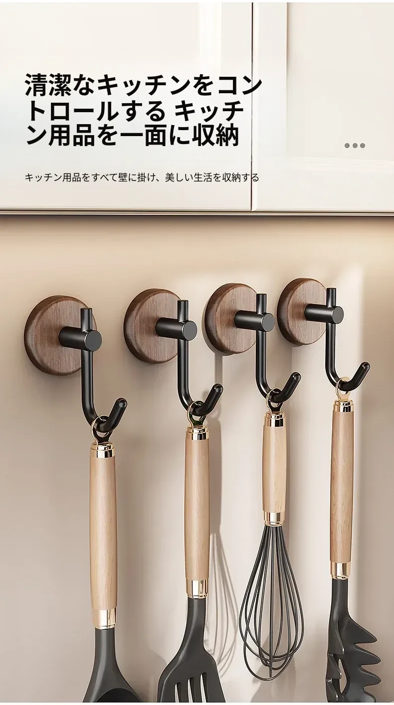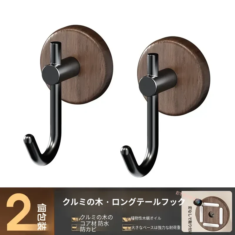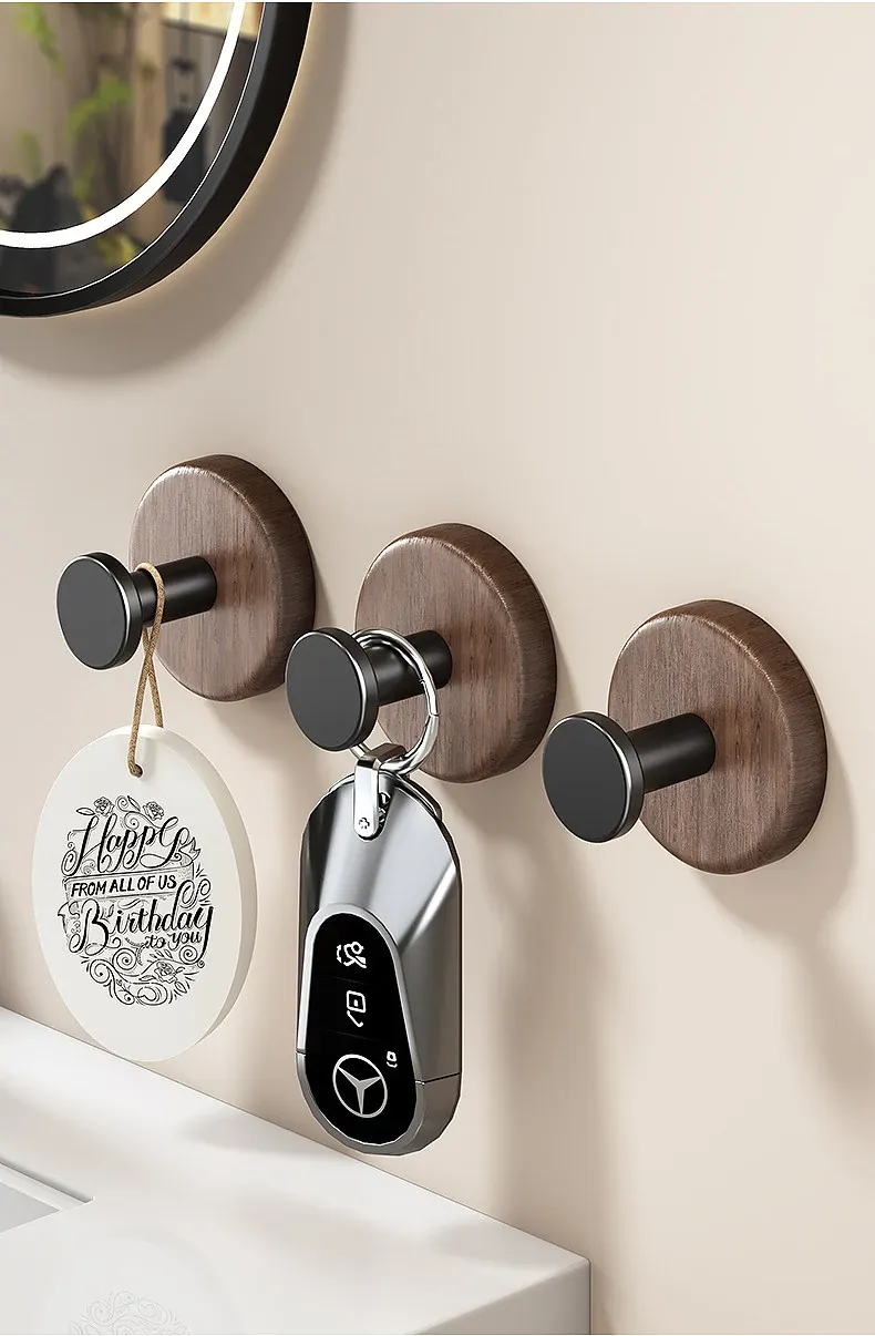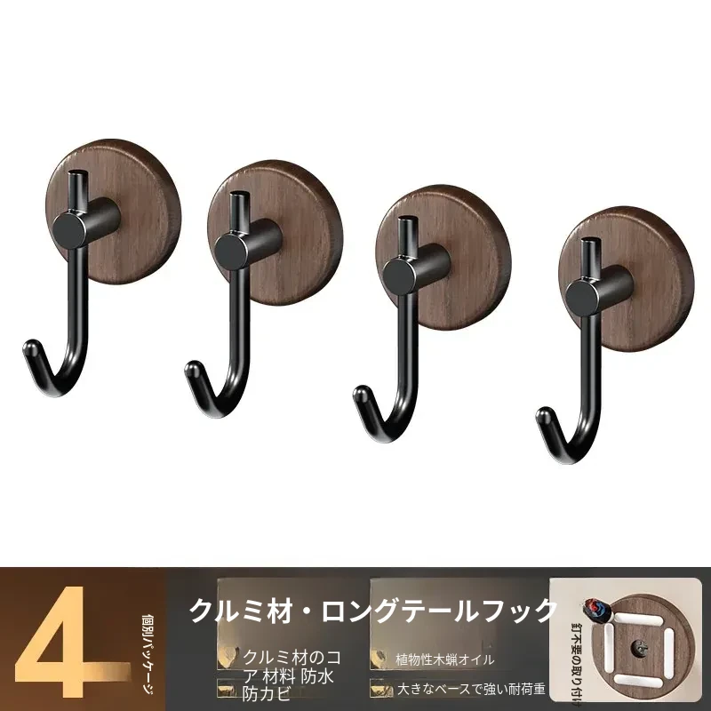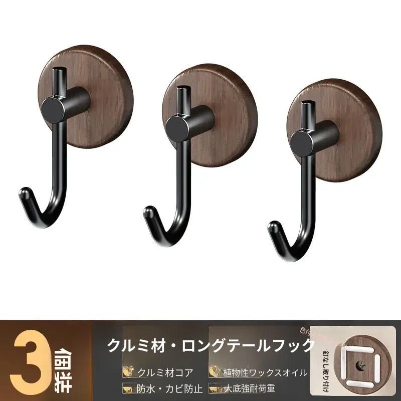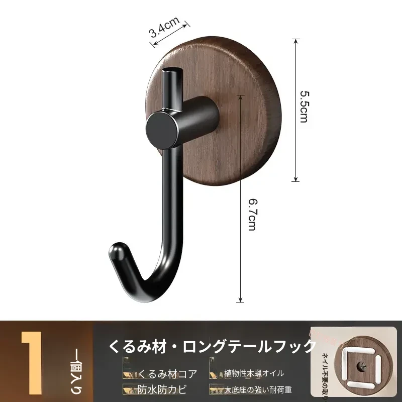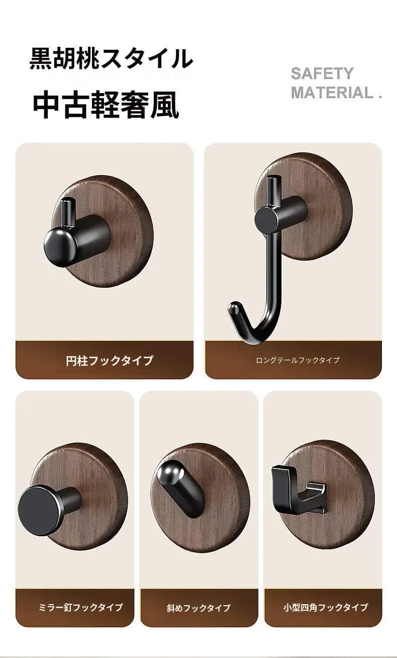 強力粘着フック - ウォールマウントの無穴胡桃木製フック!バスルームやドアの裏に最適、衣類や帽子をしっかり支える便利アイテム。おしゃれで機能的な収納を実現します!
