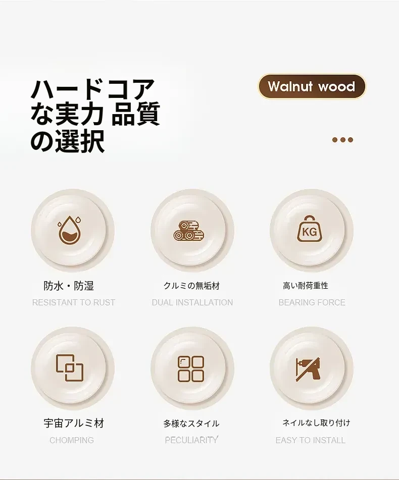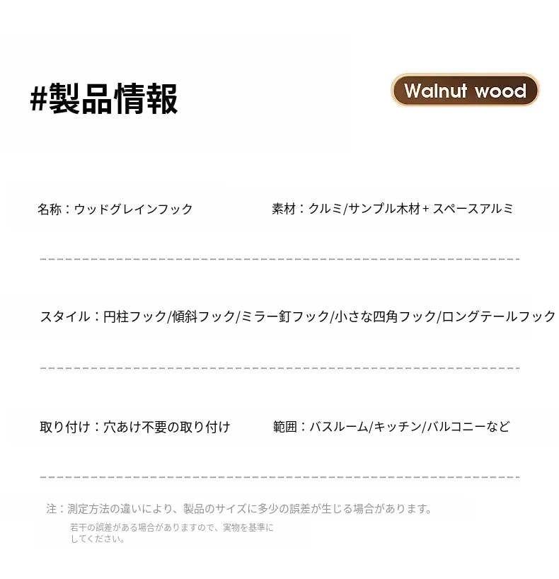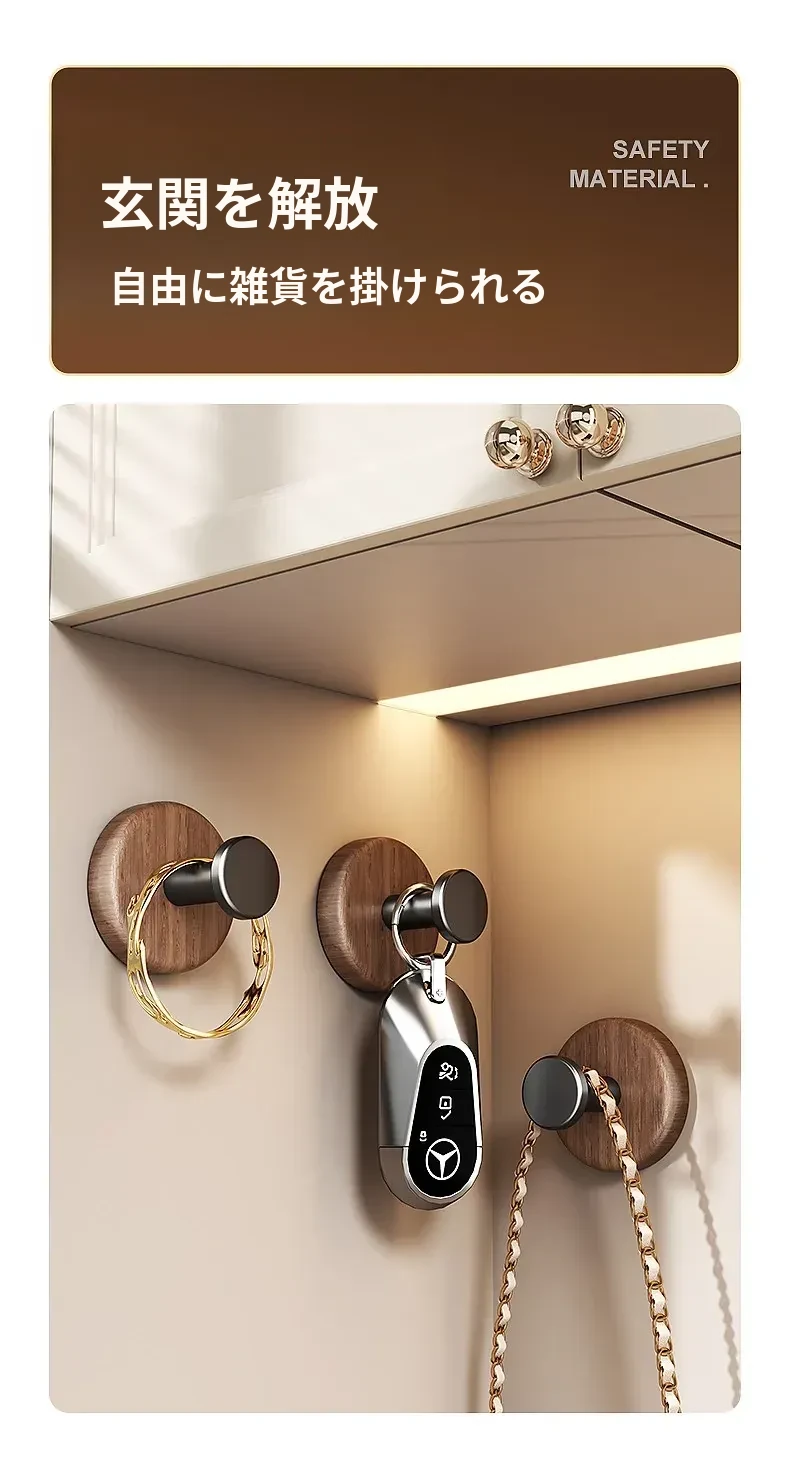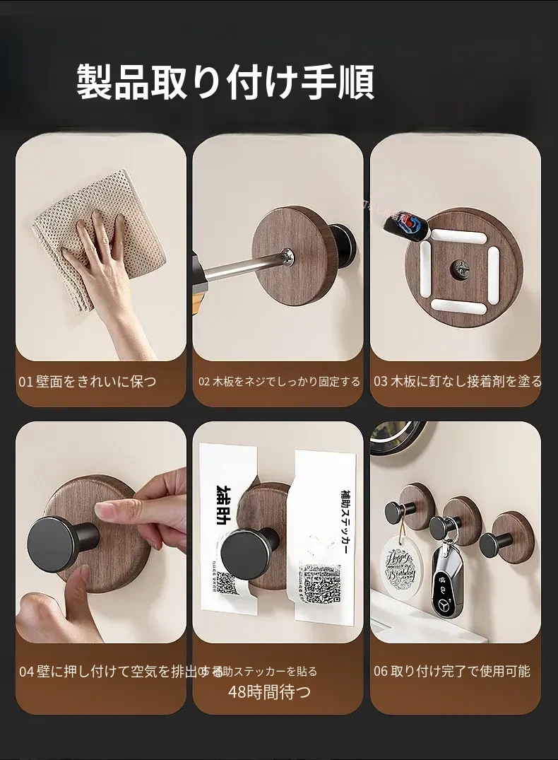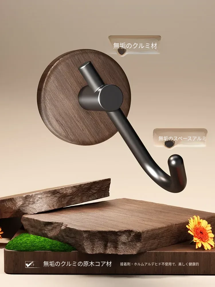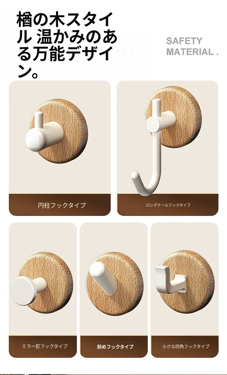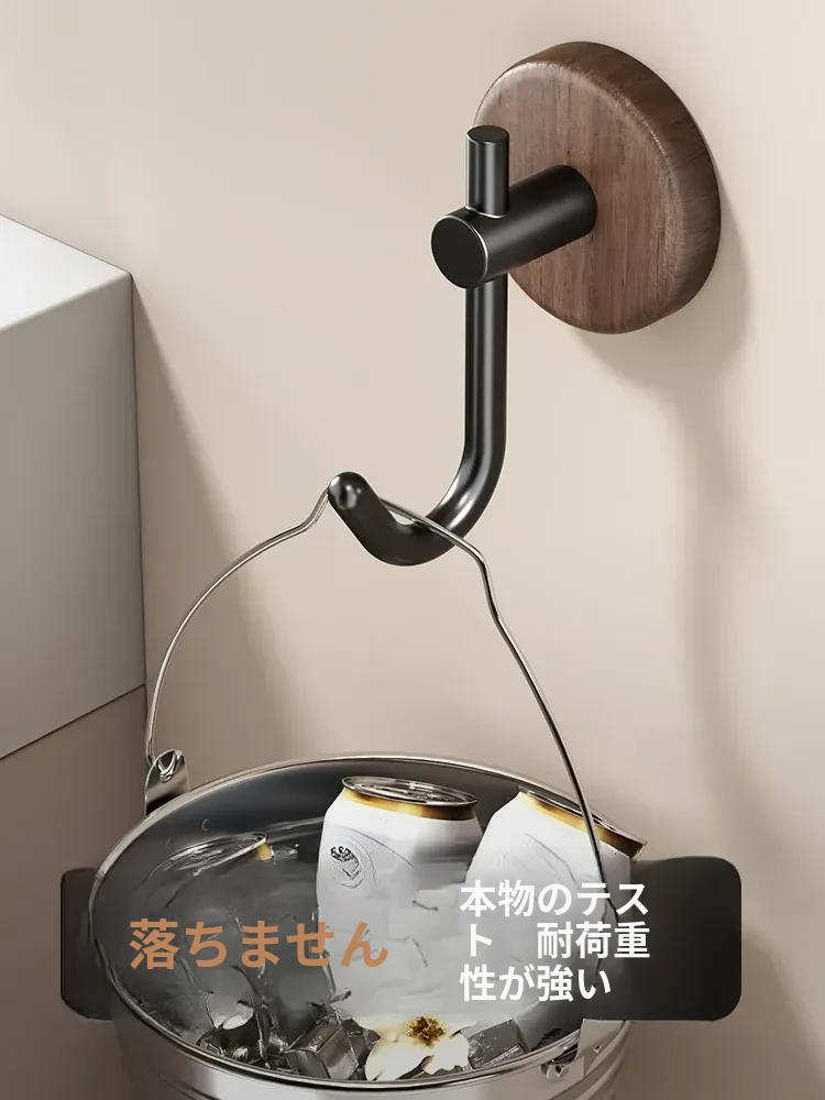 強力粘着フック - ウォールマウントの無穴胡桃木製フック!バスルームやドアの裏に最適、衣類や帽子をしっかり支える便利アイテム。おしゃれで機能的な収納を実現します!