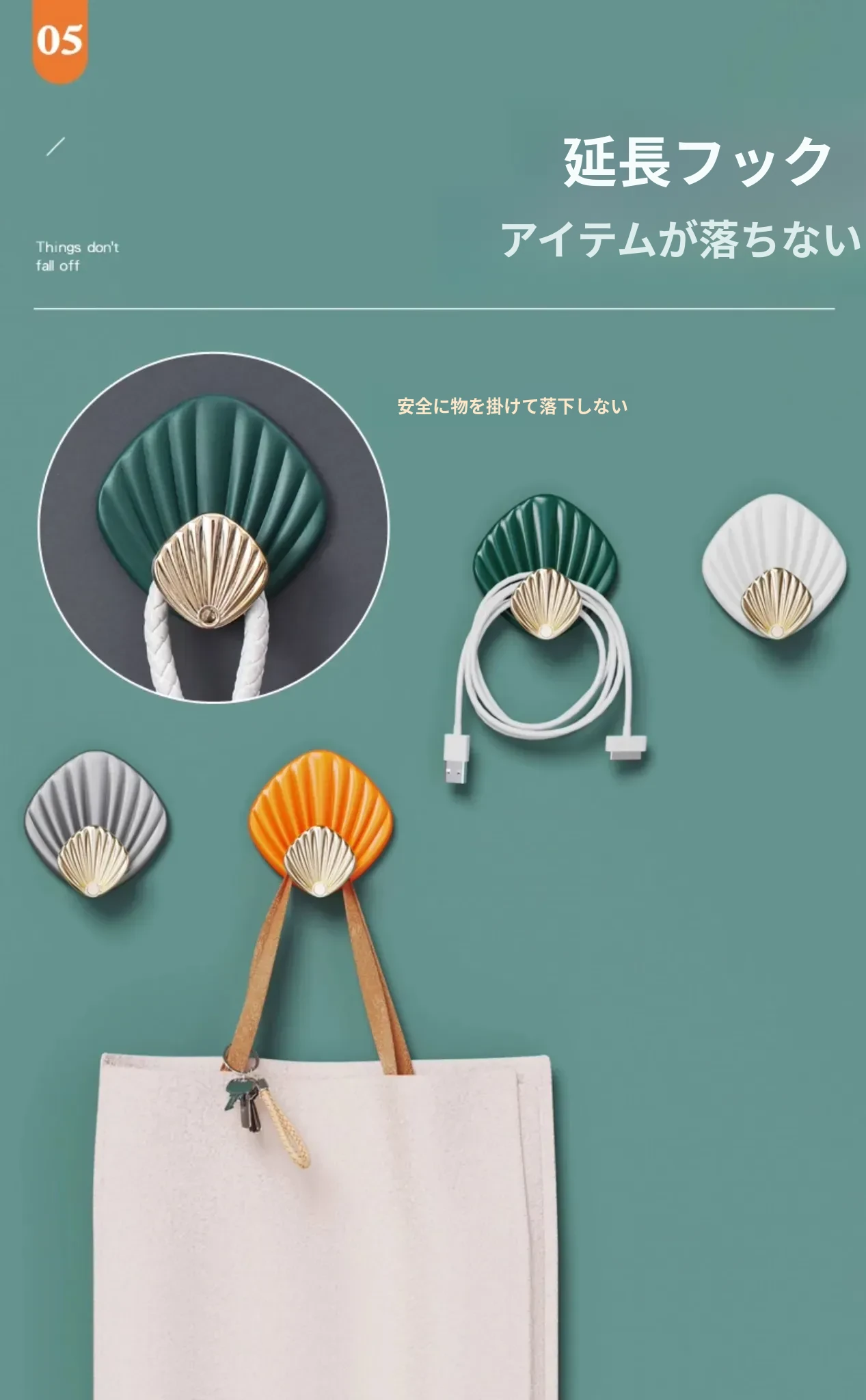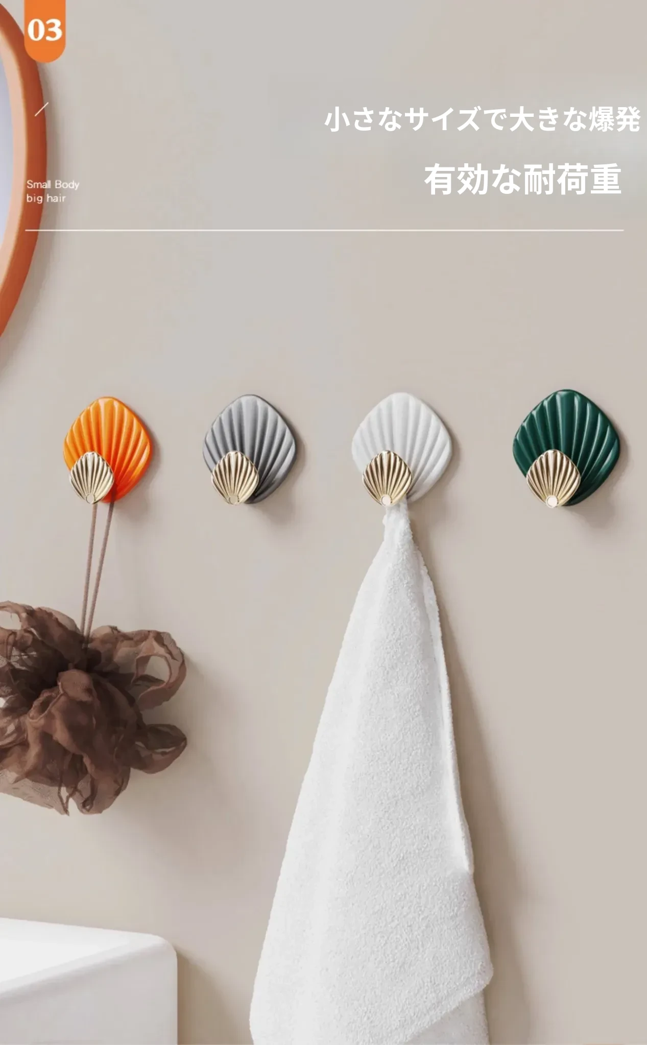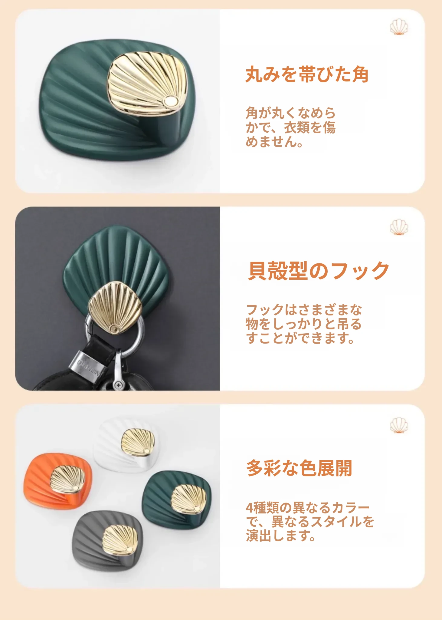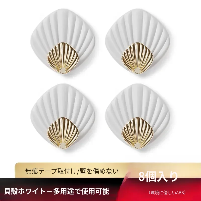4個セット-貝殻タイプ【ホワイト】強力穴あけ不要
