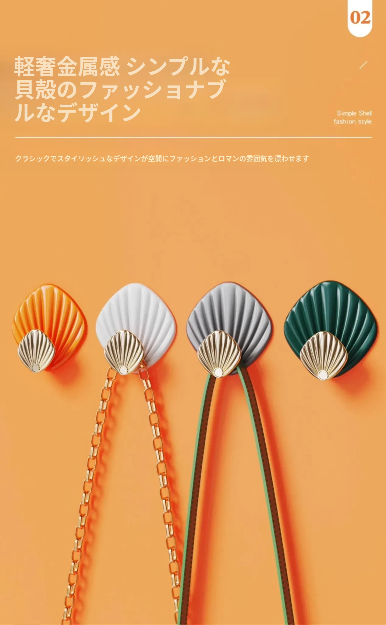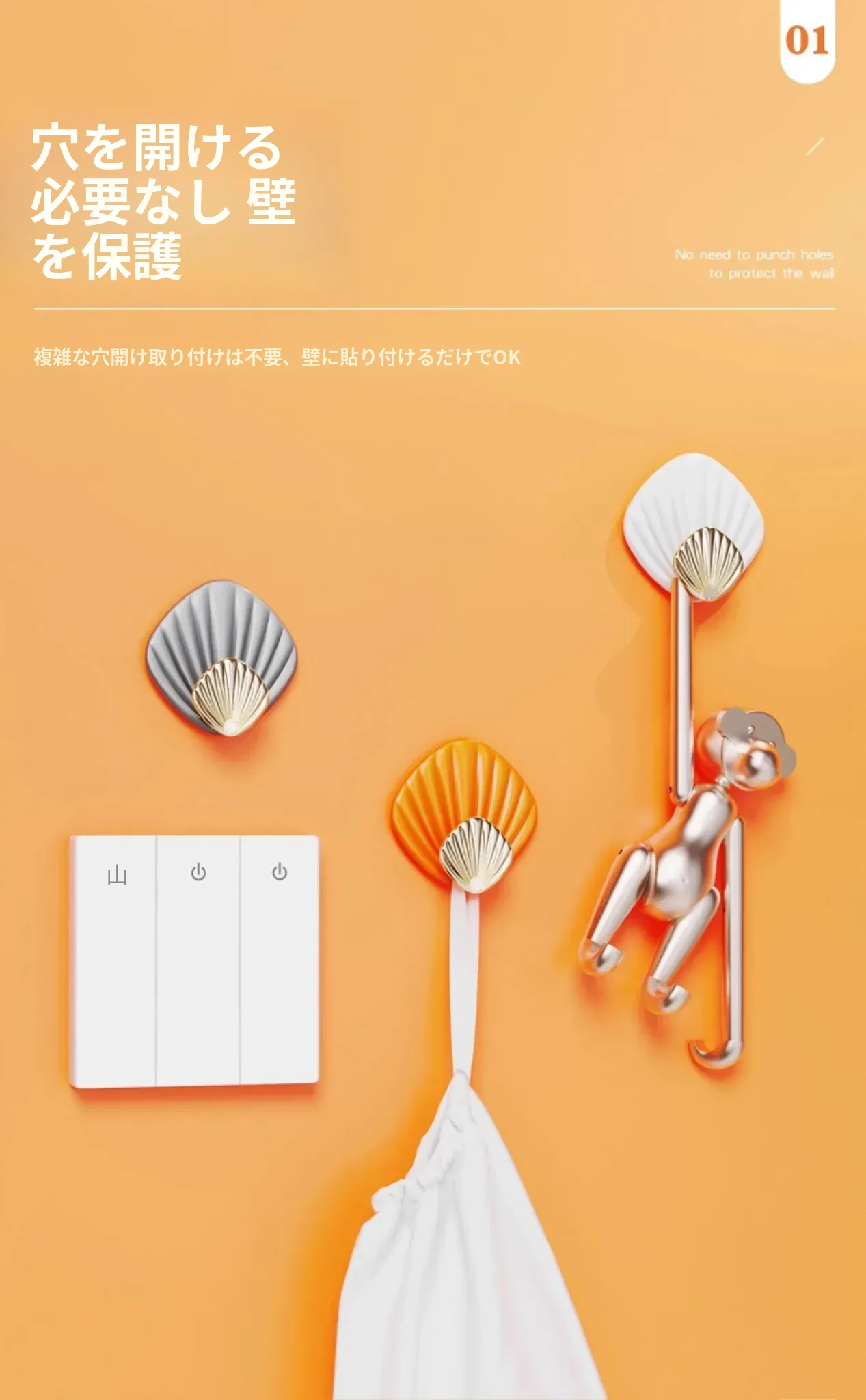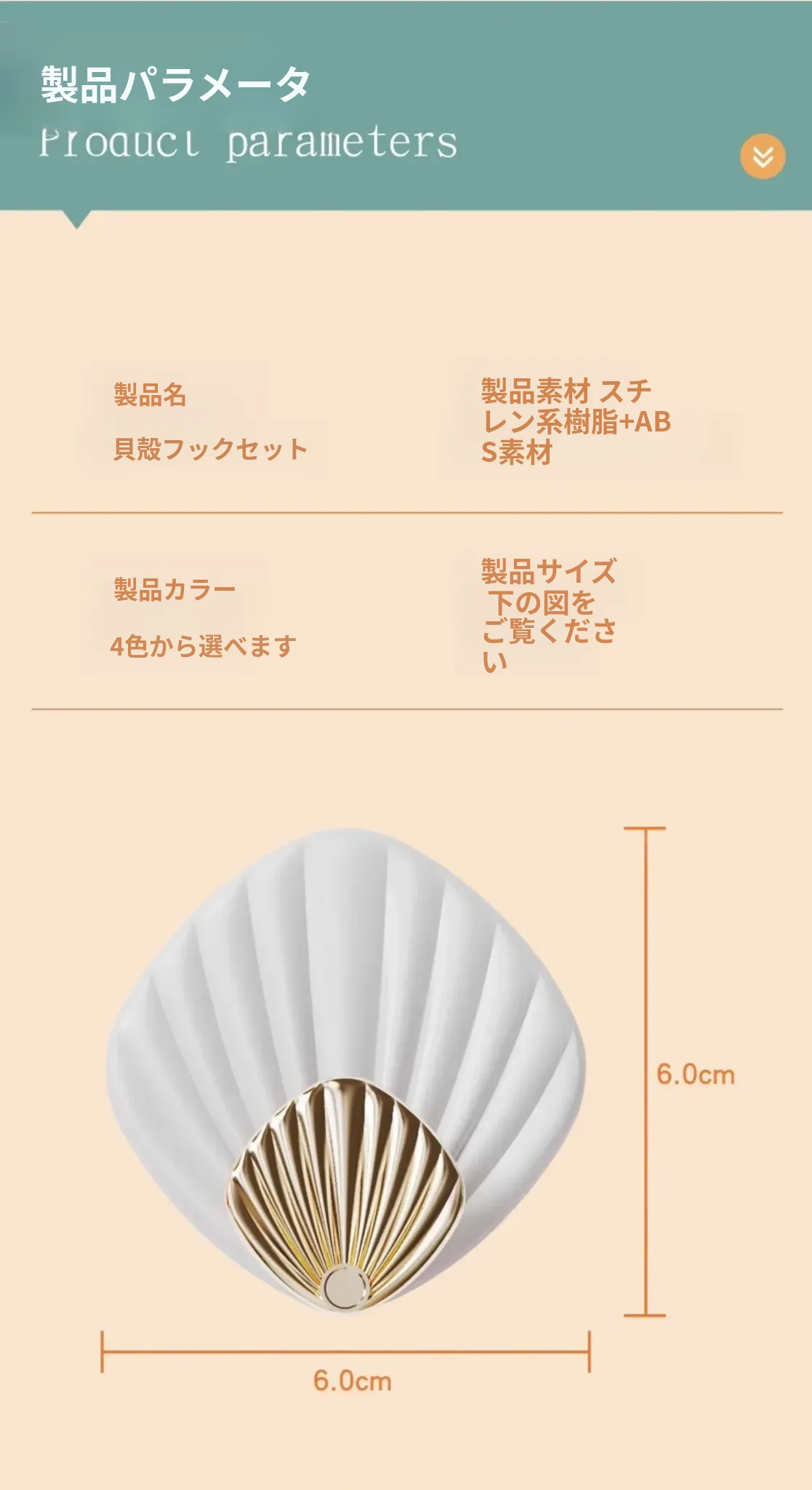4個セット-貝殻タイプ【ホワイト】強力穴あけ不要