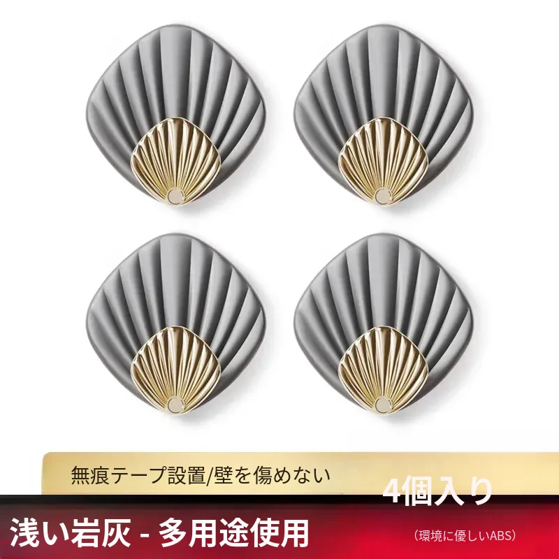 4個セット-貝殻タイプ【グレー】強力穴あけ不要