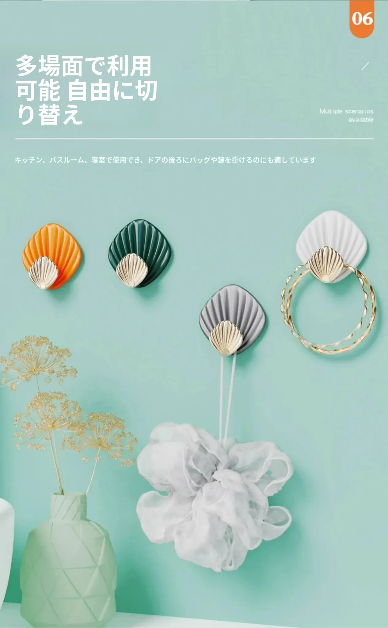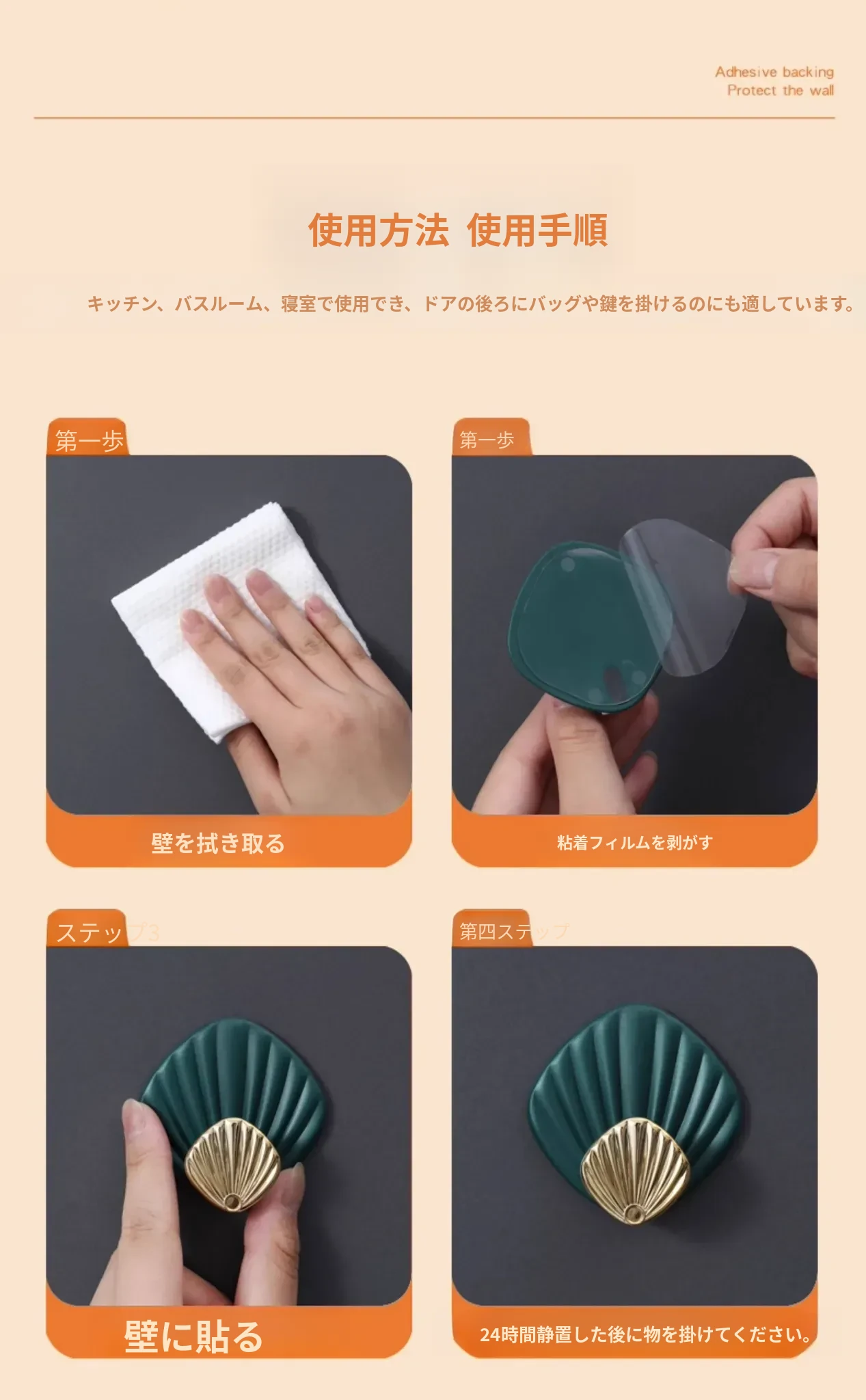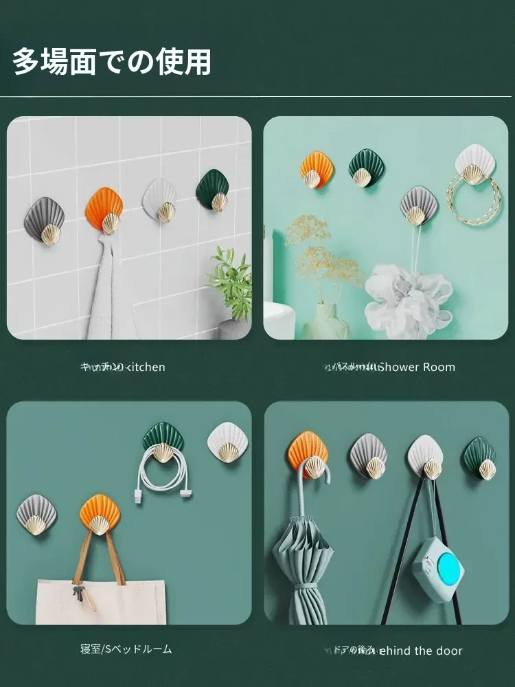 4個セット-貝殻タイプ【グリーン】強力穴あけ不要