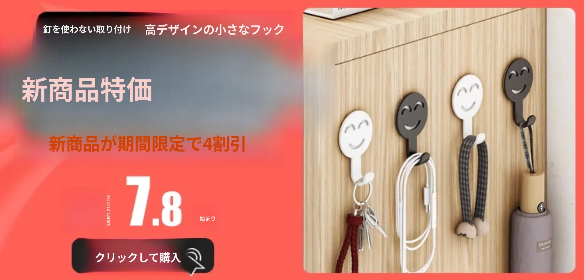 穴あけ不要!強力粘着フックでドアの裏に衣類や鍵をラクラク収納。キッチンや壁にぴったりの便利アイテム!