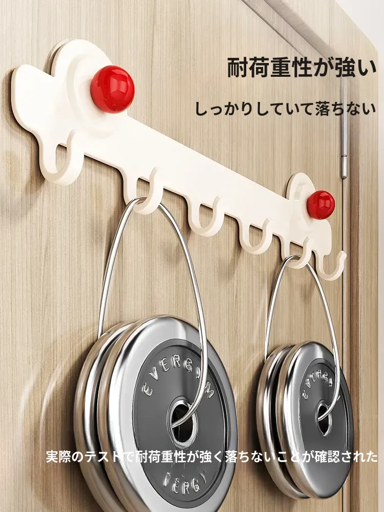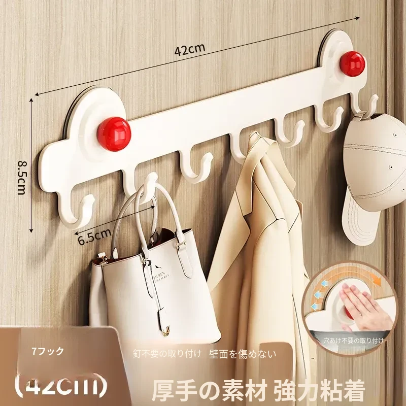 吸盤ドア裏-クリームホワイト単フック-7フック【強力吸着/穴あけ不要】