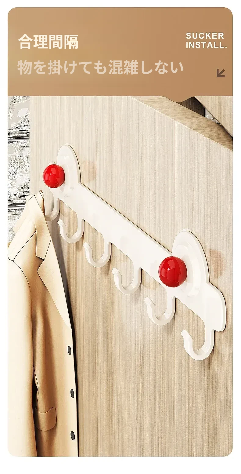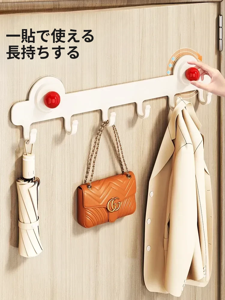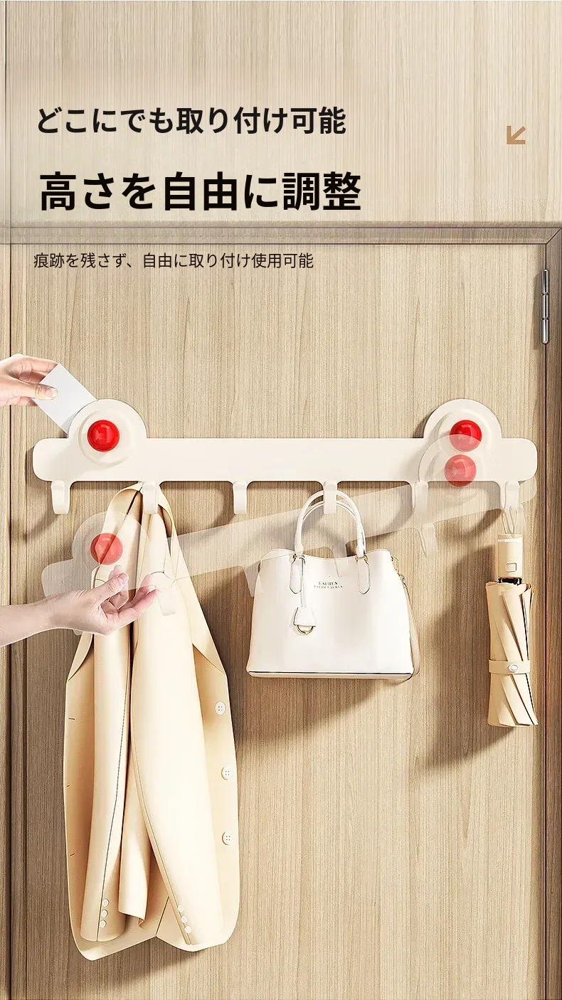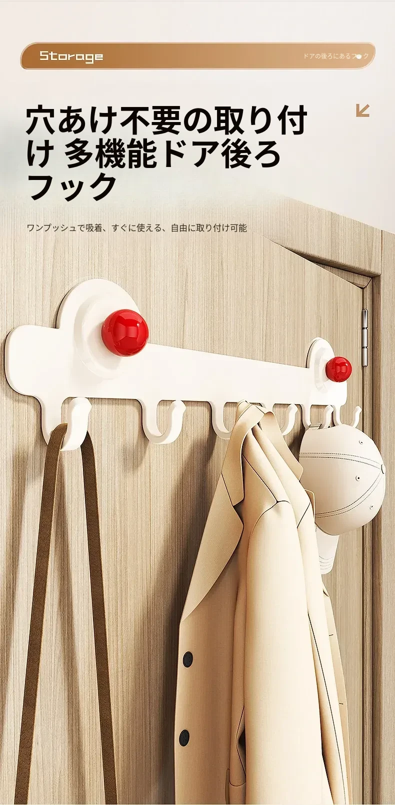 強力吸盤式ドア後掛けフック - 穴あけ不要!バスルームや玄関で使える便利な収納フック。衣類や小物をスッキリ整理!