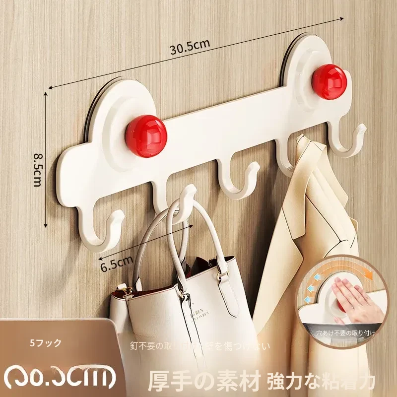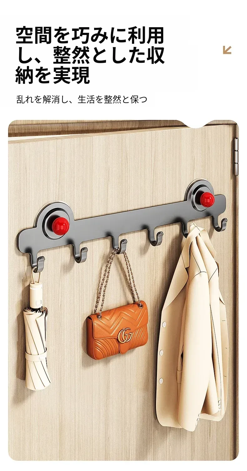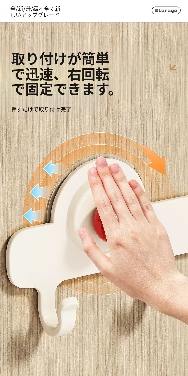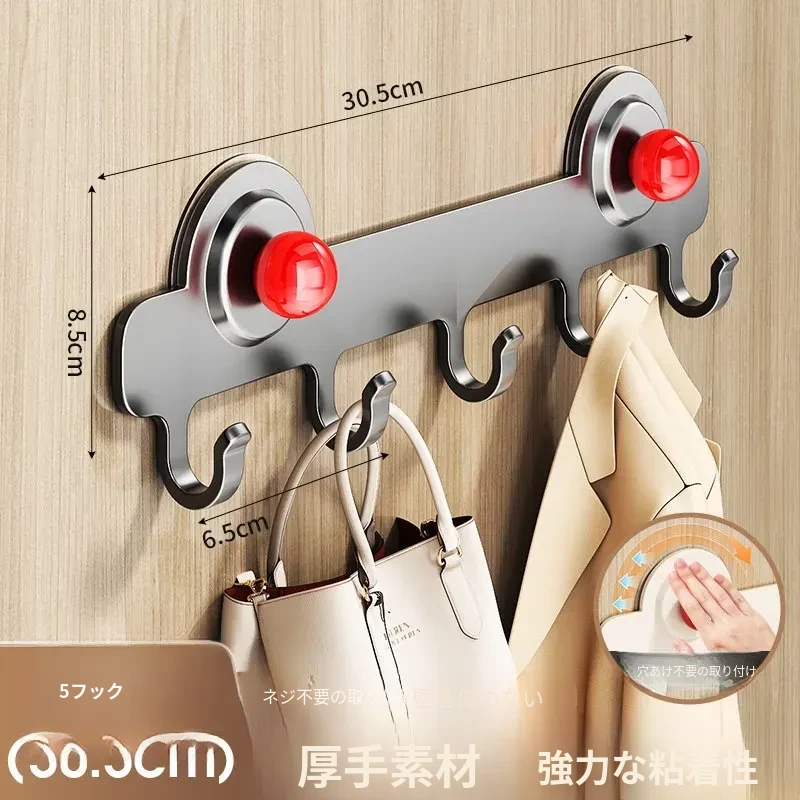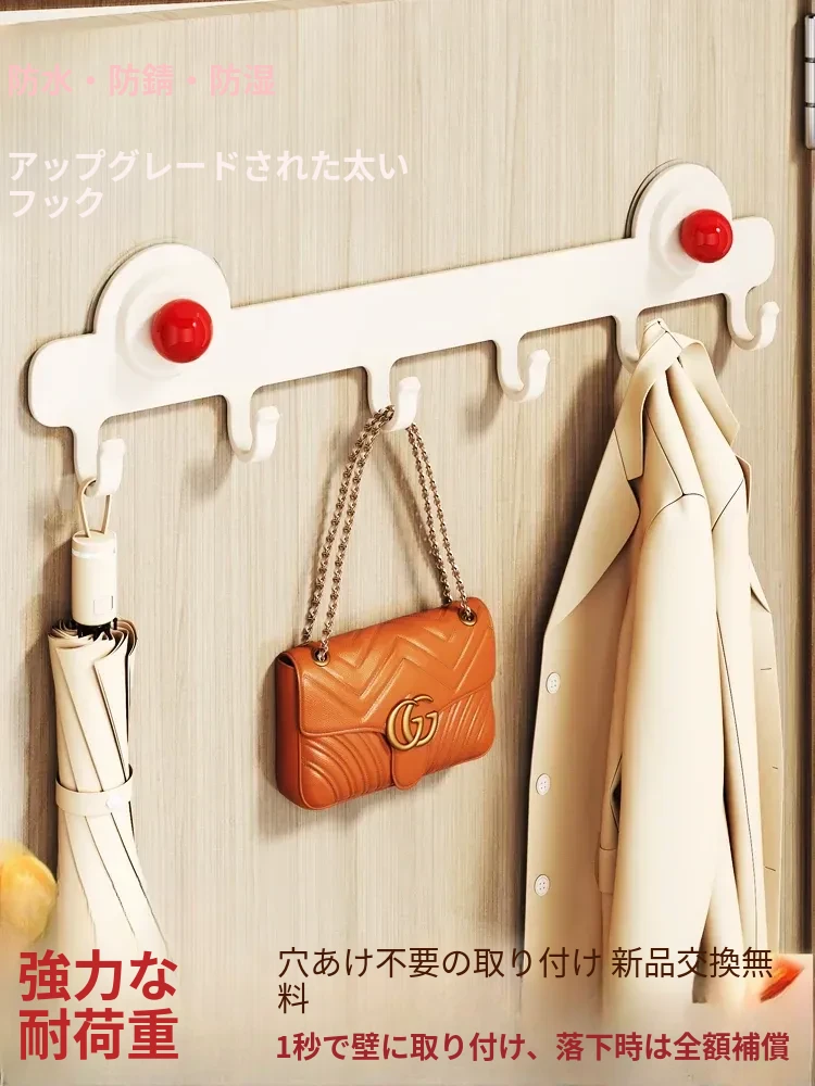強力吸盤式ドア後掛けフック - 穴あけ不要!バスルームや玄関で使える便利な収納フック。衣類や小物をスッキリ整理!