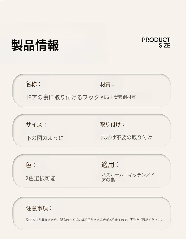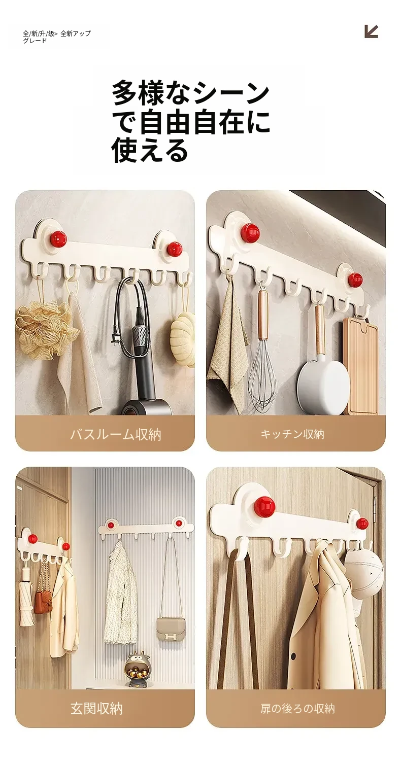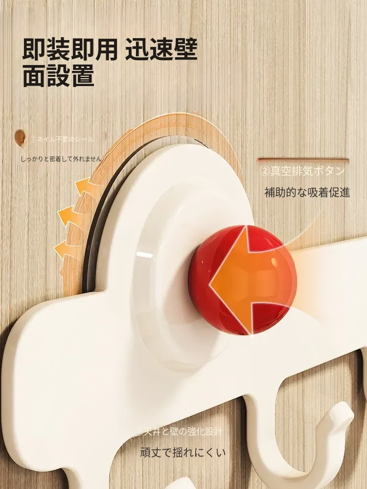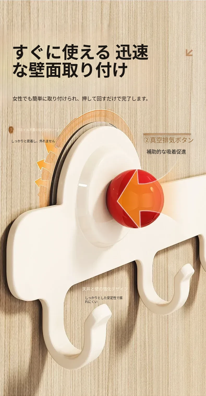 強力吸盤式ドア後掛けフック - 穴あけ不要!バスルームや玄関で使える便利な収納フック。衣類や小物をスッキリ整理!